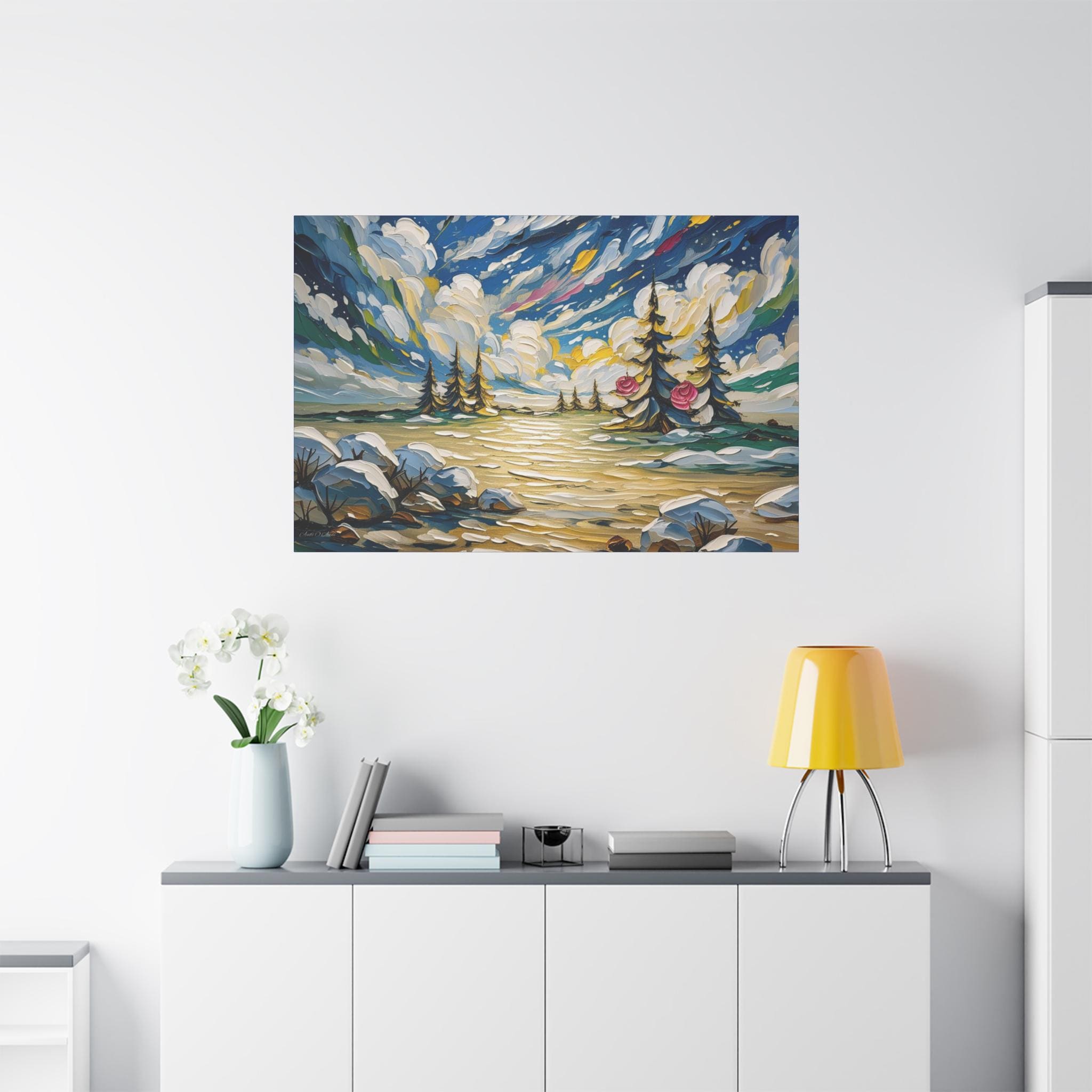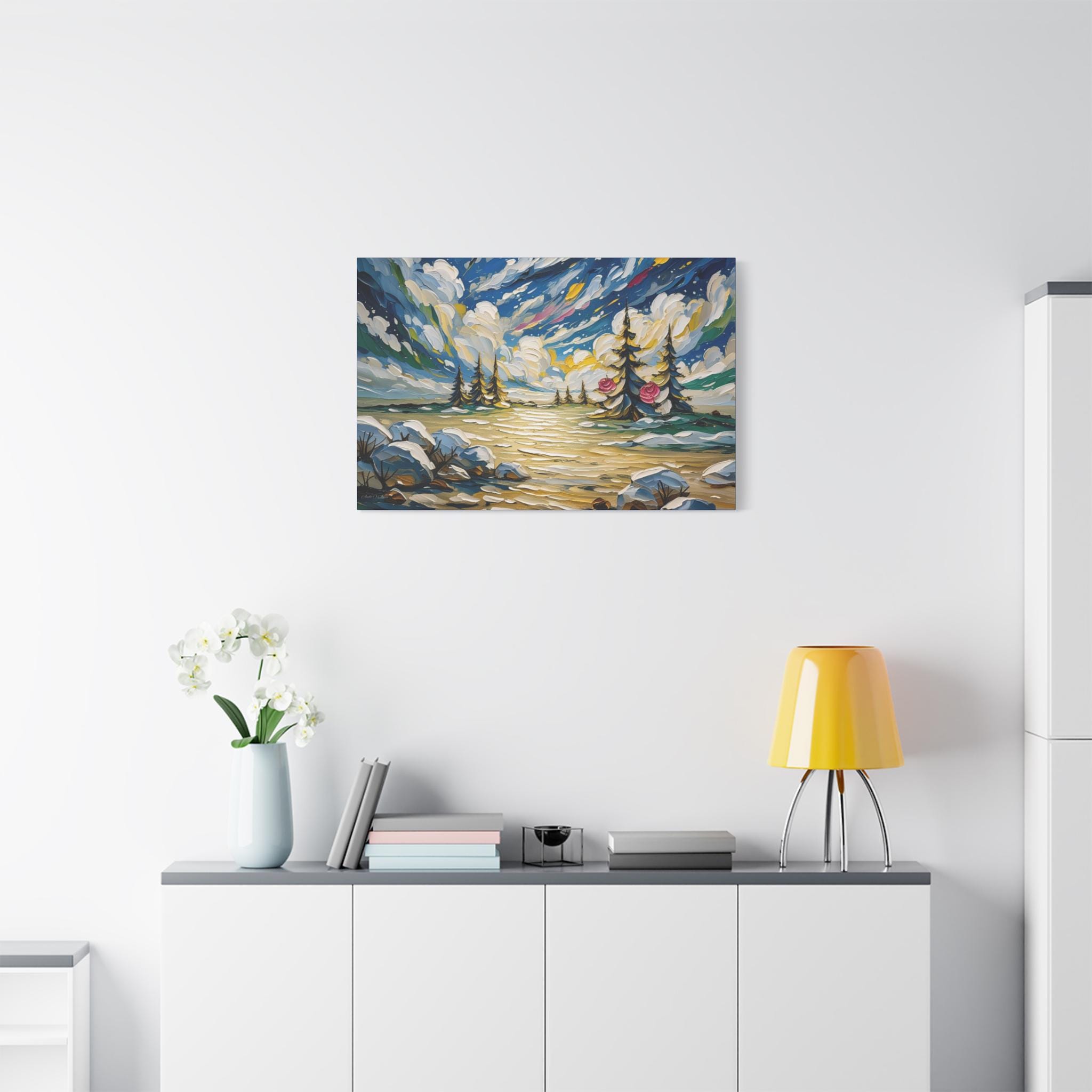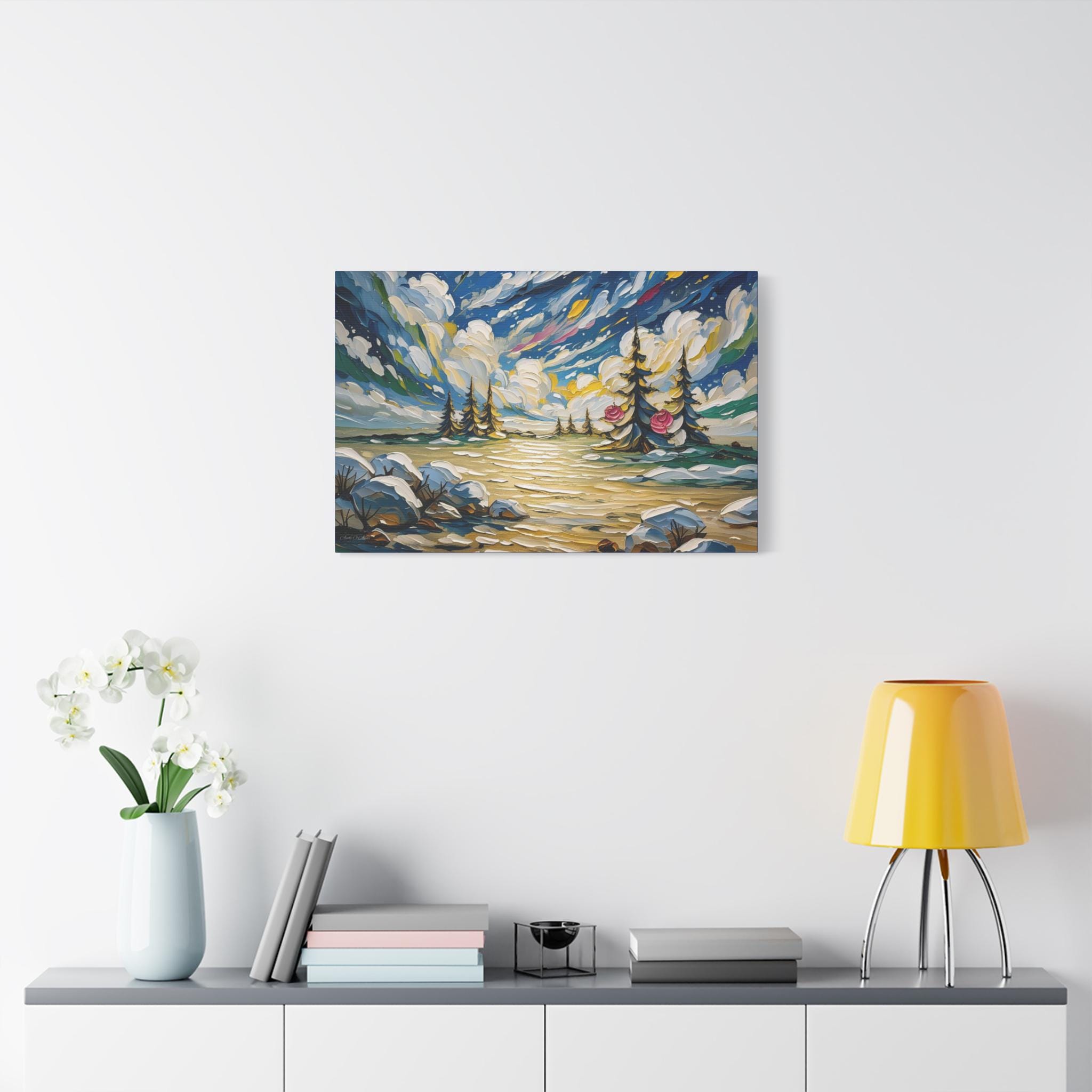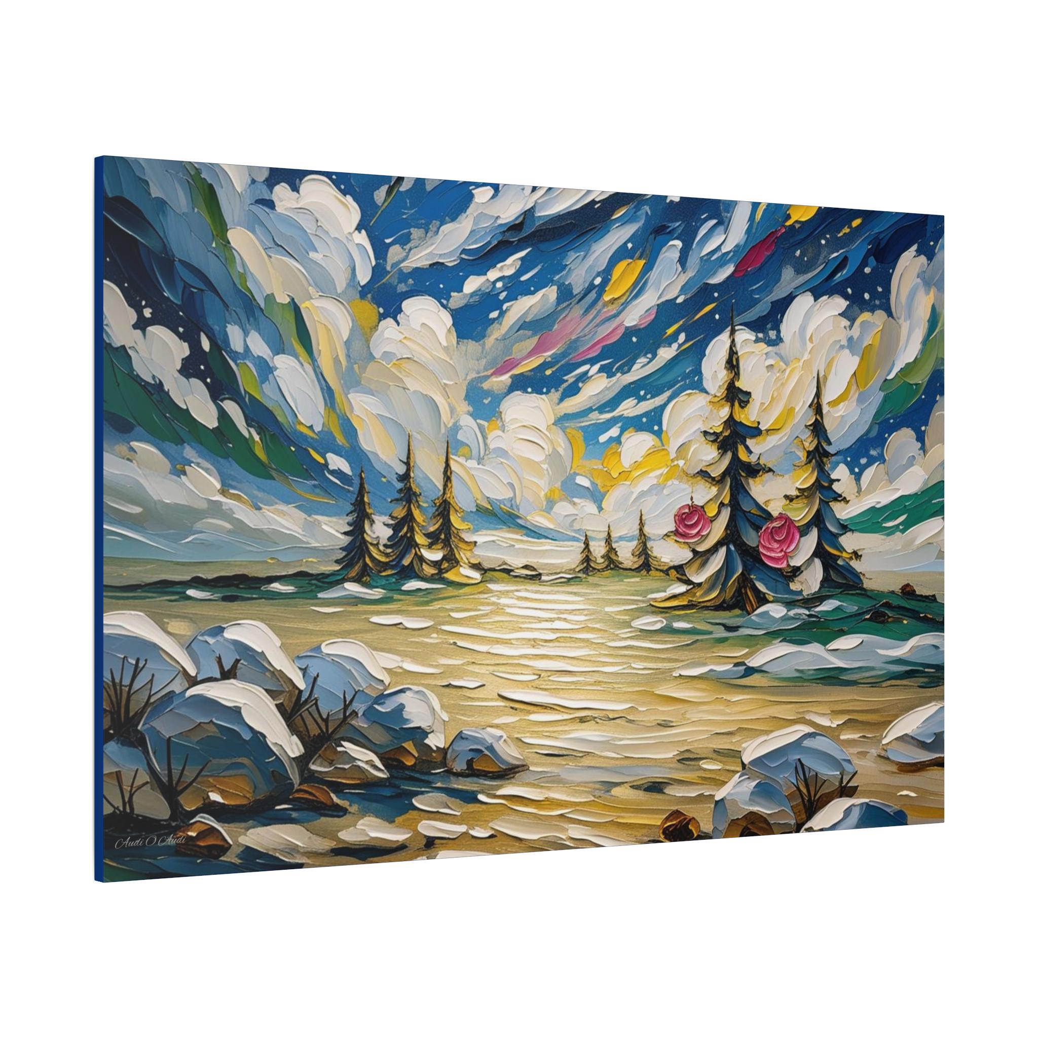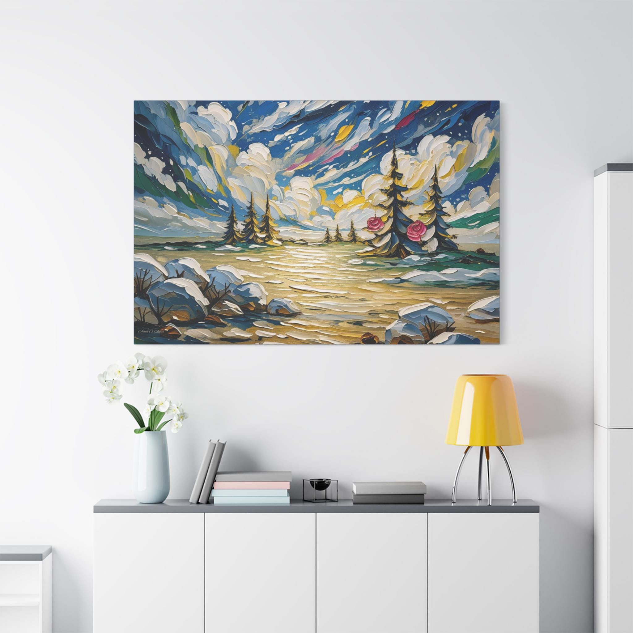Canvas Print, Golden Snowdrift Whimsical Winter Landscape, House Warming Gift, Cozy Wall Art, Living Room Art, Stretched Print, 1 25 Inch,