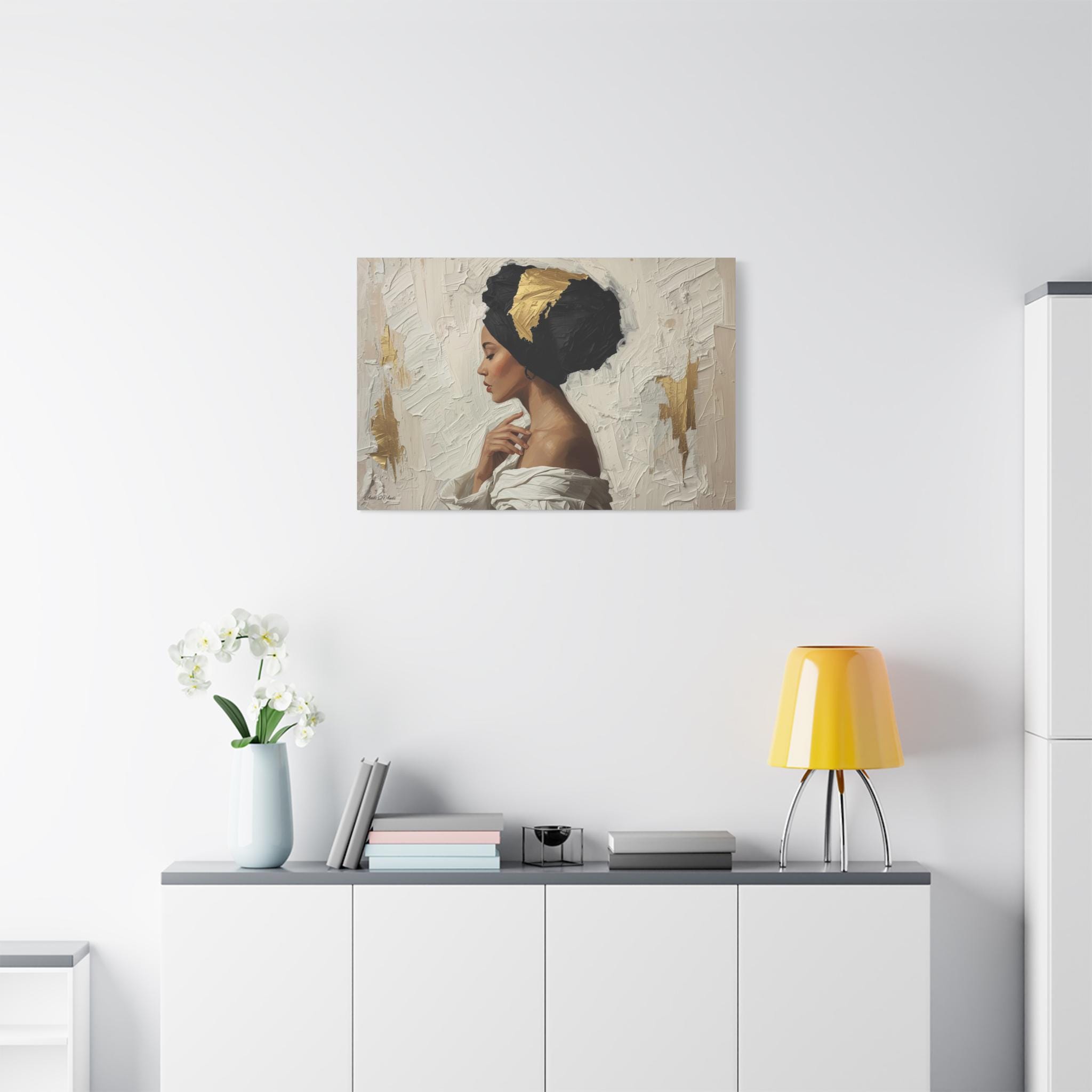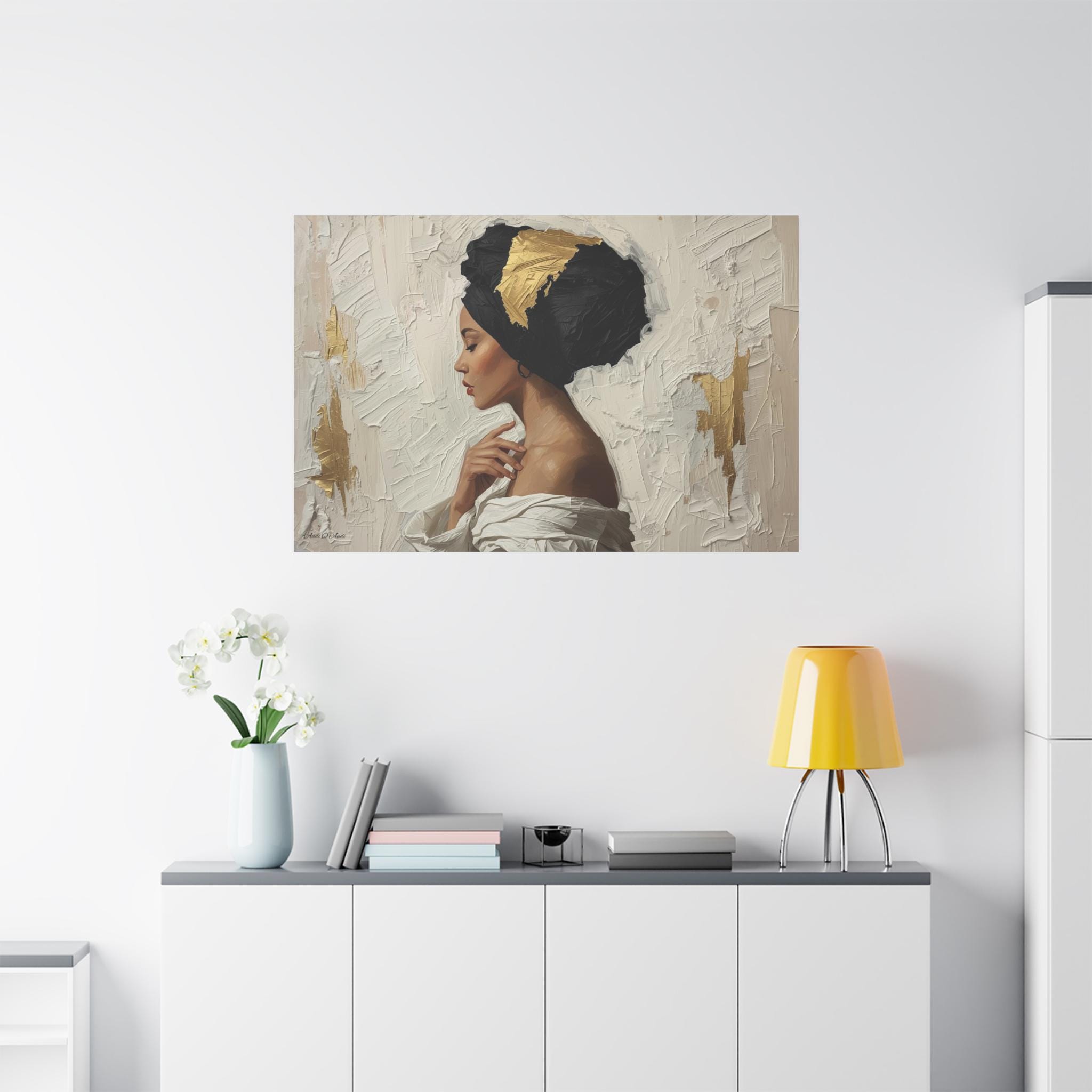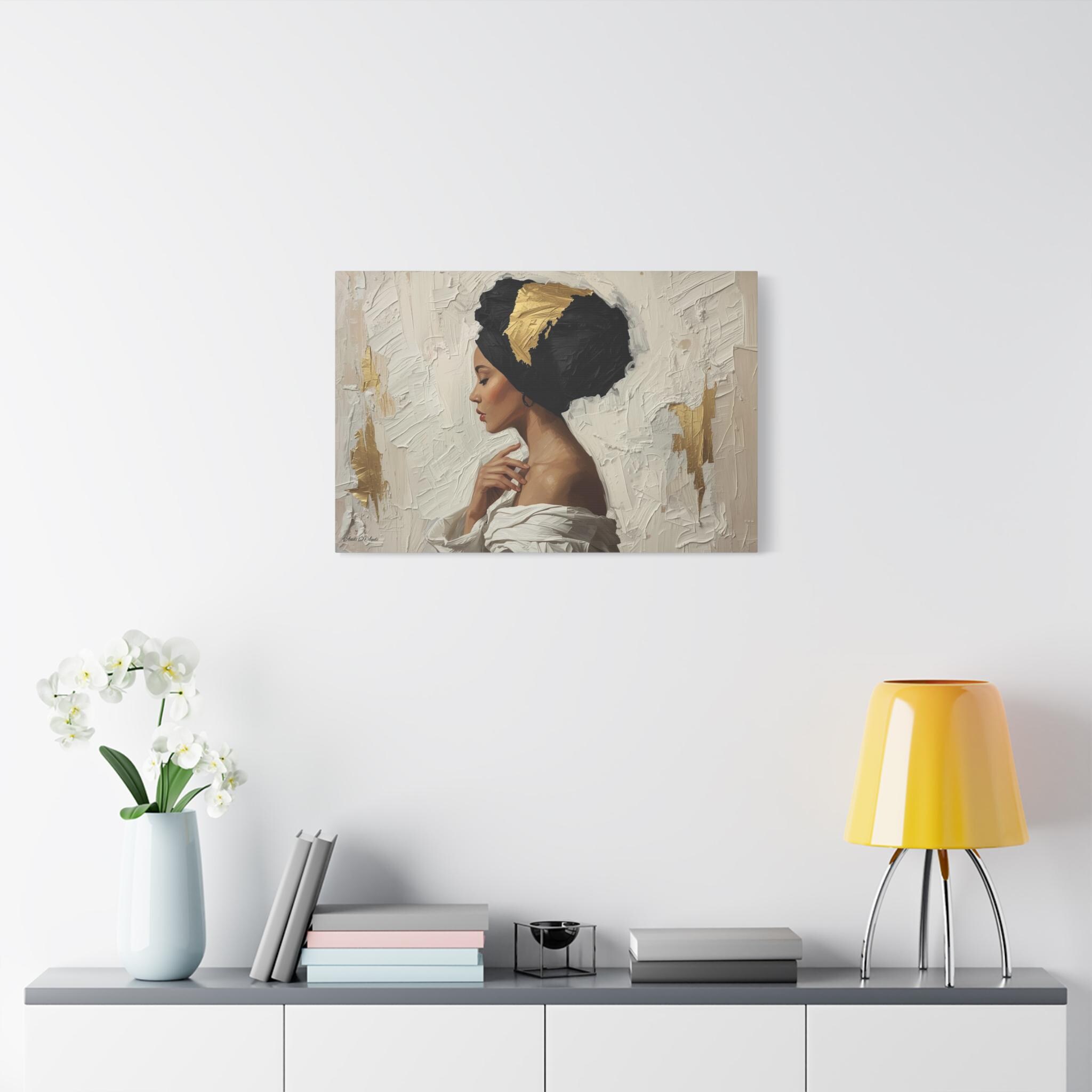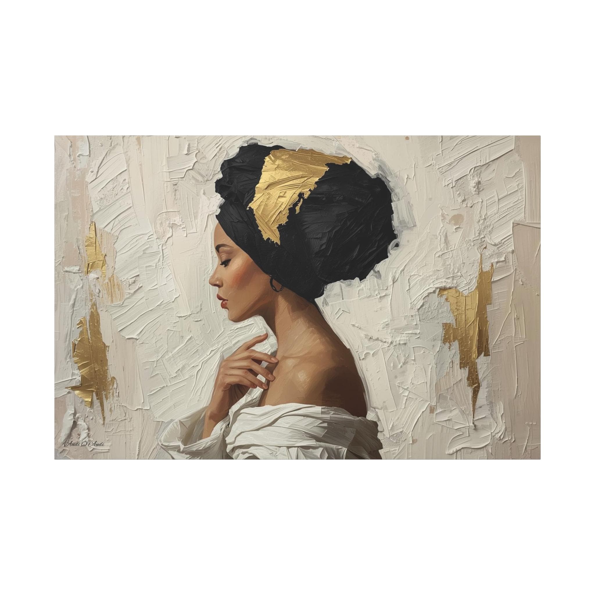 Golden Silence, Woman in Headwrap Matte Canvas Print.