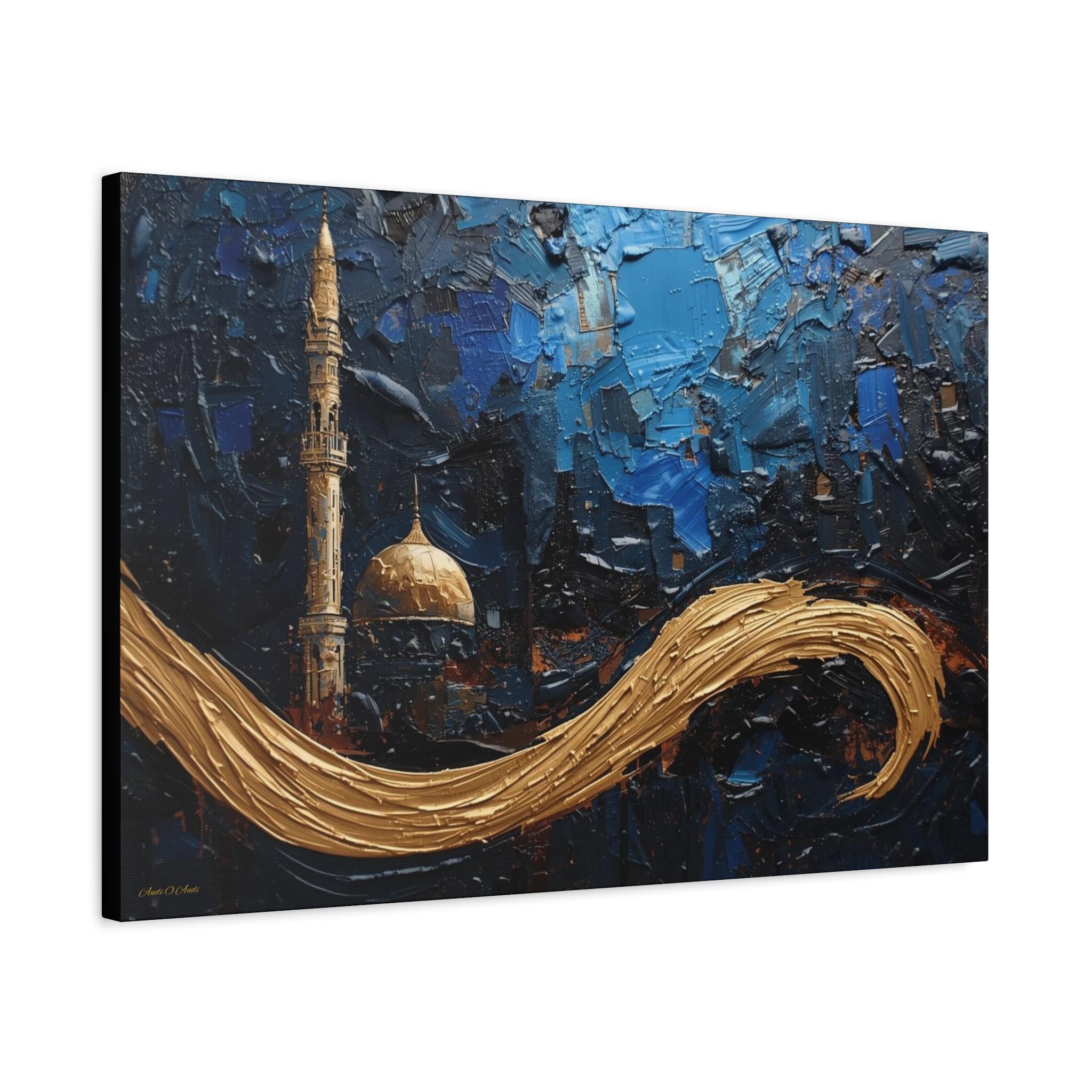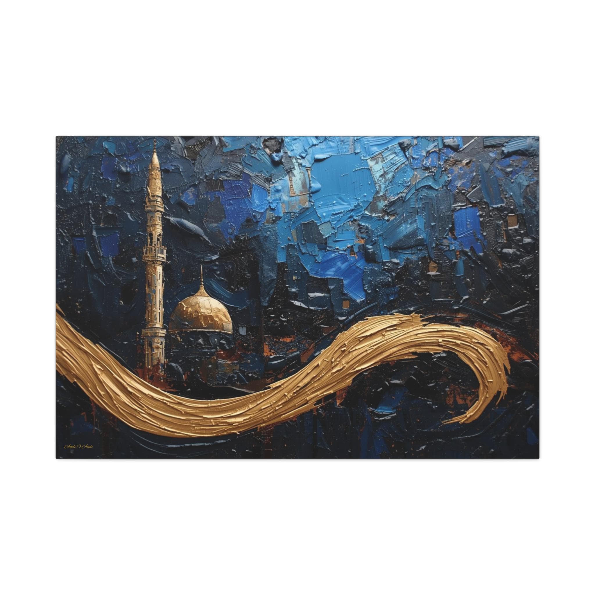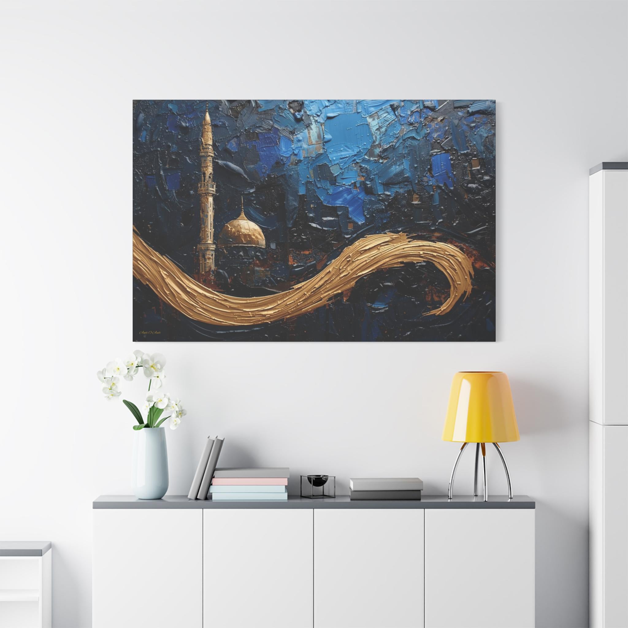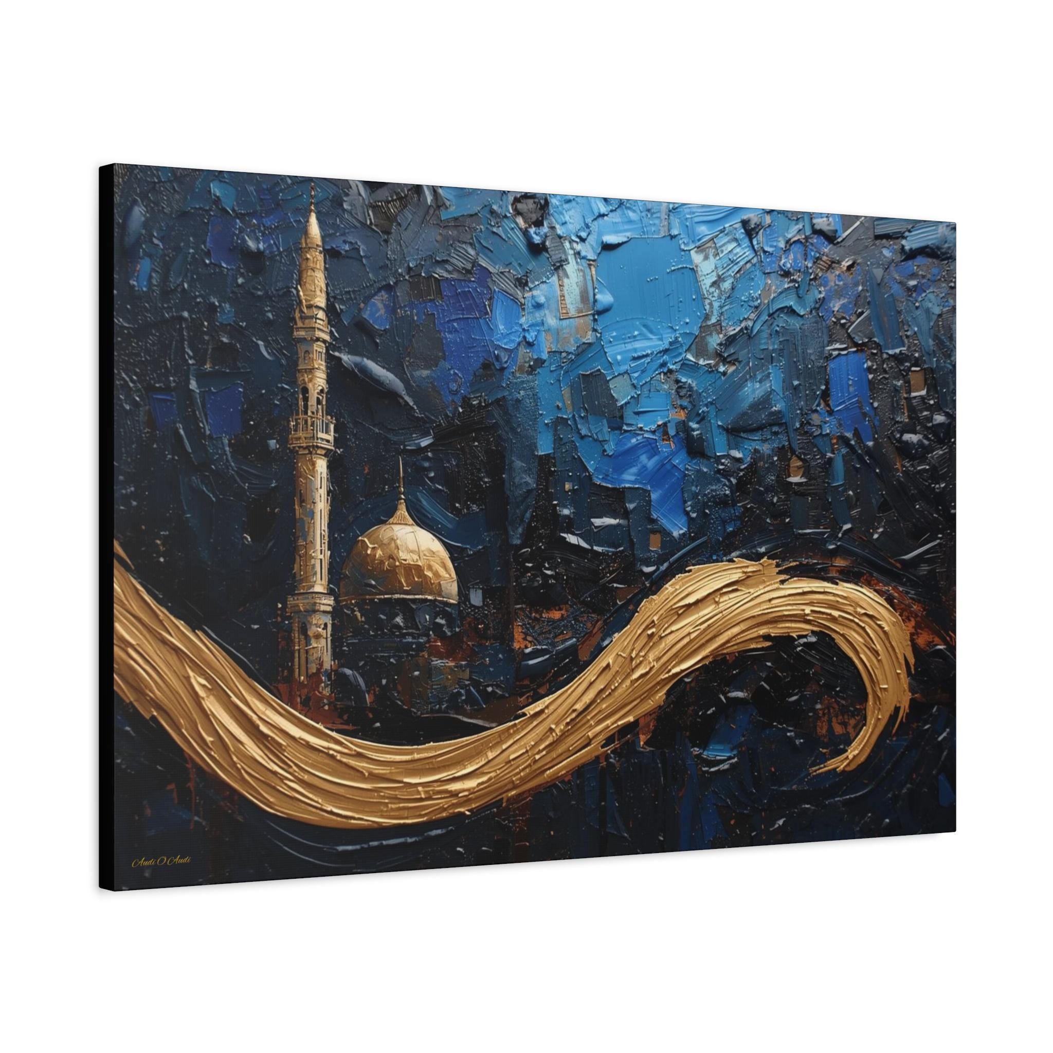 The Golden Crescent, Gold Brushstroke Mosque Canvas Print