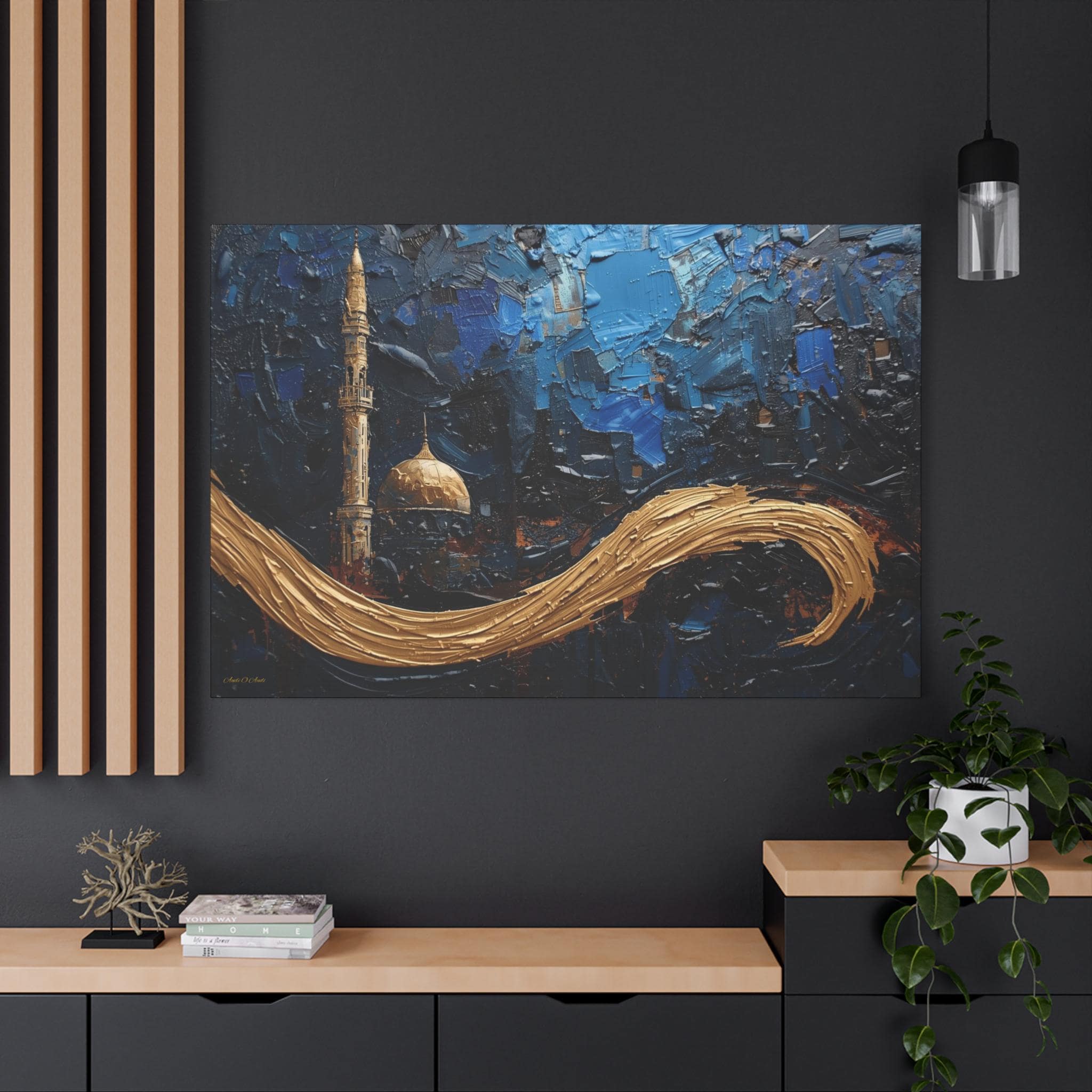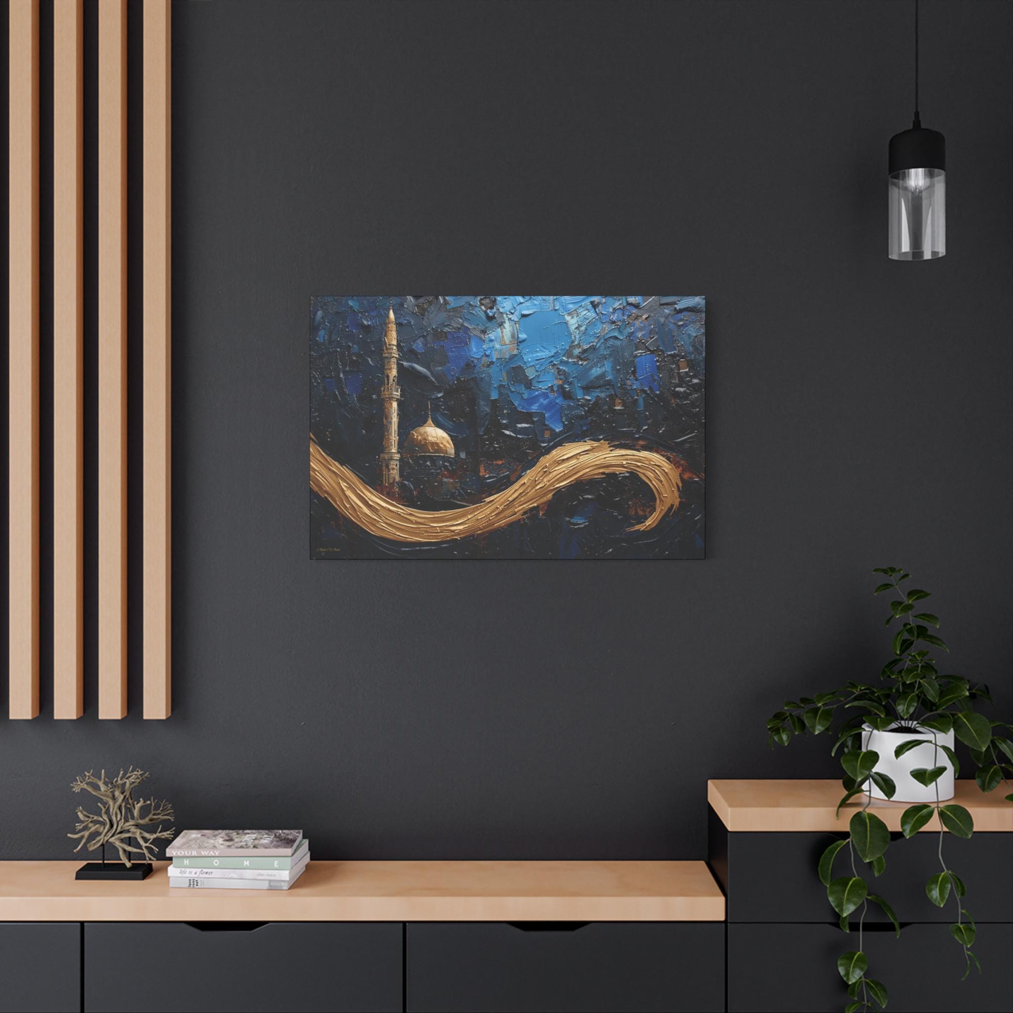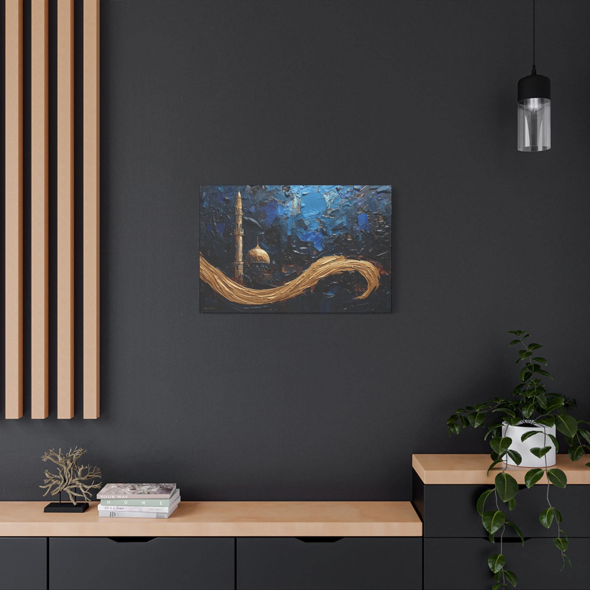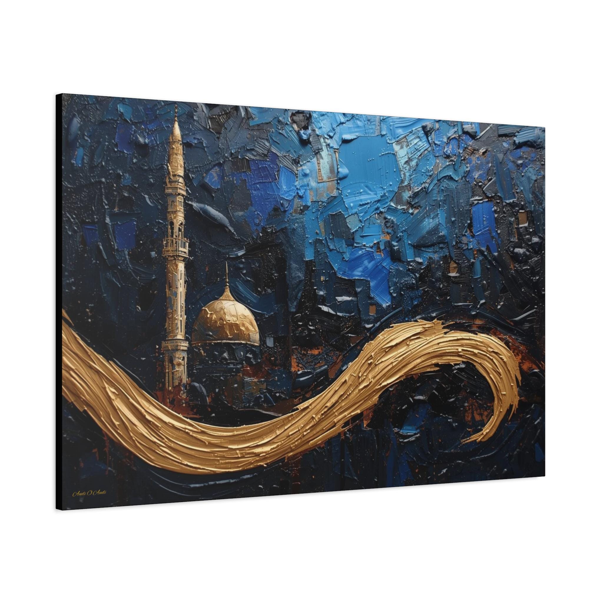 The Golden Crescent, Gold Brushstroke Mosque Canvas Print