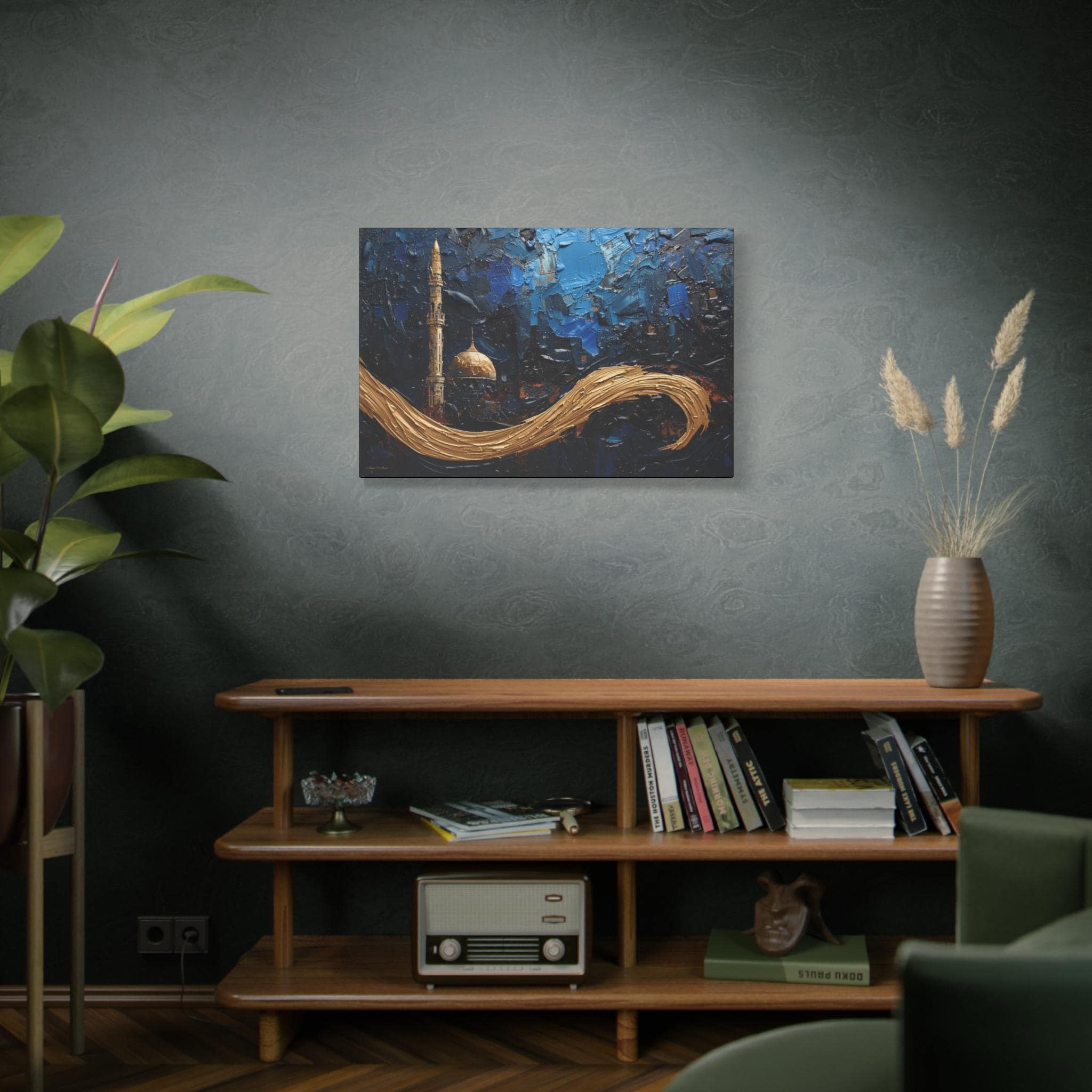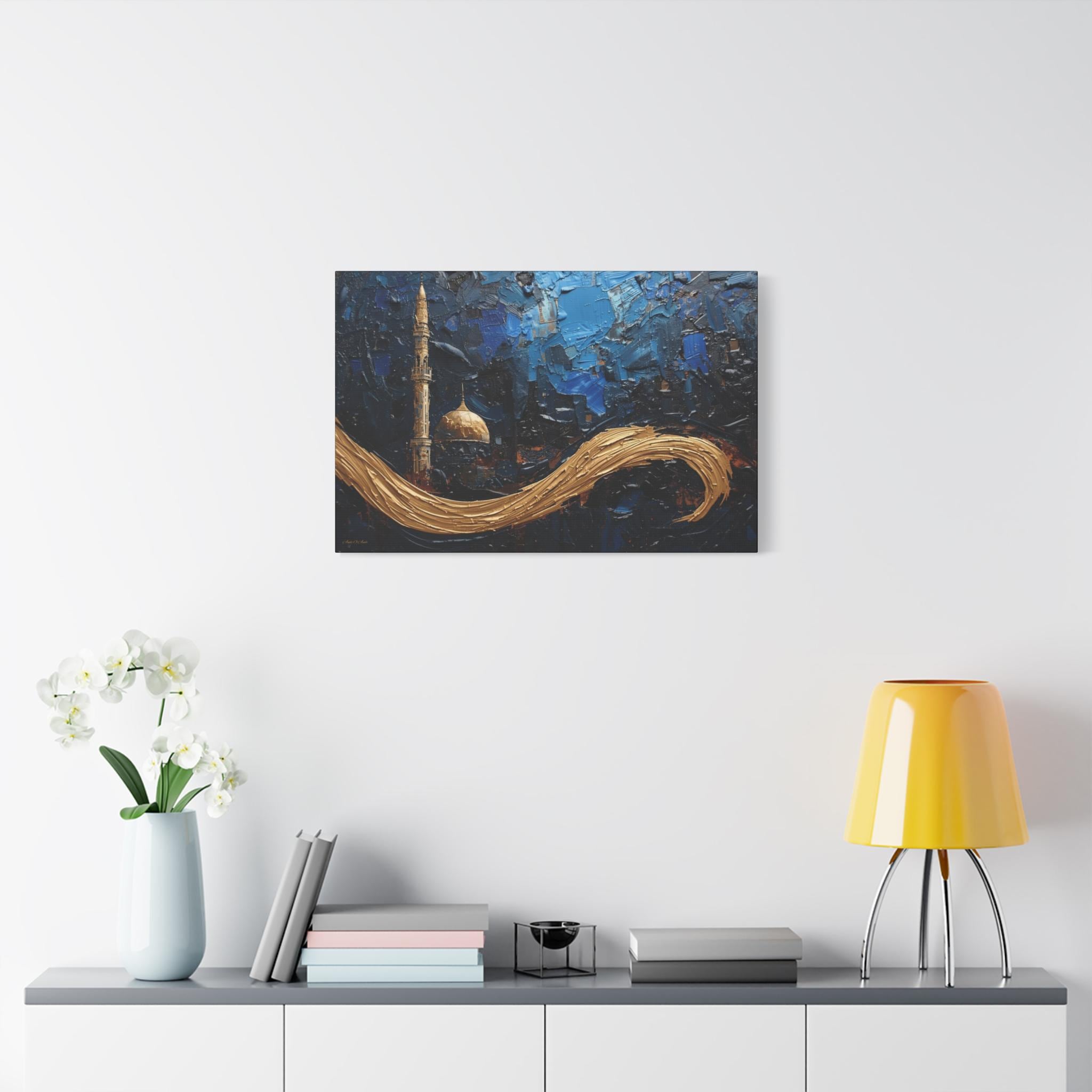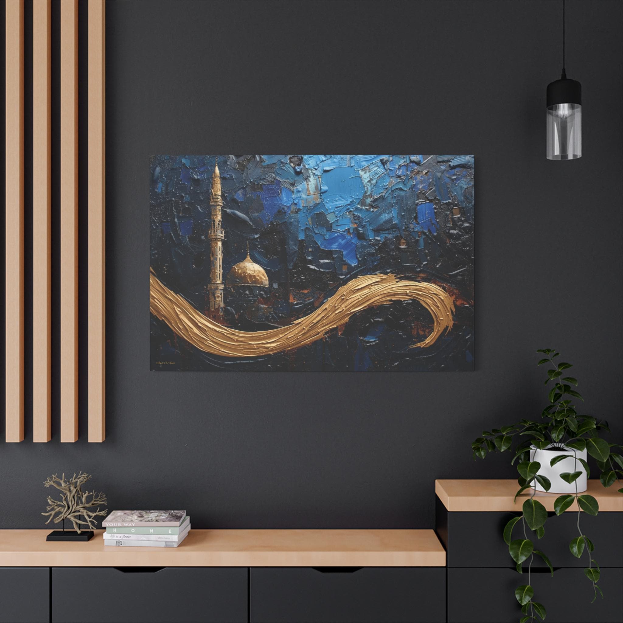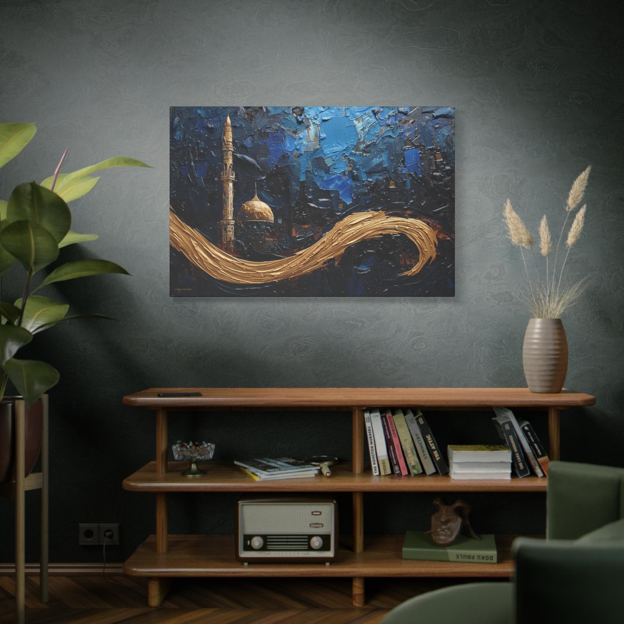 The Golden Crescent, Gold Brushstroke Mosque Canvas Print