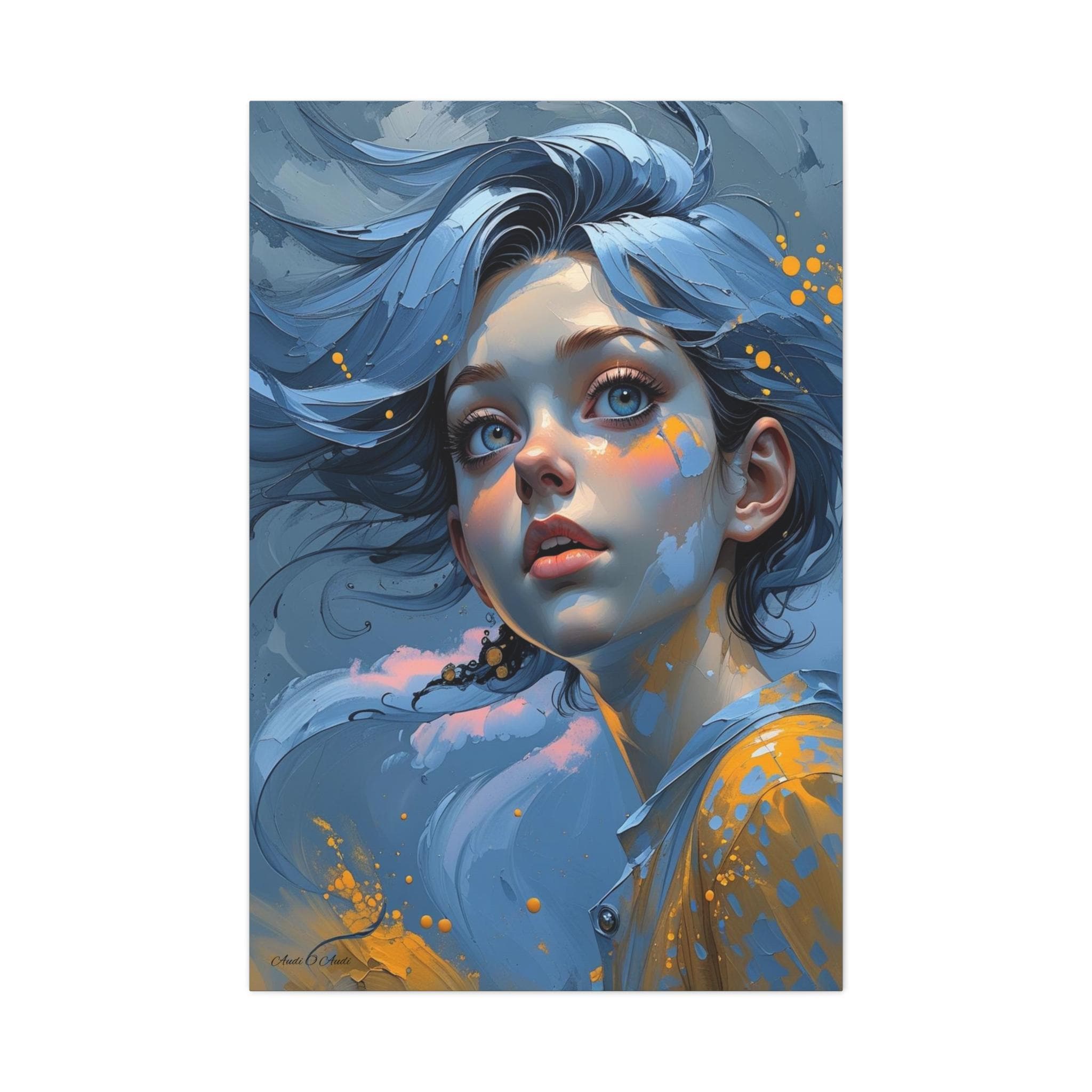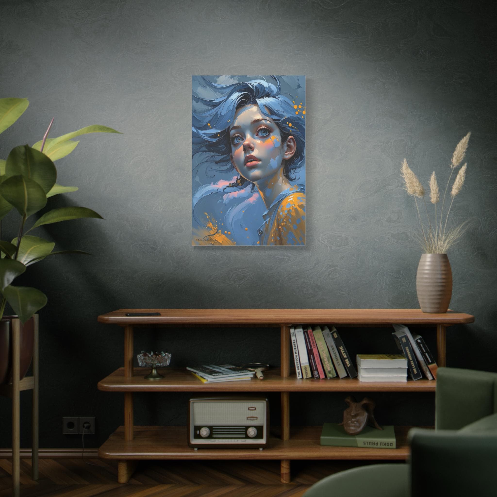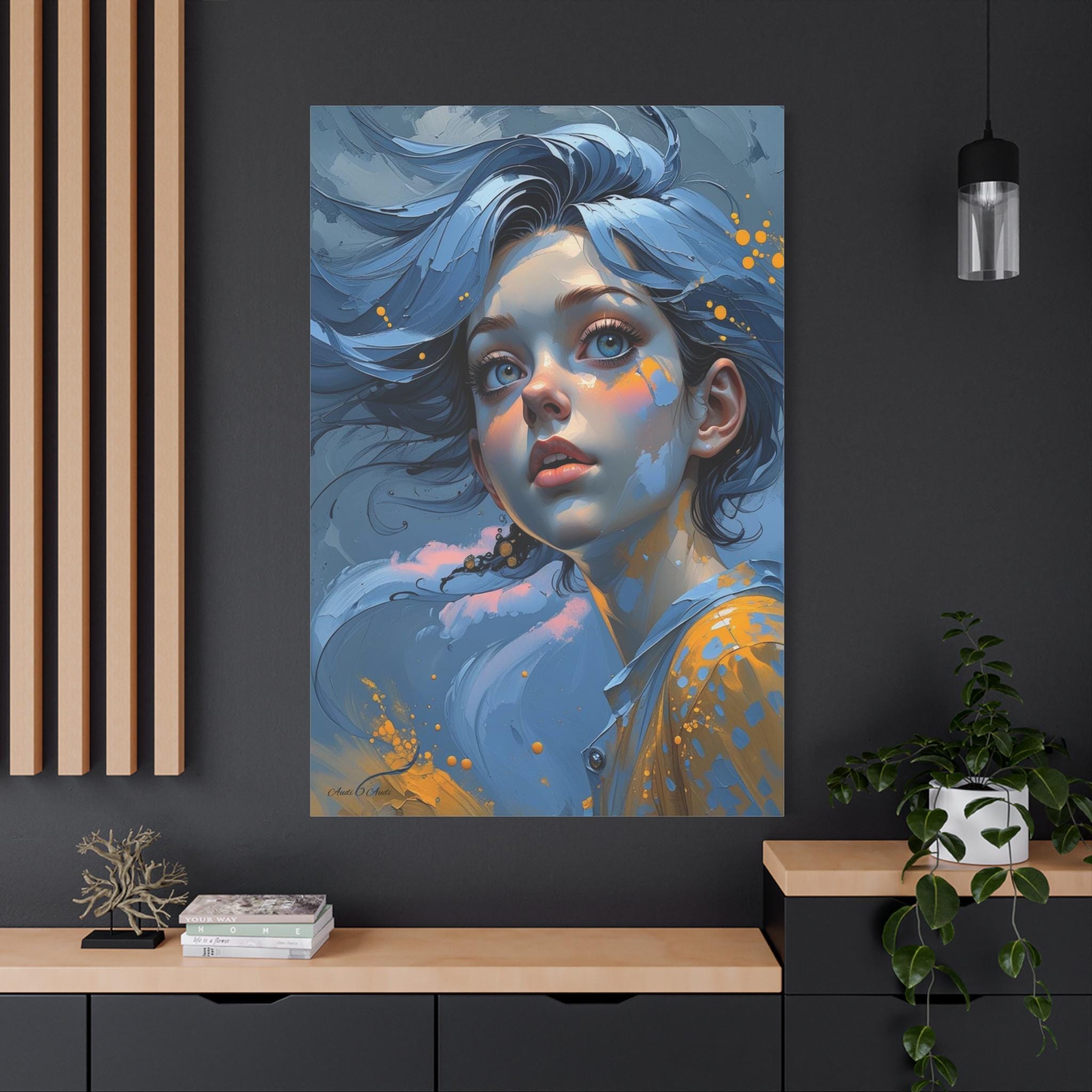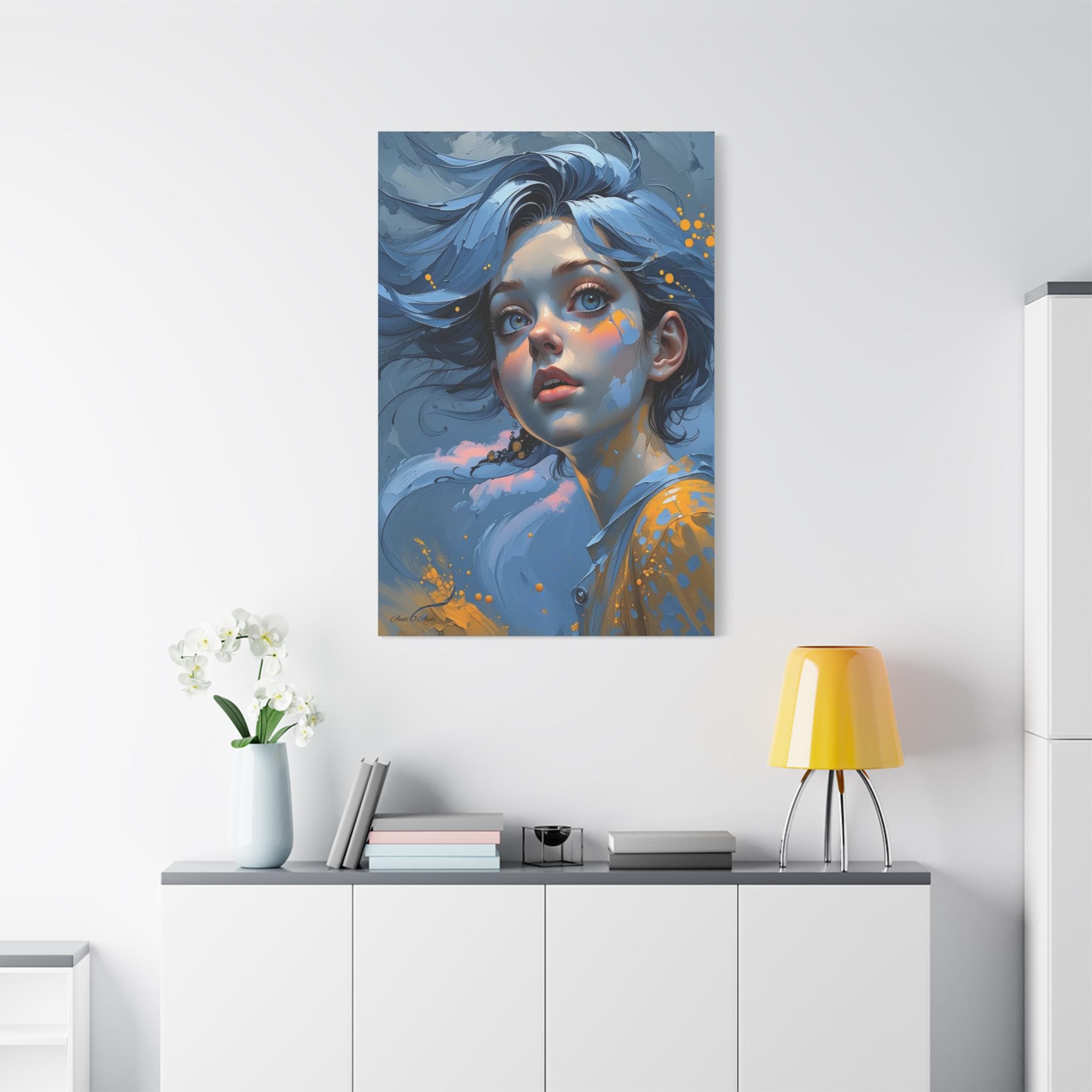 Aura of the Wind, Blue-Haired Girl Portrait Matte Canvas, Wall Decor, Blue Aesthetic, Living Room Art, Modern Portrait.