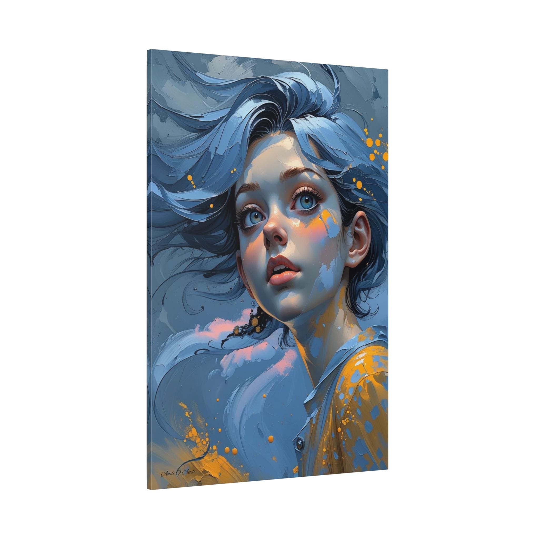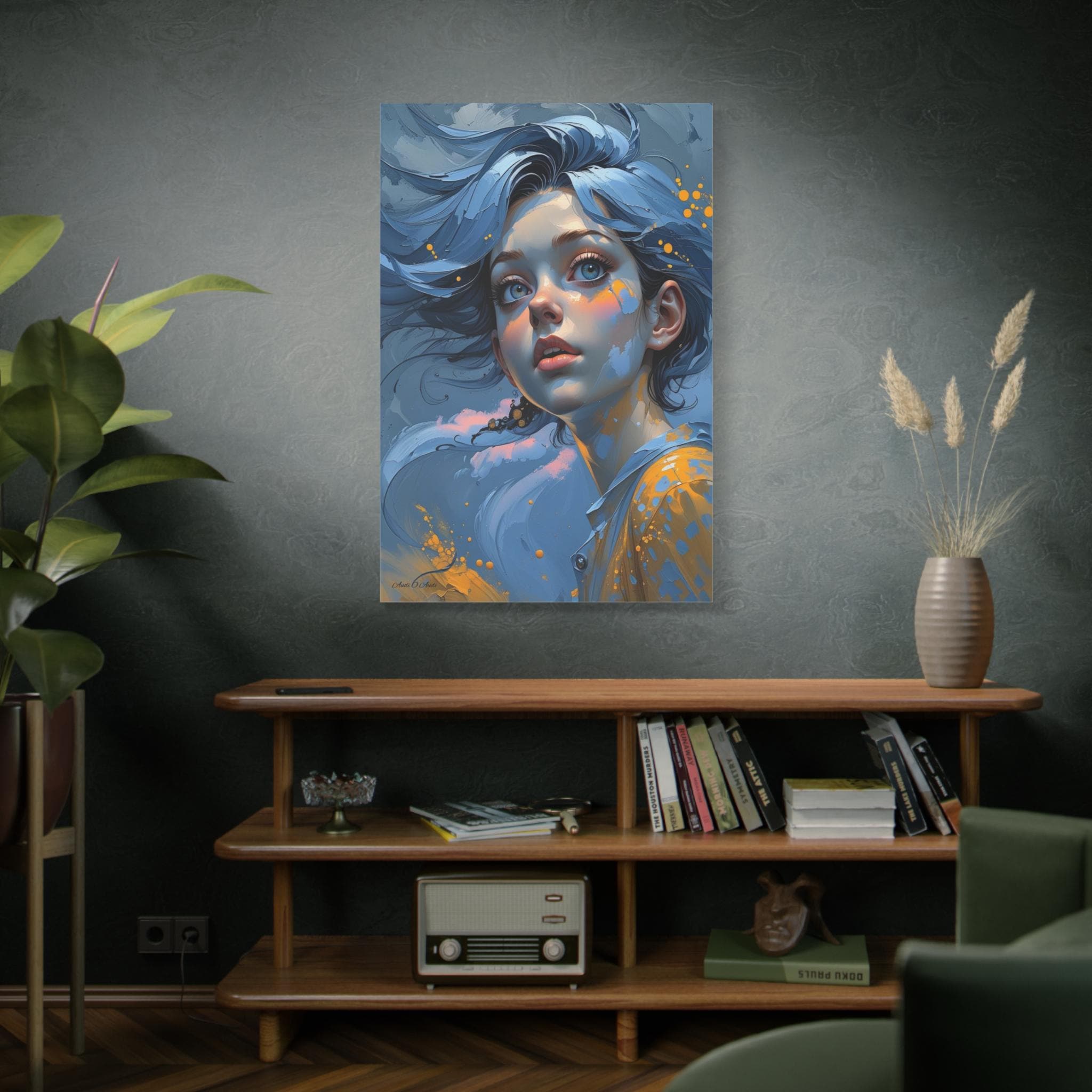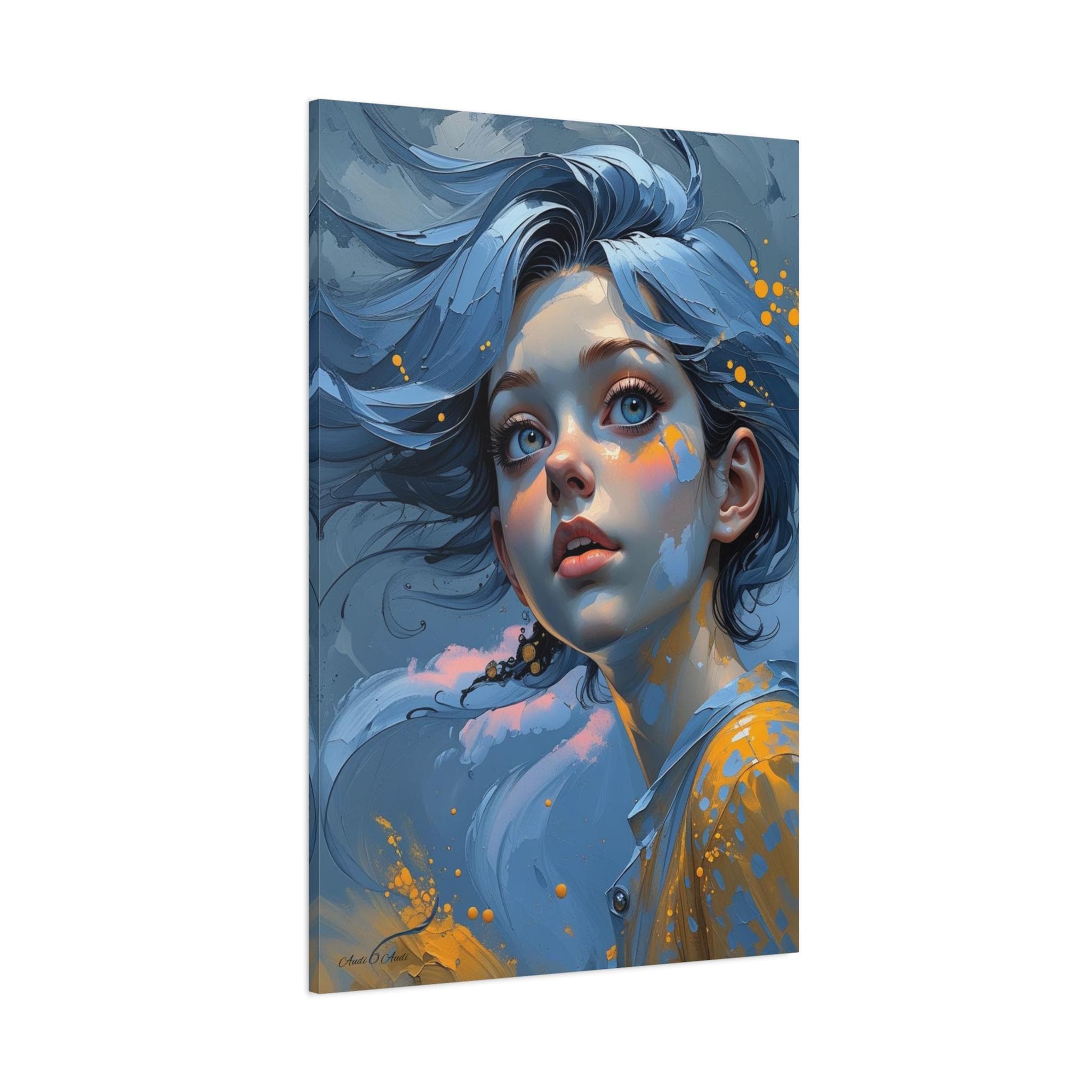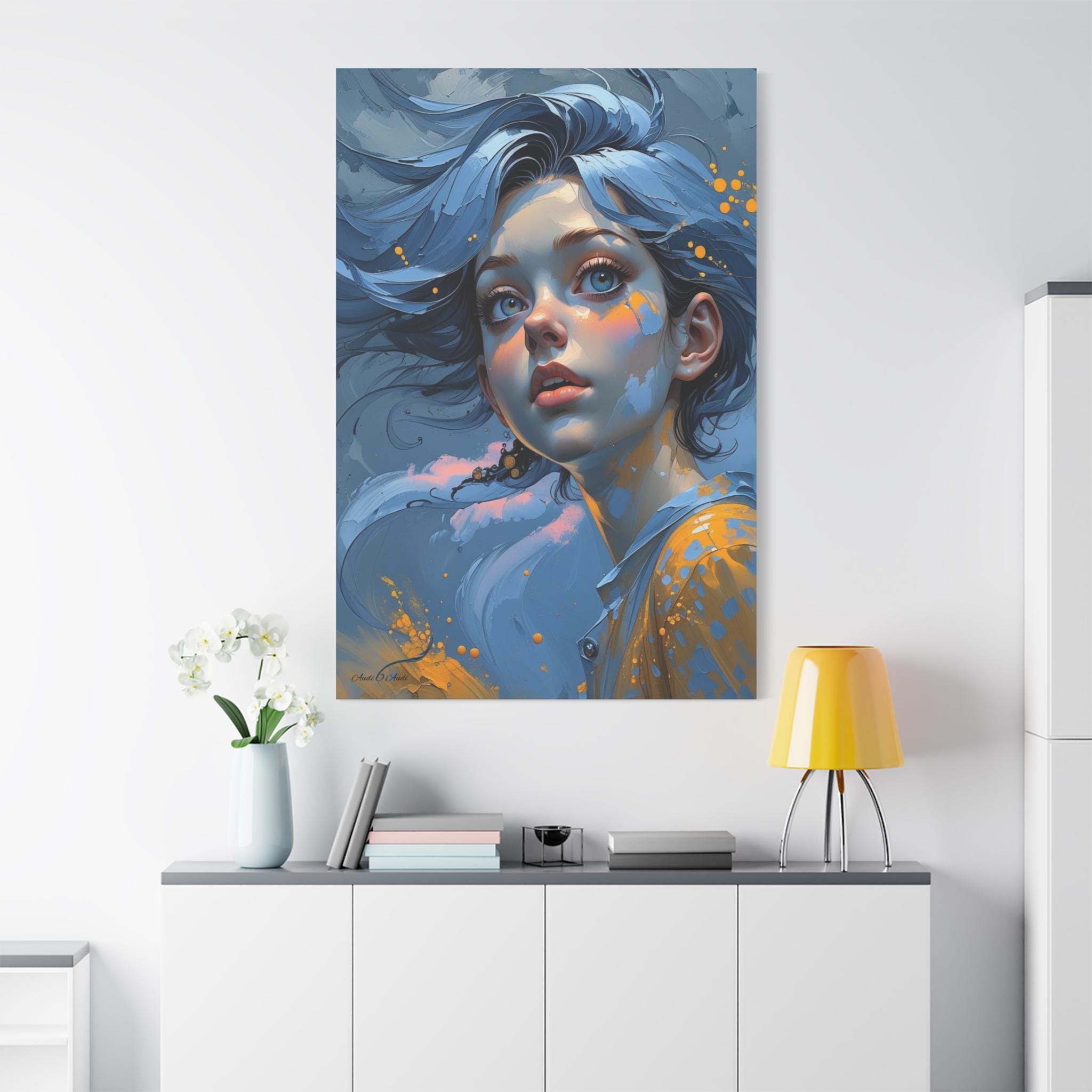 Aura of the Wind, Blue-Haired Girl Portrait Matte Canvas, Wall Decor, Blue Aesthetic, Living Room Art, Modern Portrait.