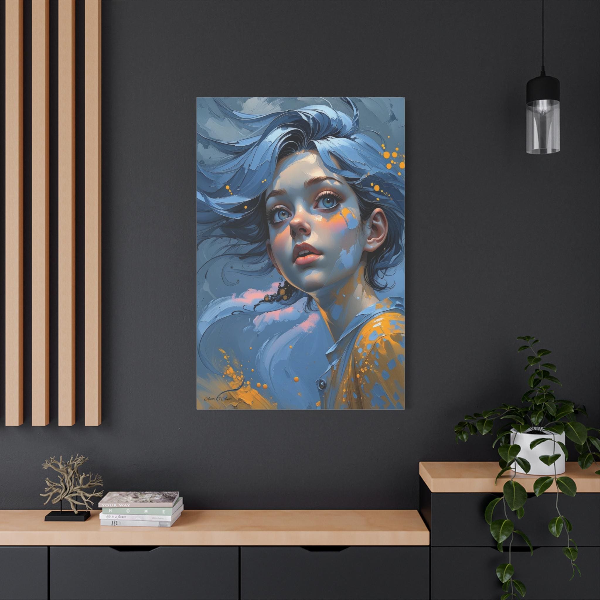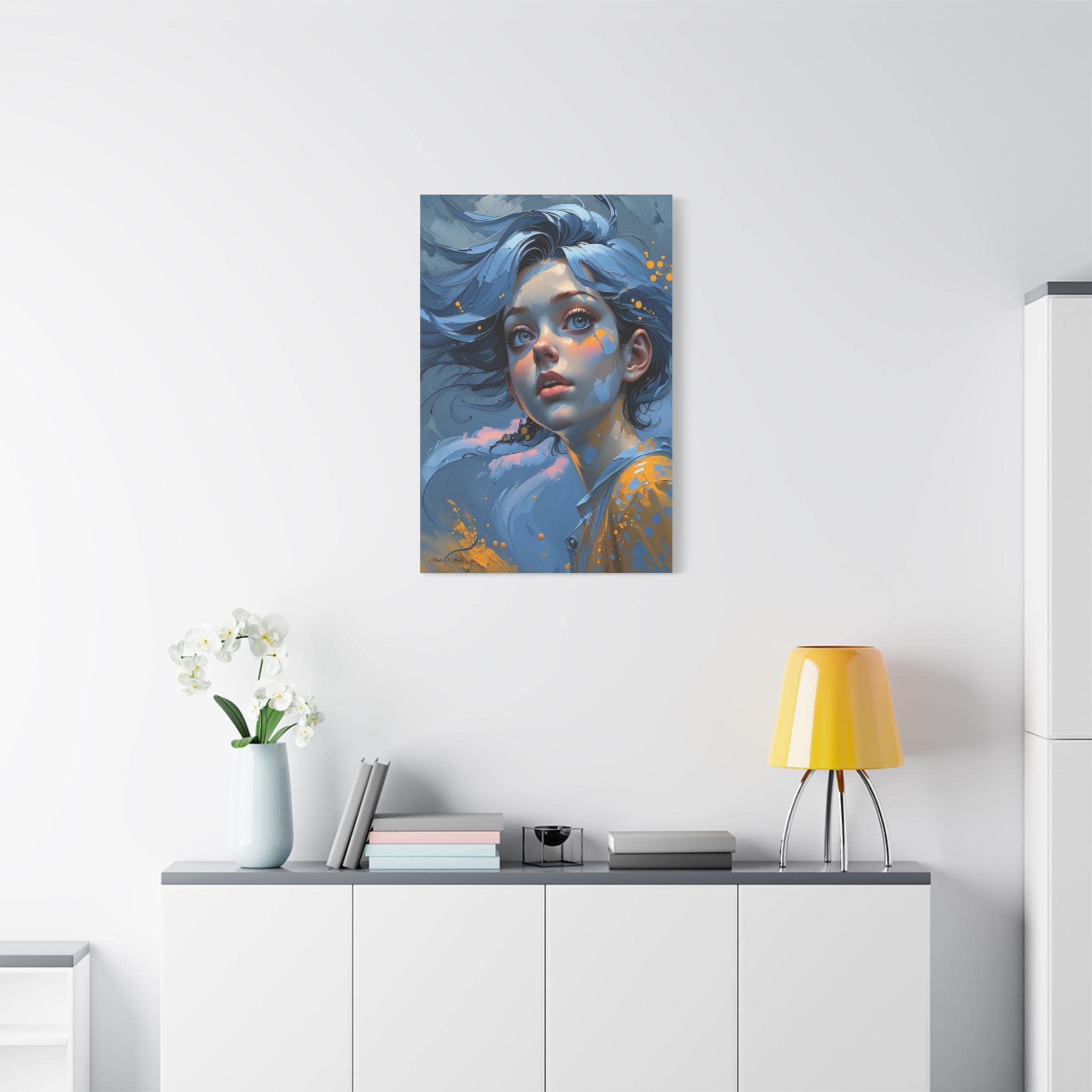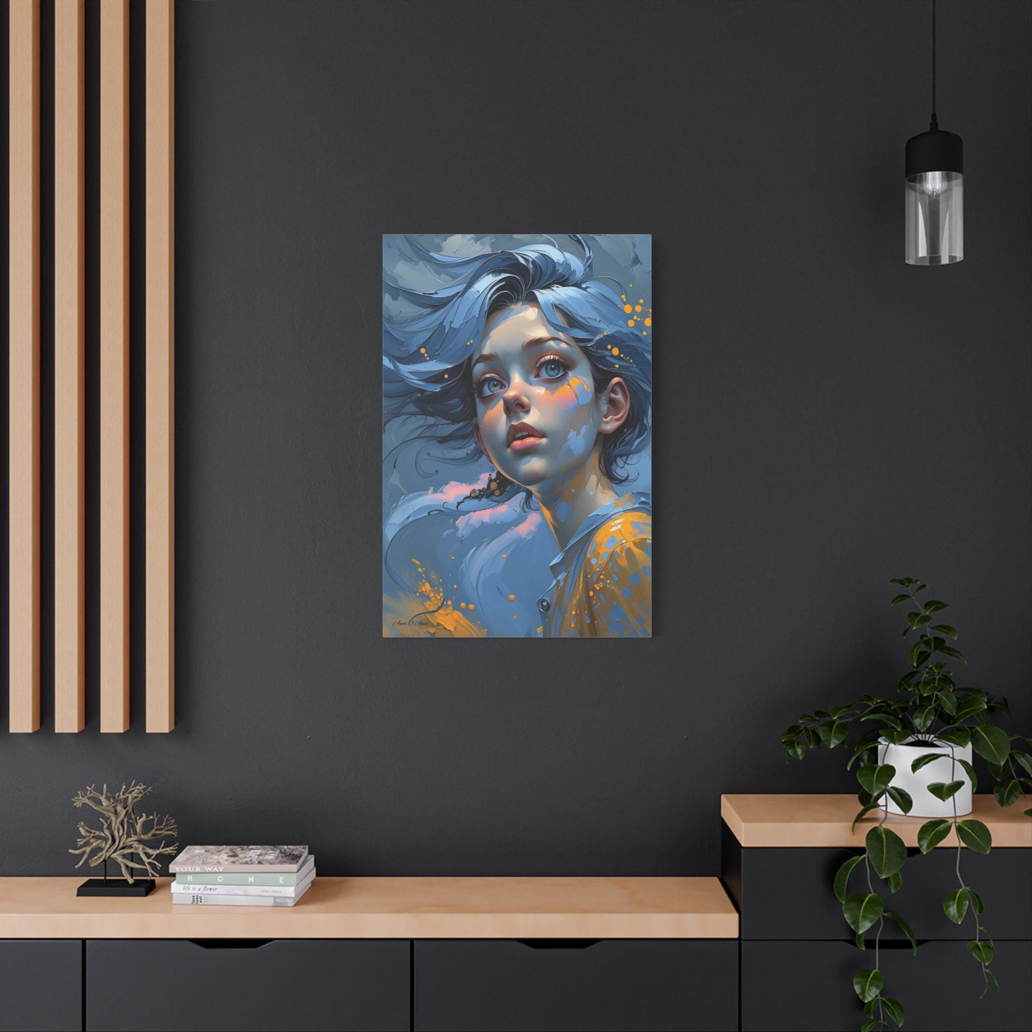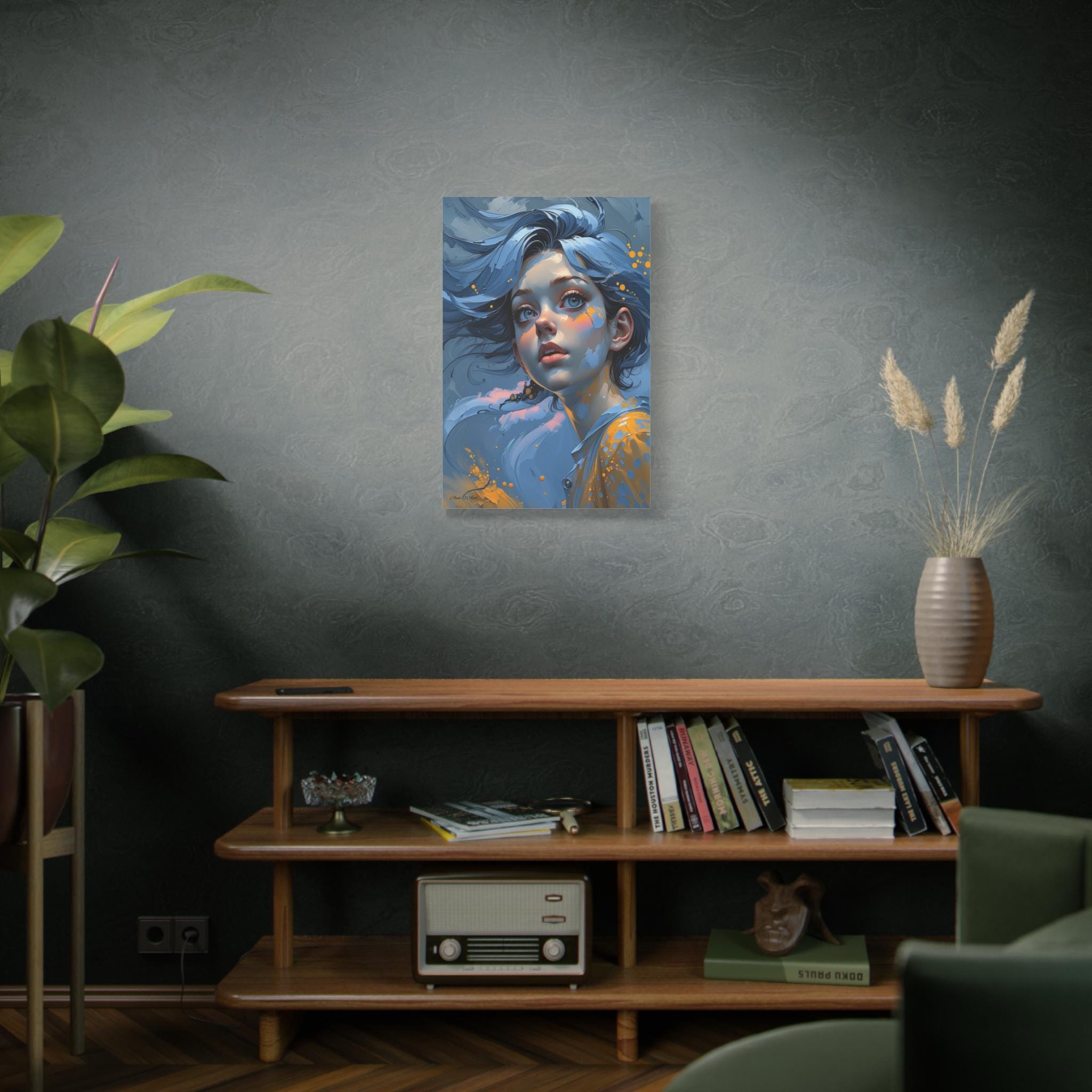 Aura of the Wind, Blue-Haired Girl Portrait Matte Canvas, Wall Decor, Blue Aesthetic, Living Room Art, Modern Portrait.