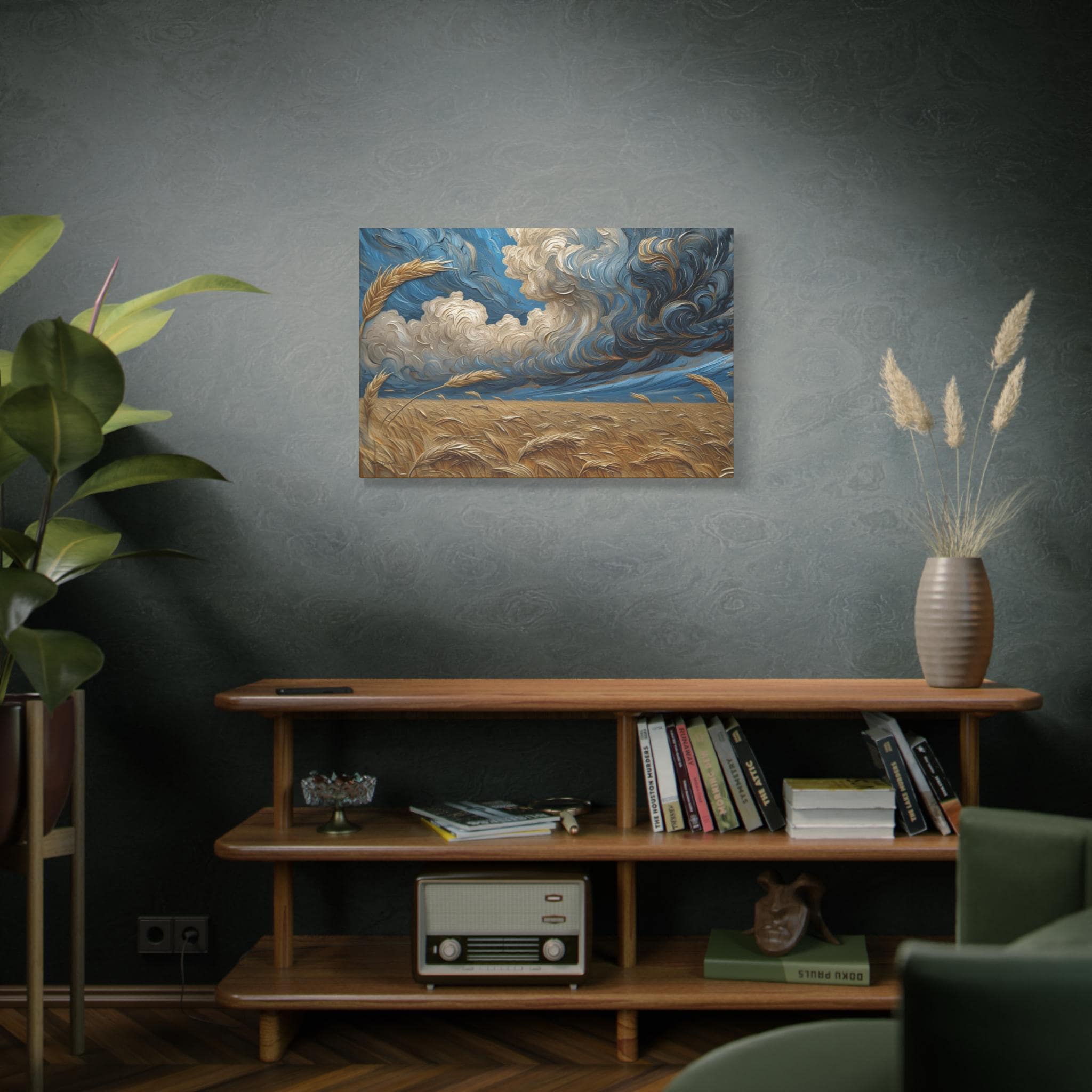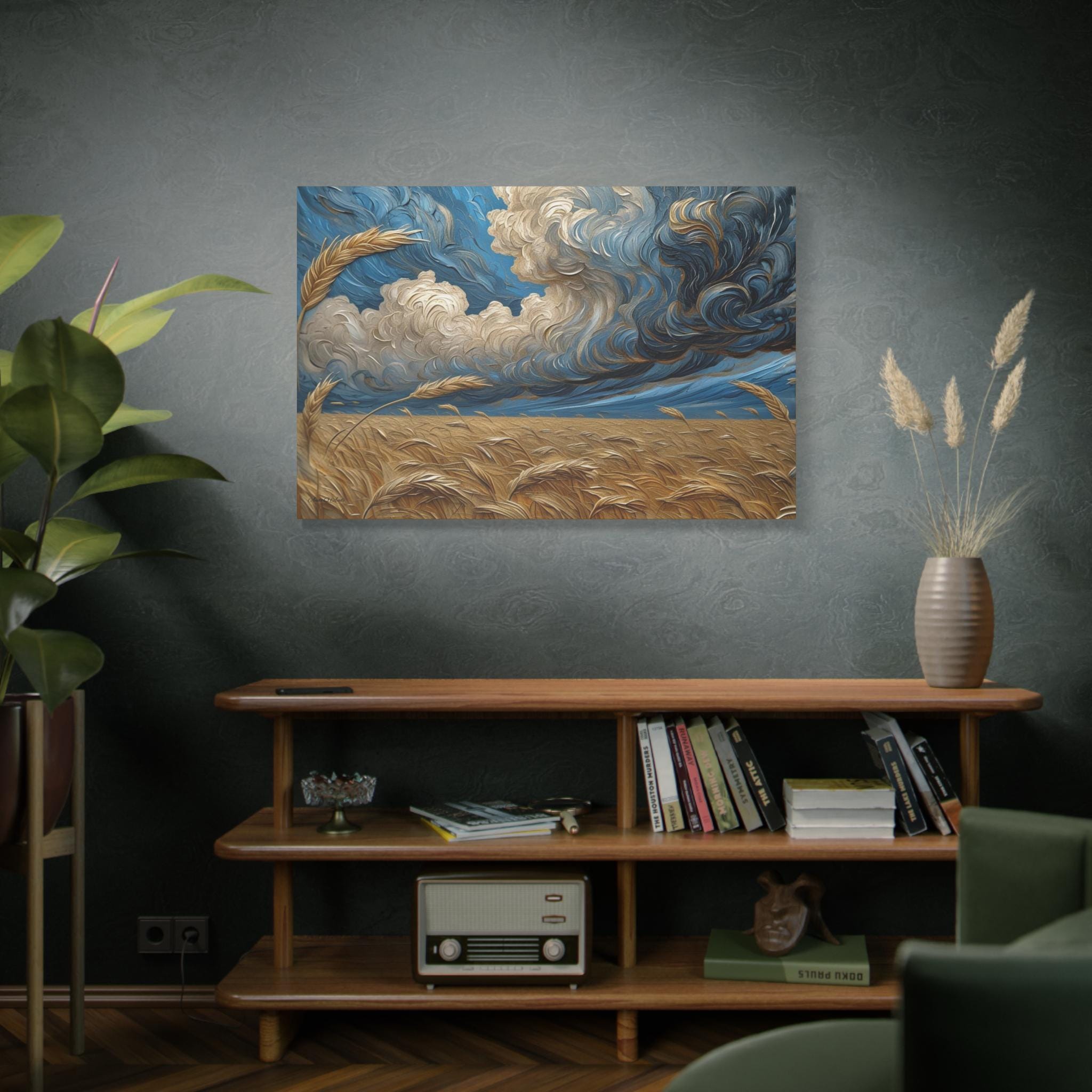 Wheat Harvest Under Tempest, Field Storm Clouds Canvas, Country Wall Art, Wheat Field Art, Rustic Wall Decor, Cozy Home Decor.