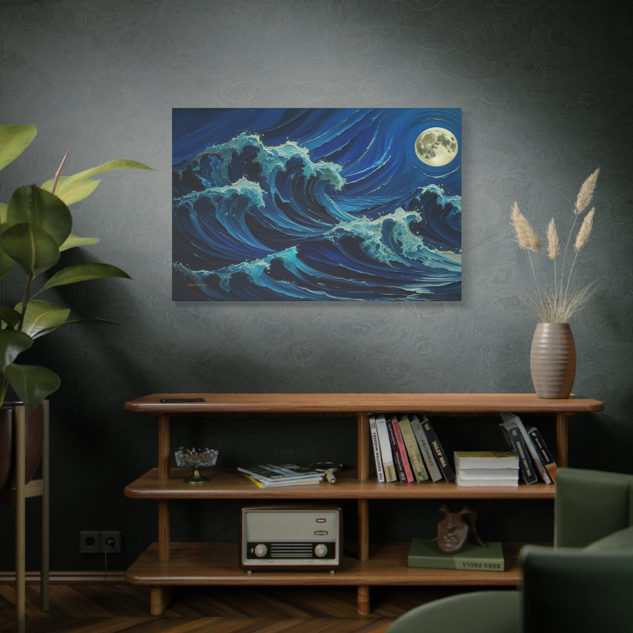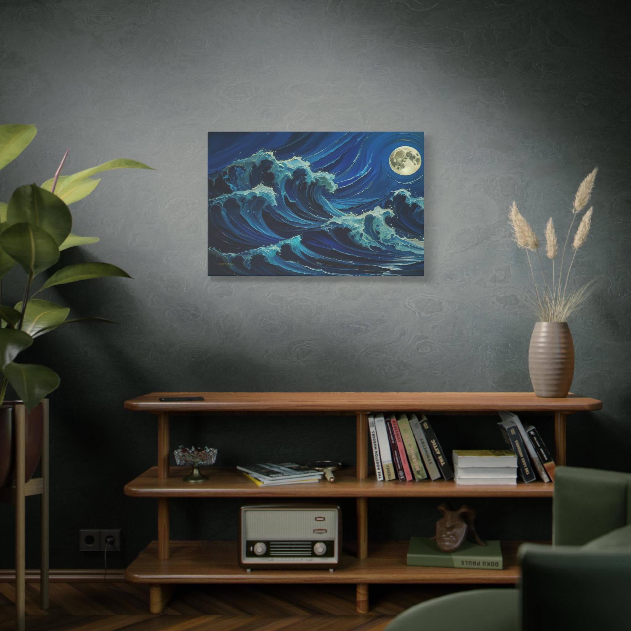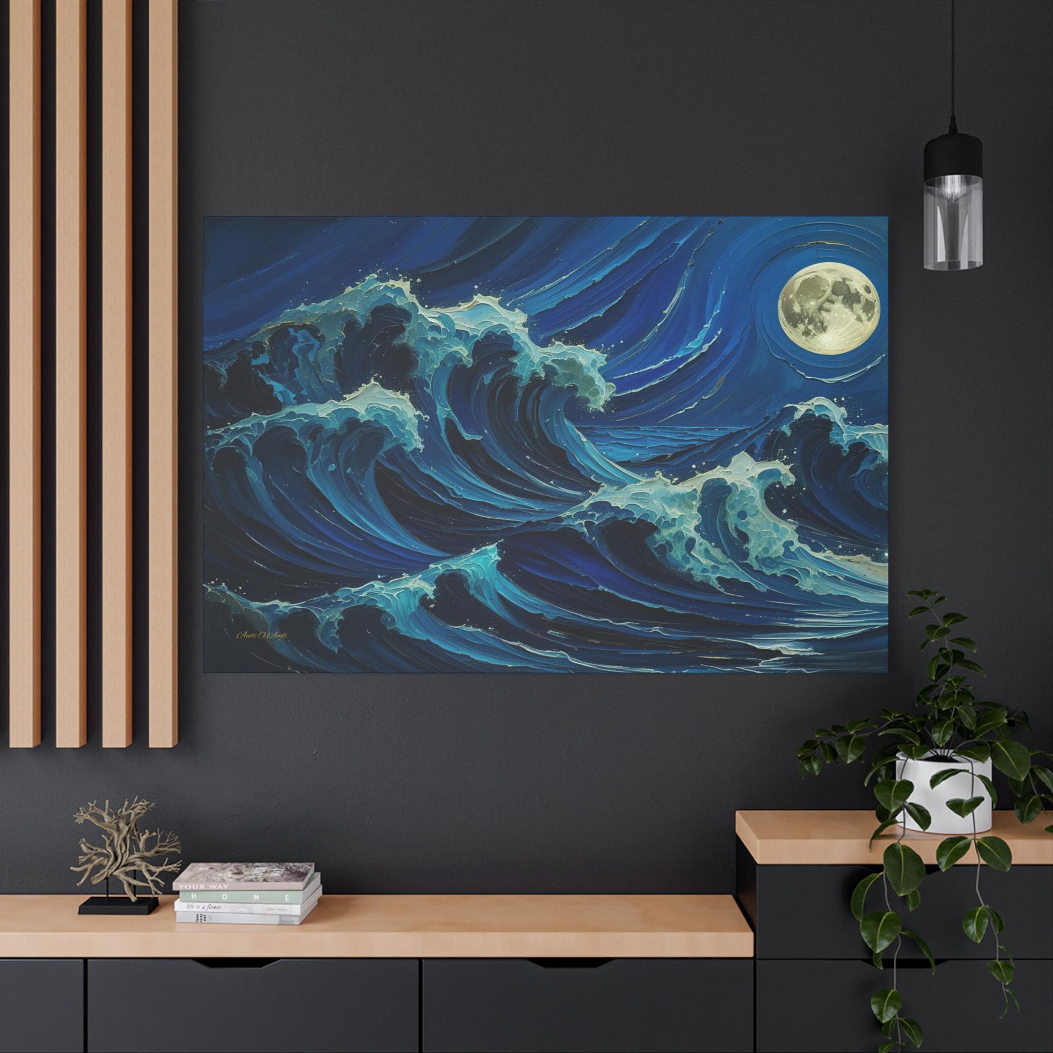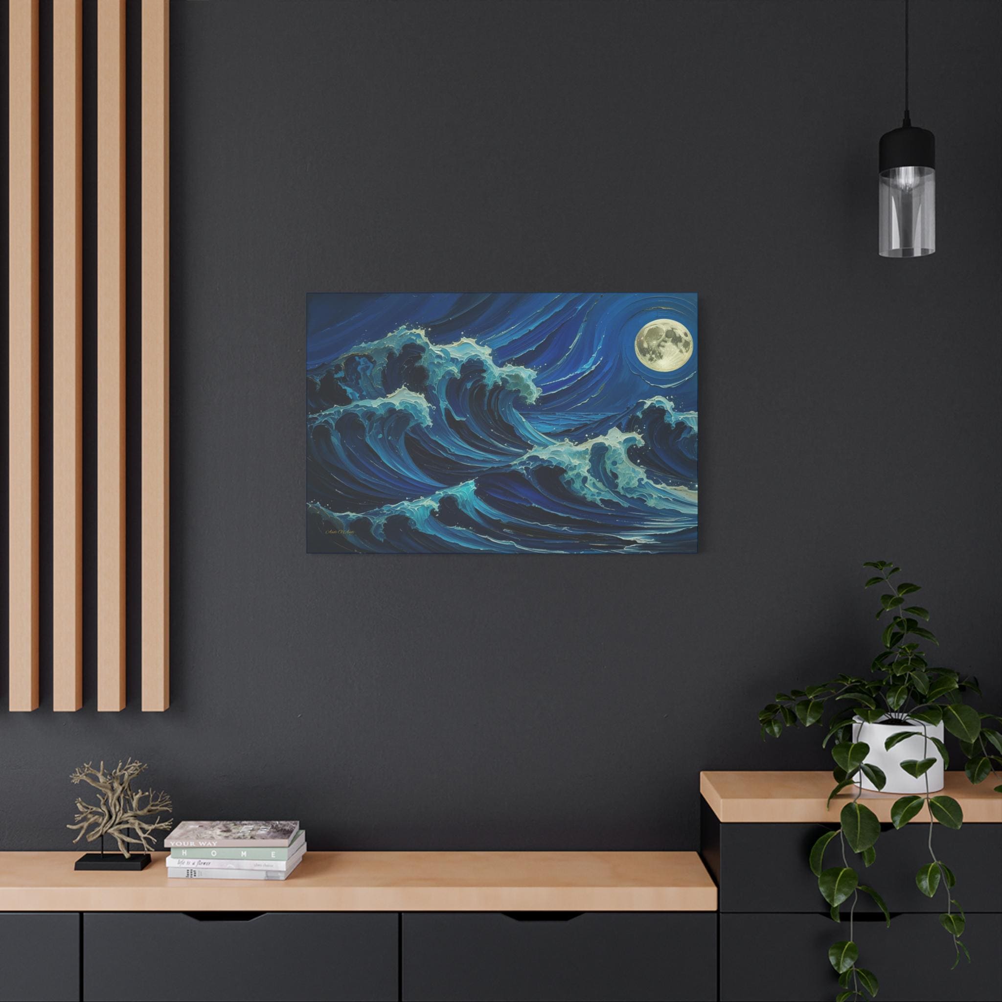 Midnight Tide, Moonlit Ocean Waves Canvas Print, Nautical Decor, Moonlight Waves, Marine Artwork, Boho Coastal, Calming Artwork.