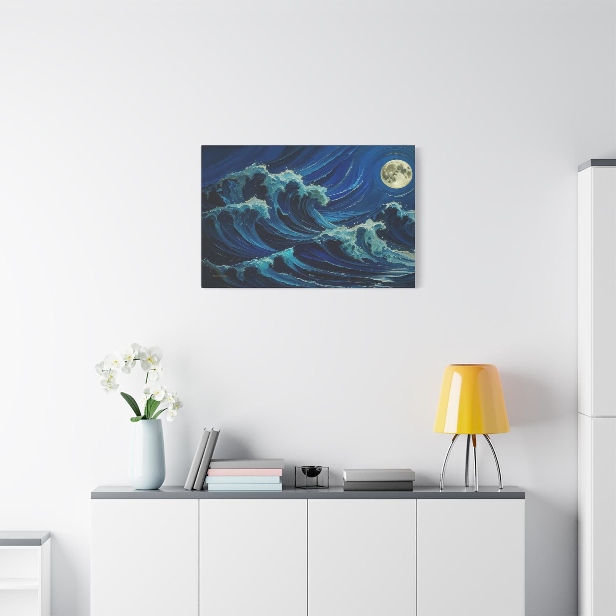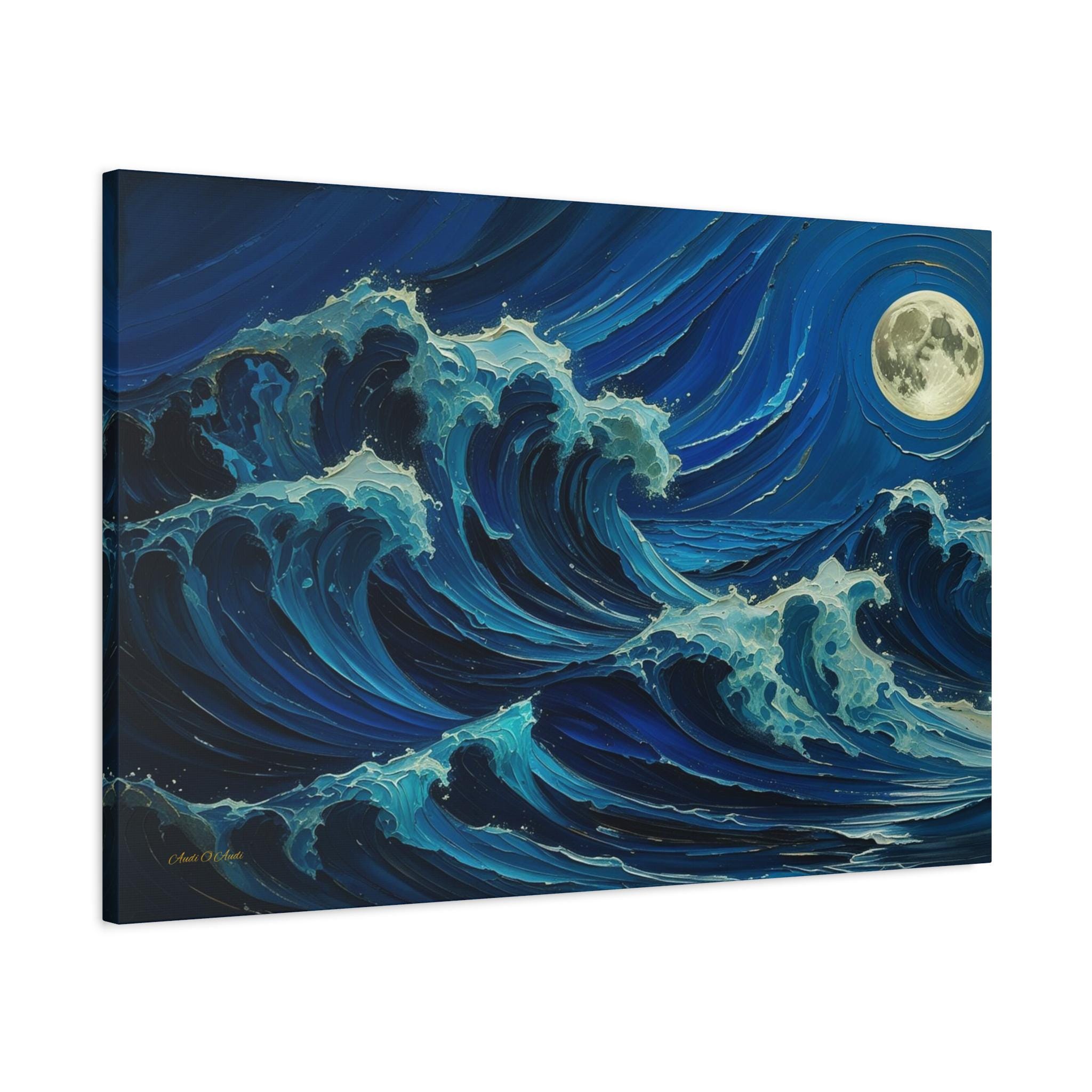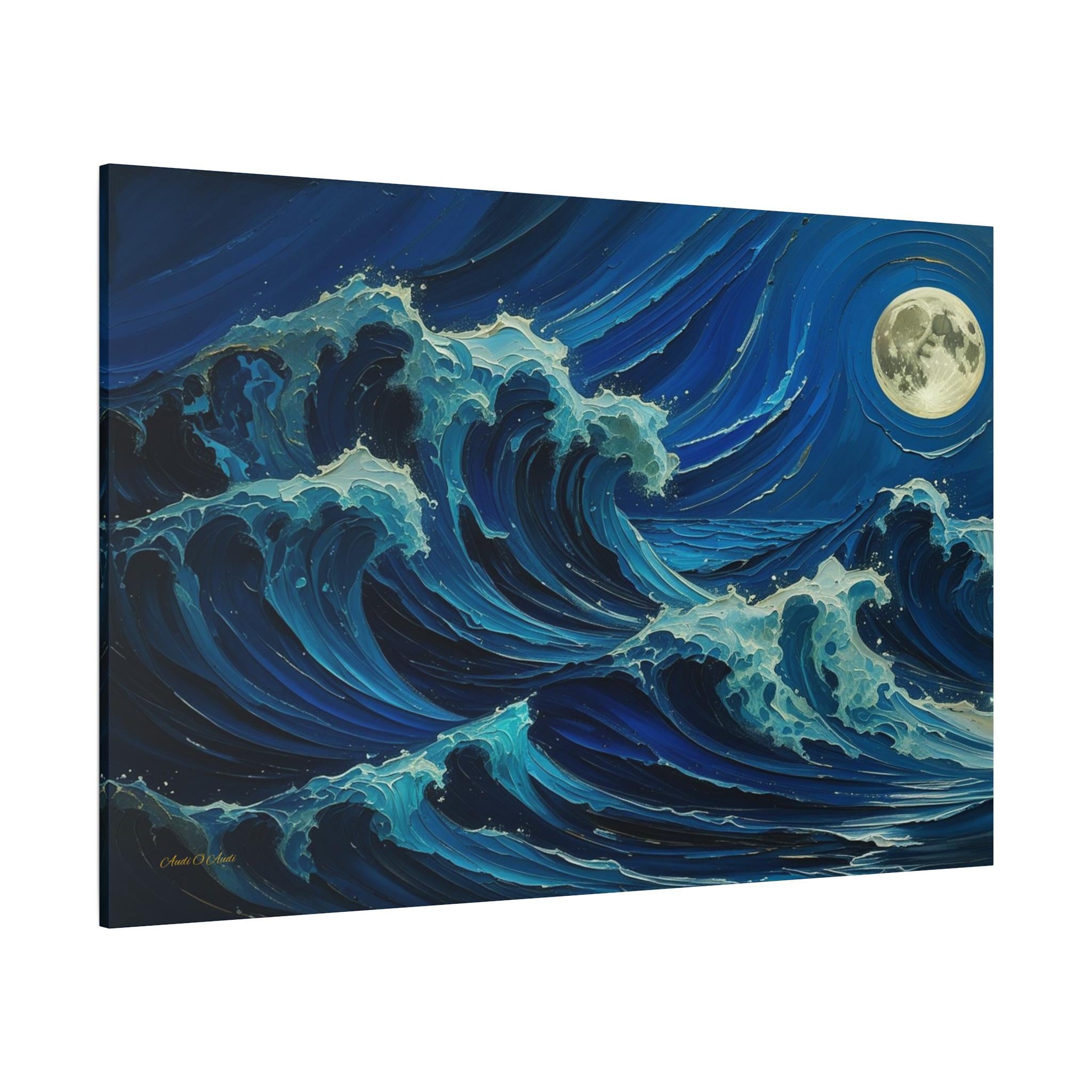 Midnight Tide, Moonlit Ocean Waves Canvas Print, Nautical Decor, Moonlight Waves, Marine Artwork, Boho Coastal, Calming Artwork.