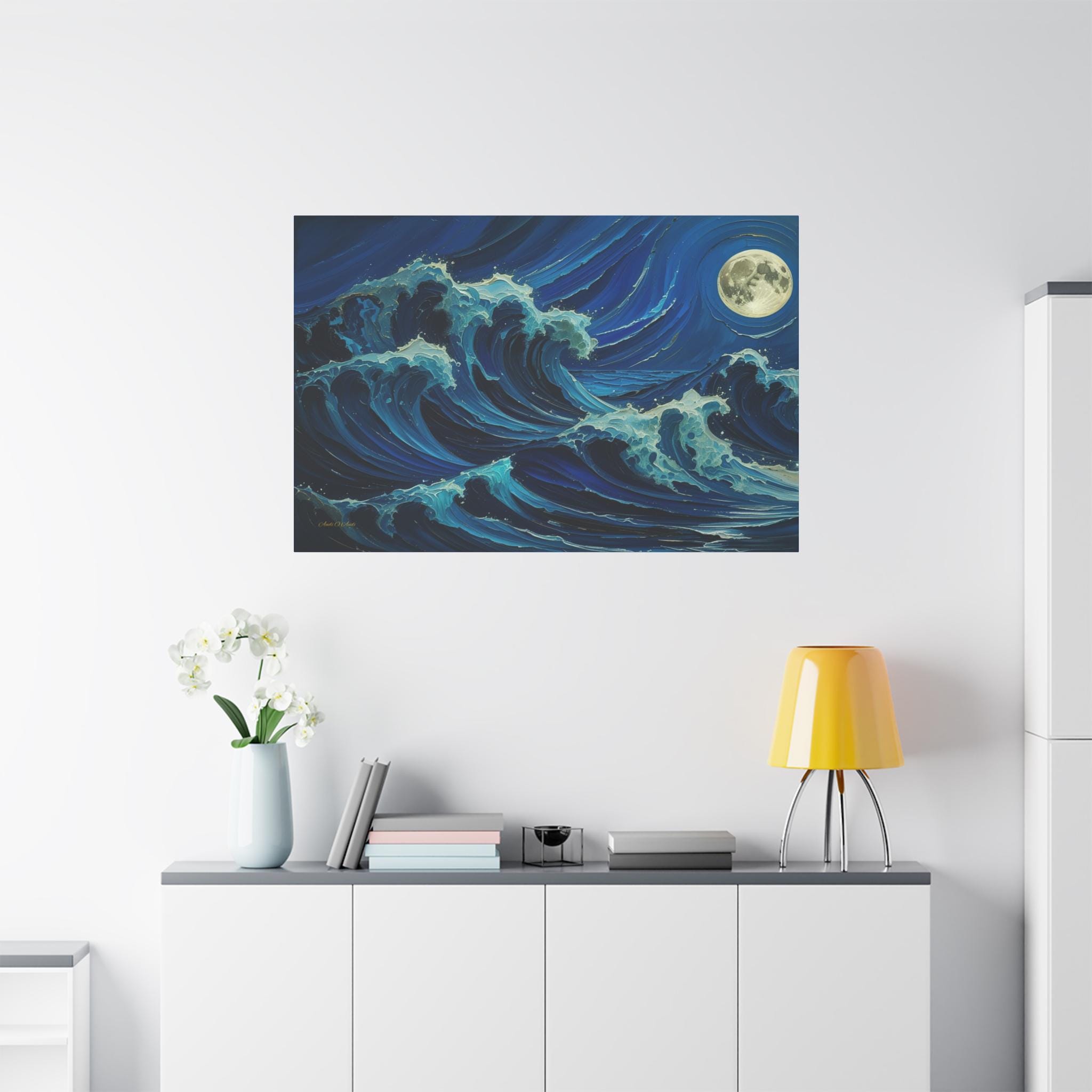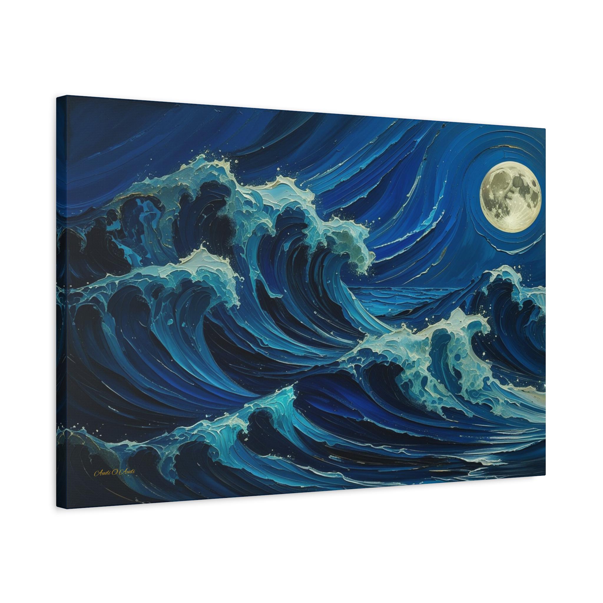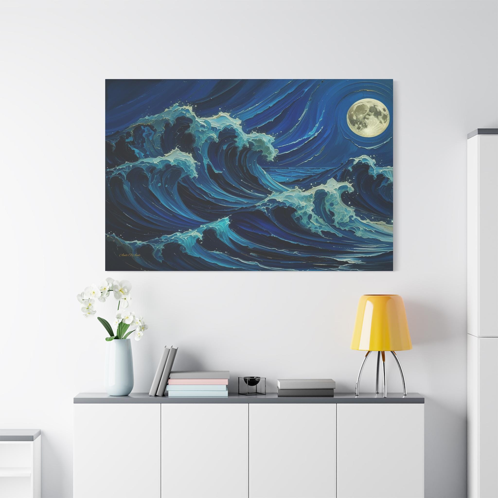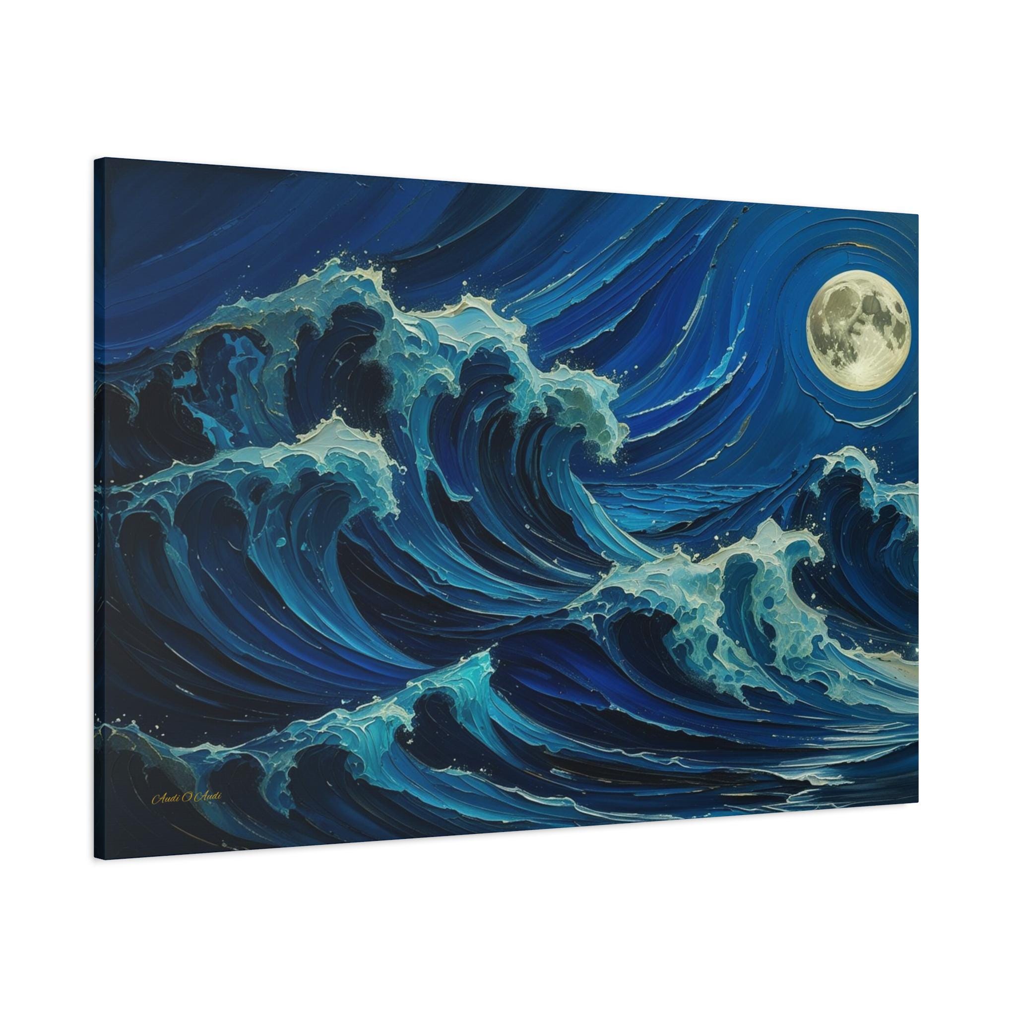 Midnight Tide, Moonlit Ocean Waves Canvas Print, Nautical Decor, Moonlight Waves, Marine Artwork, Boho Coastal, Calming Artwork.