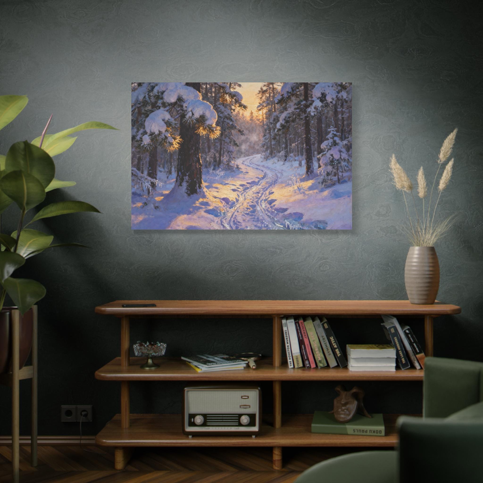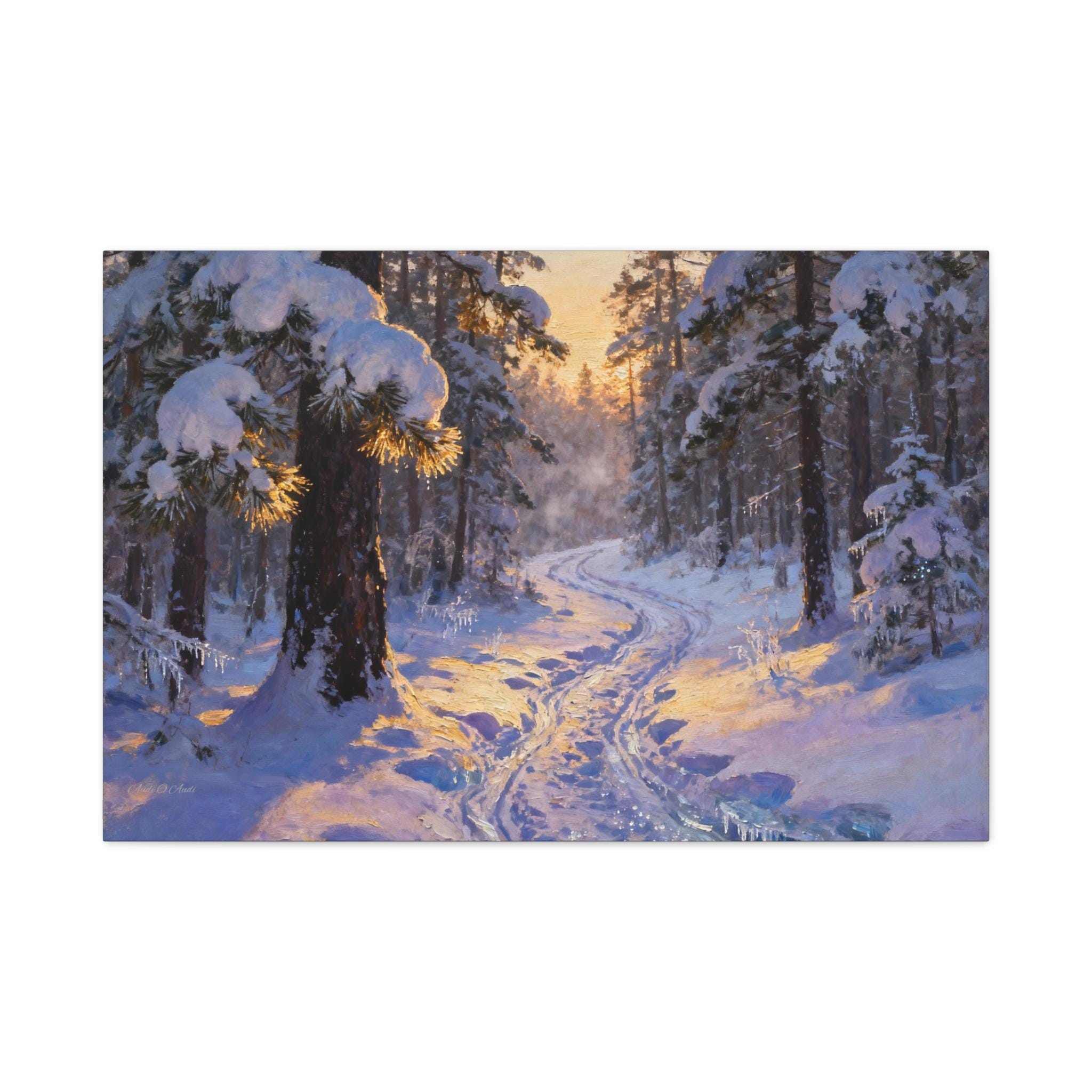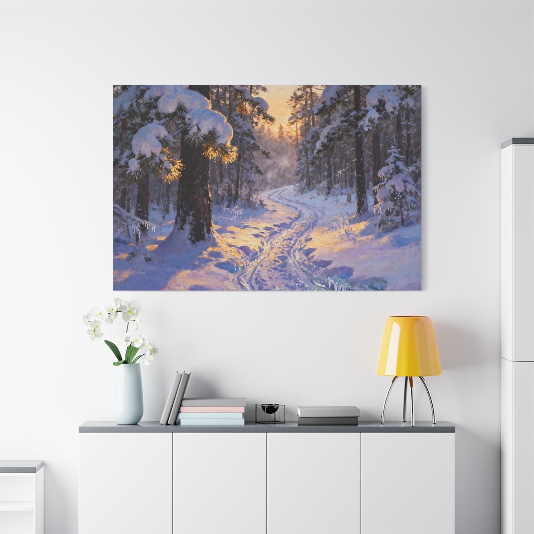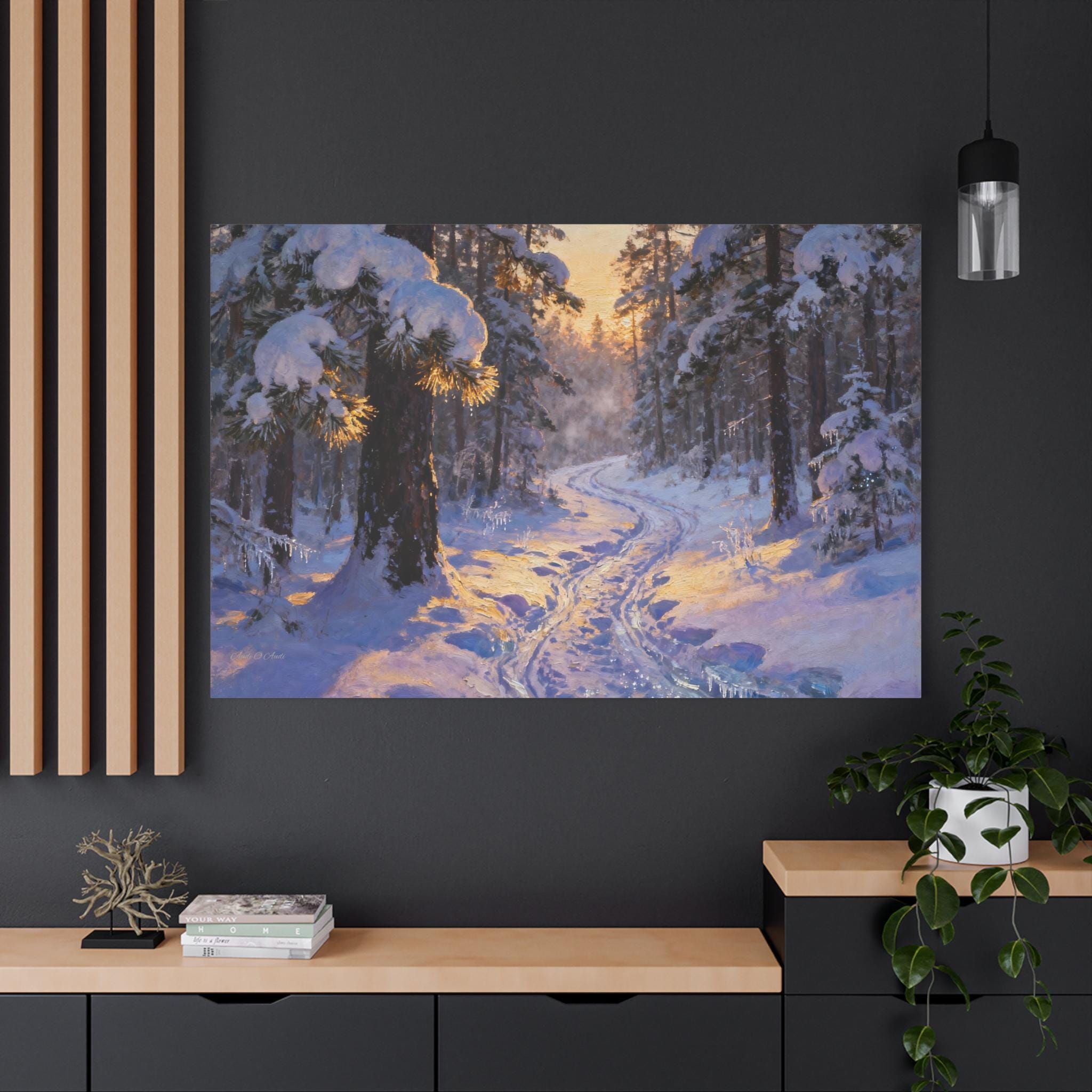 Frozen Forest Path, Forest Path Matte Canvas, Winter landscape Art, Rustic Home Decor, Country Living Art, Snowy Forest.