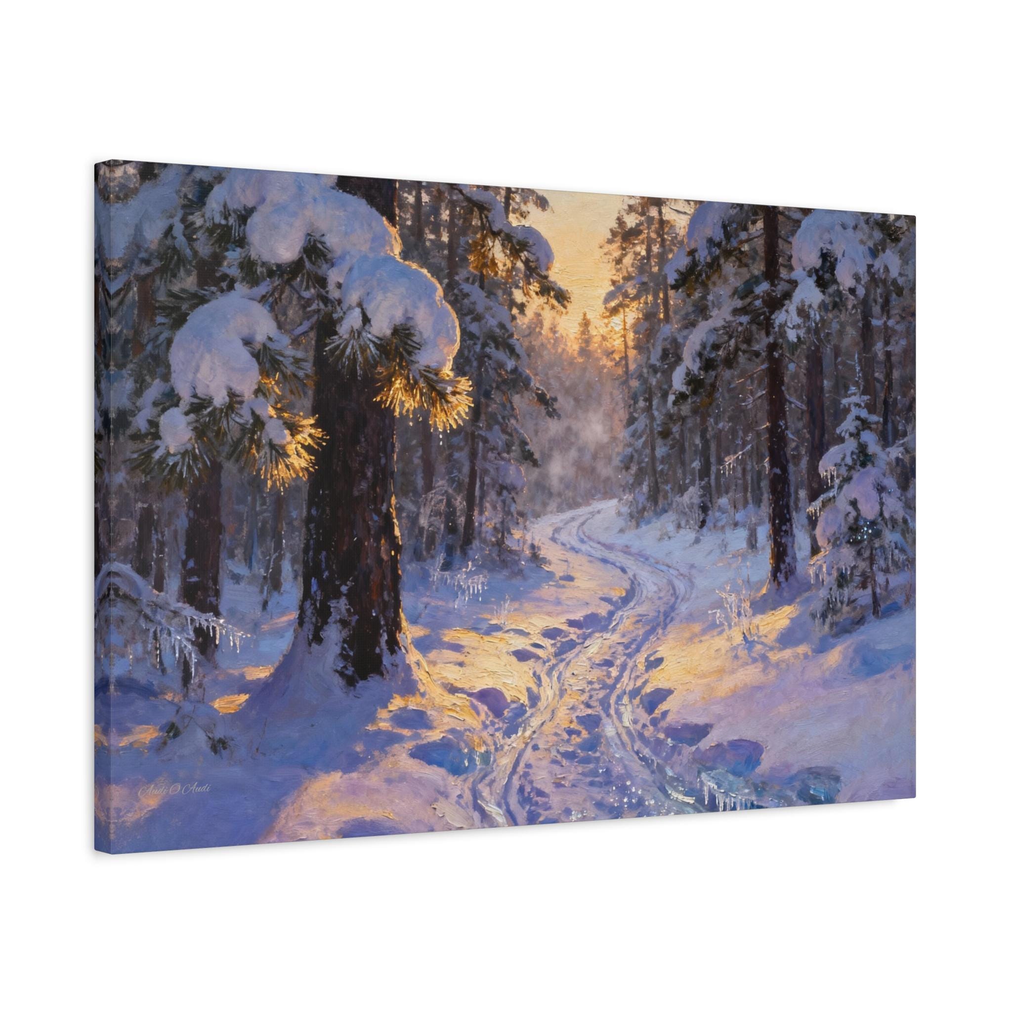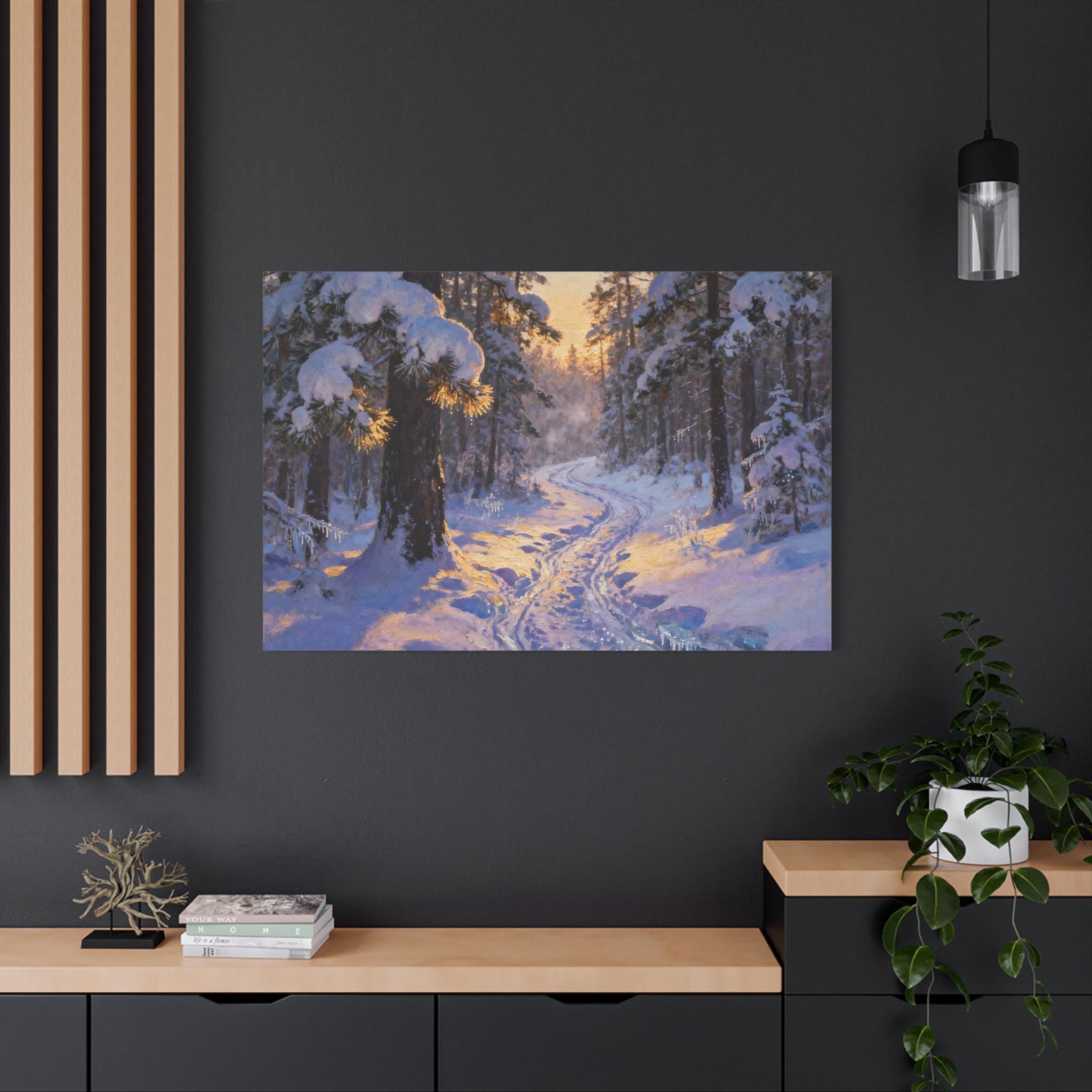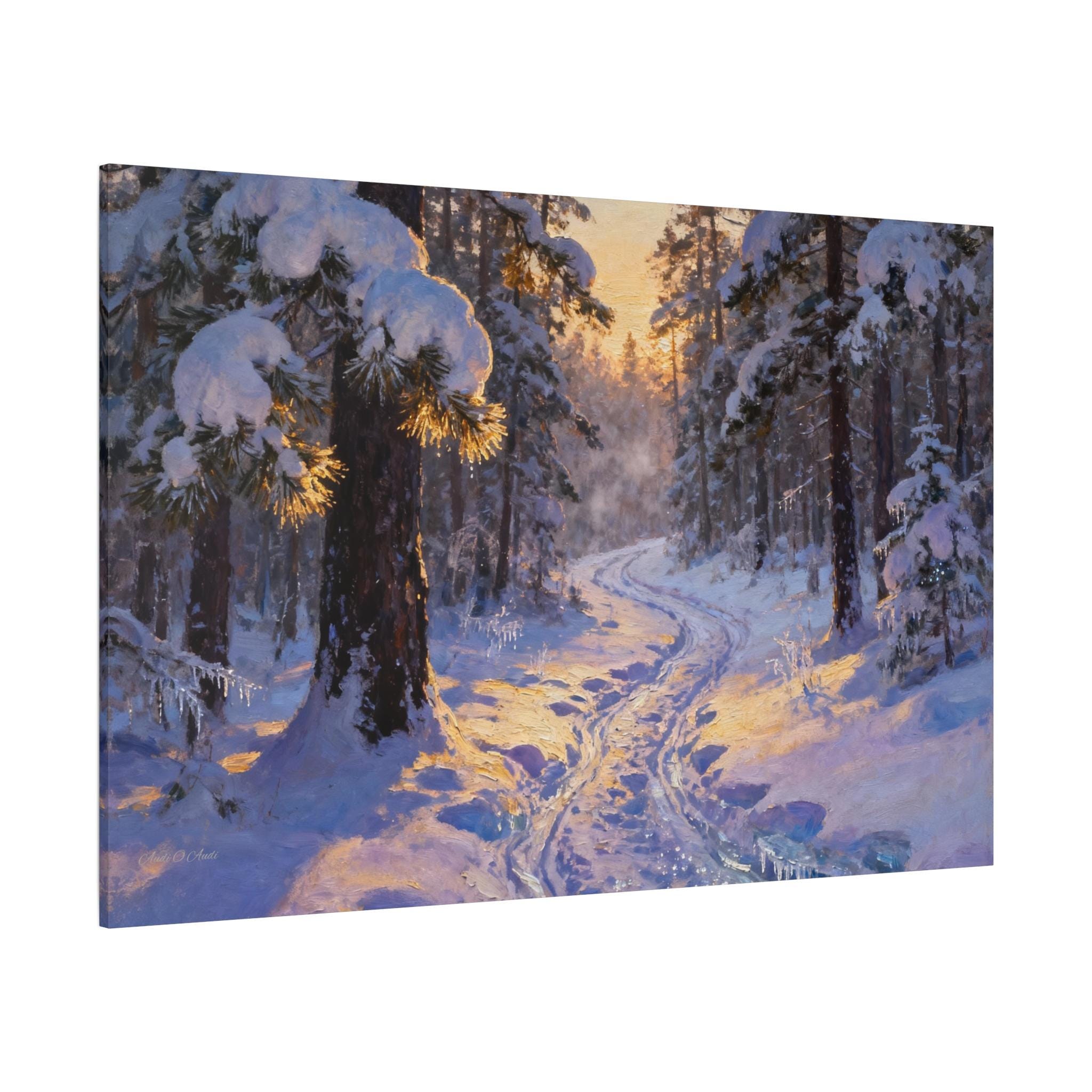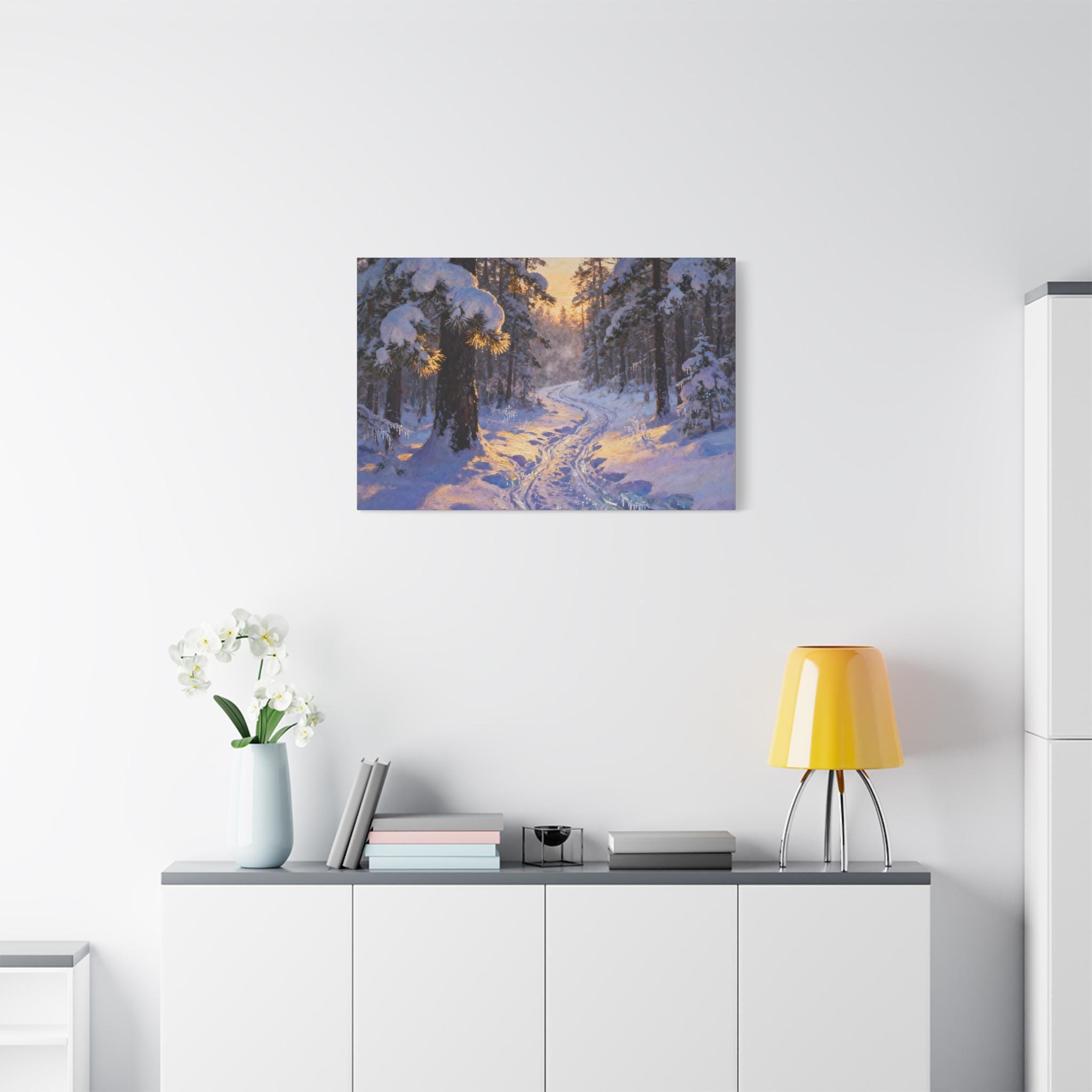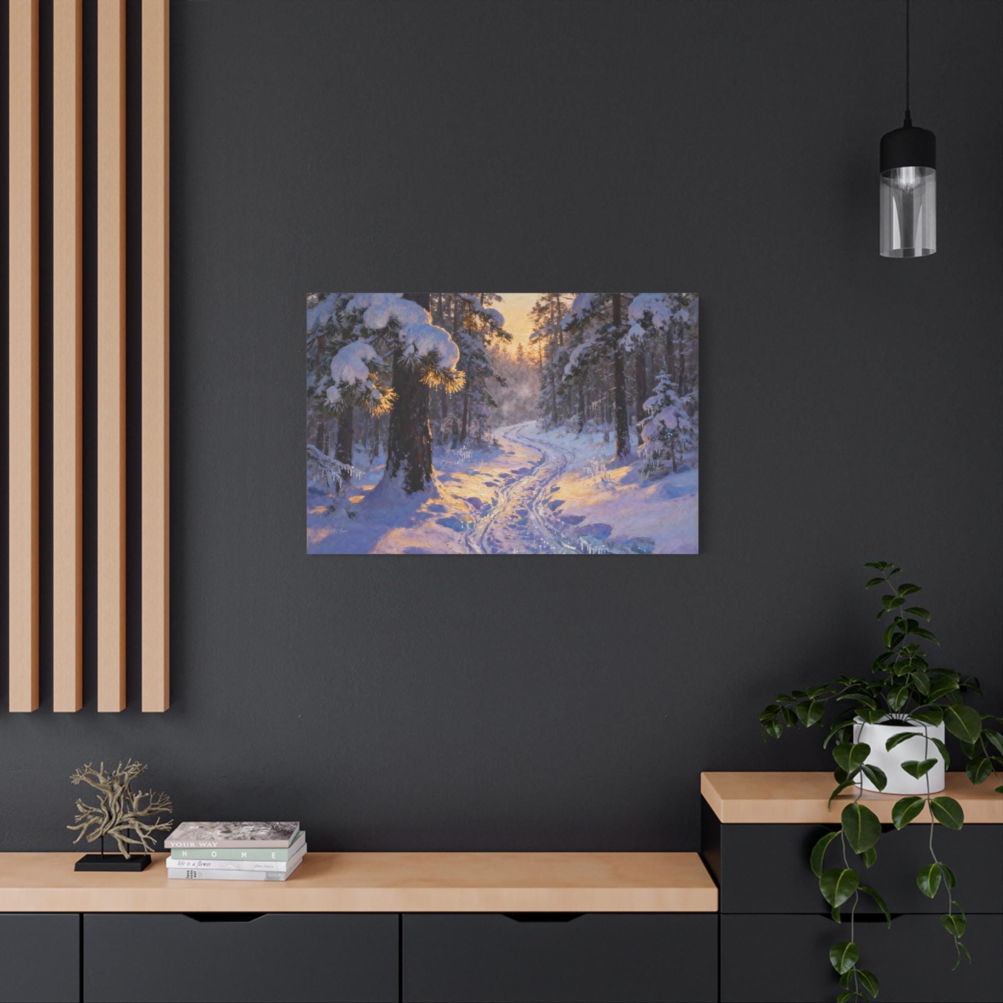 Frozen Forest Path, Forest Path Matte Canvas, Winter landscape Art, Rustic Home Decor, Country Living Art, Snowy Forest.