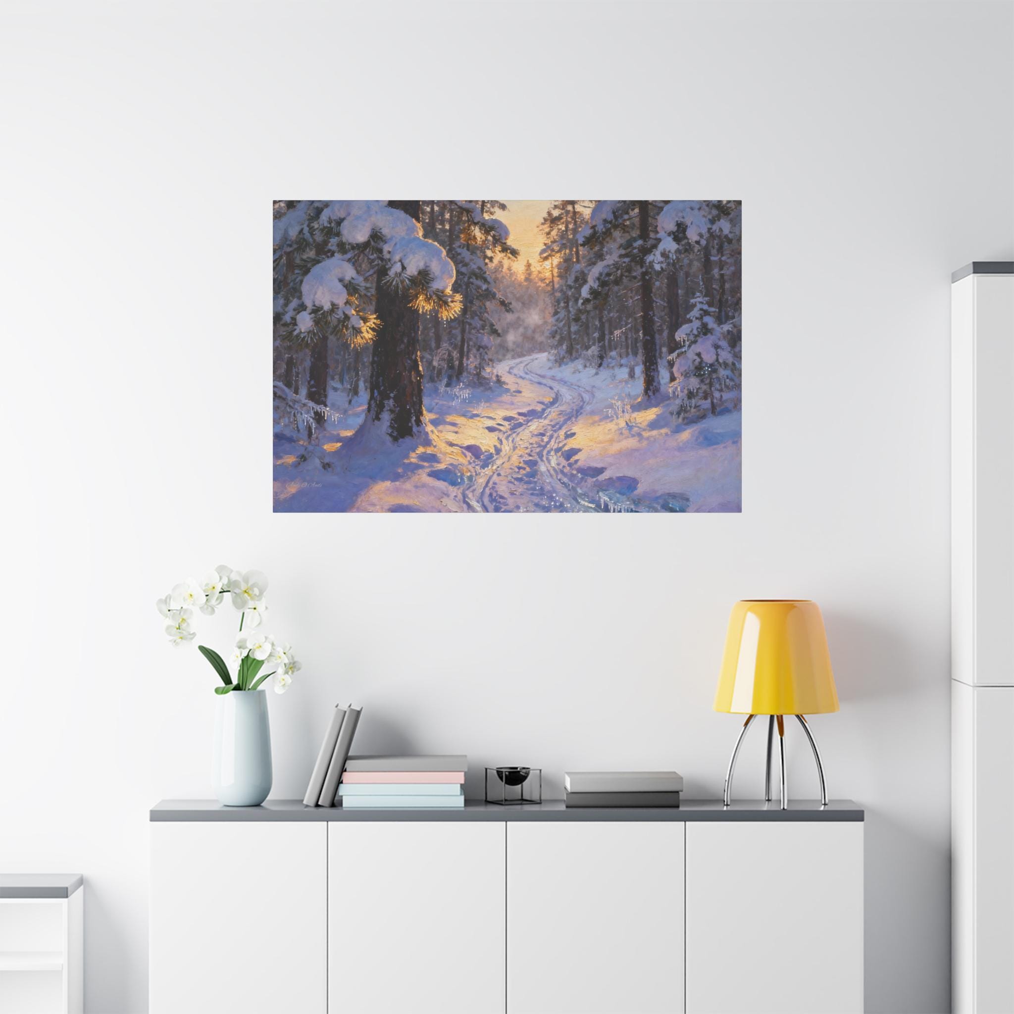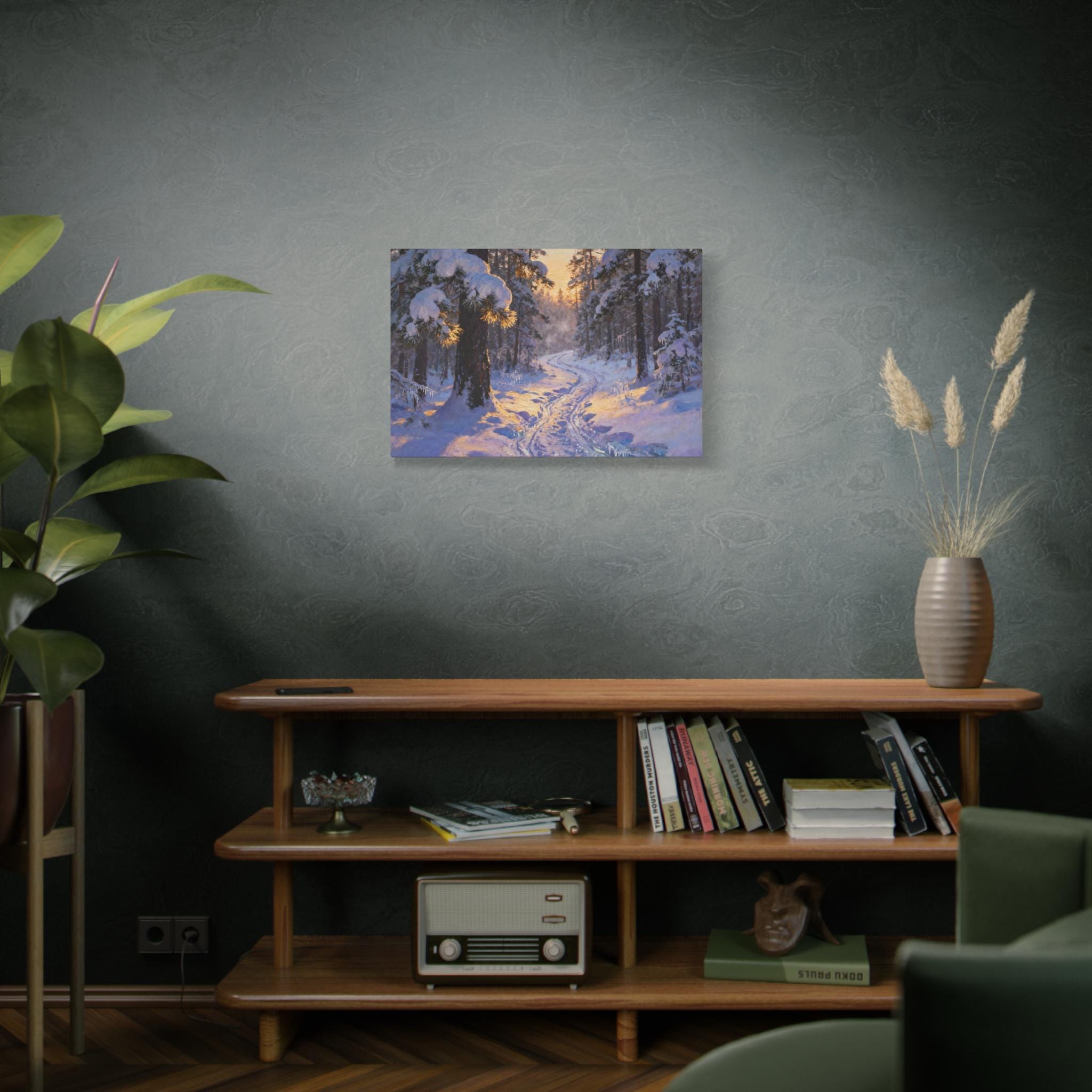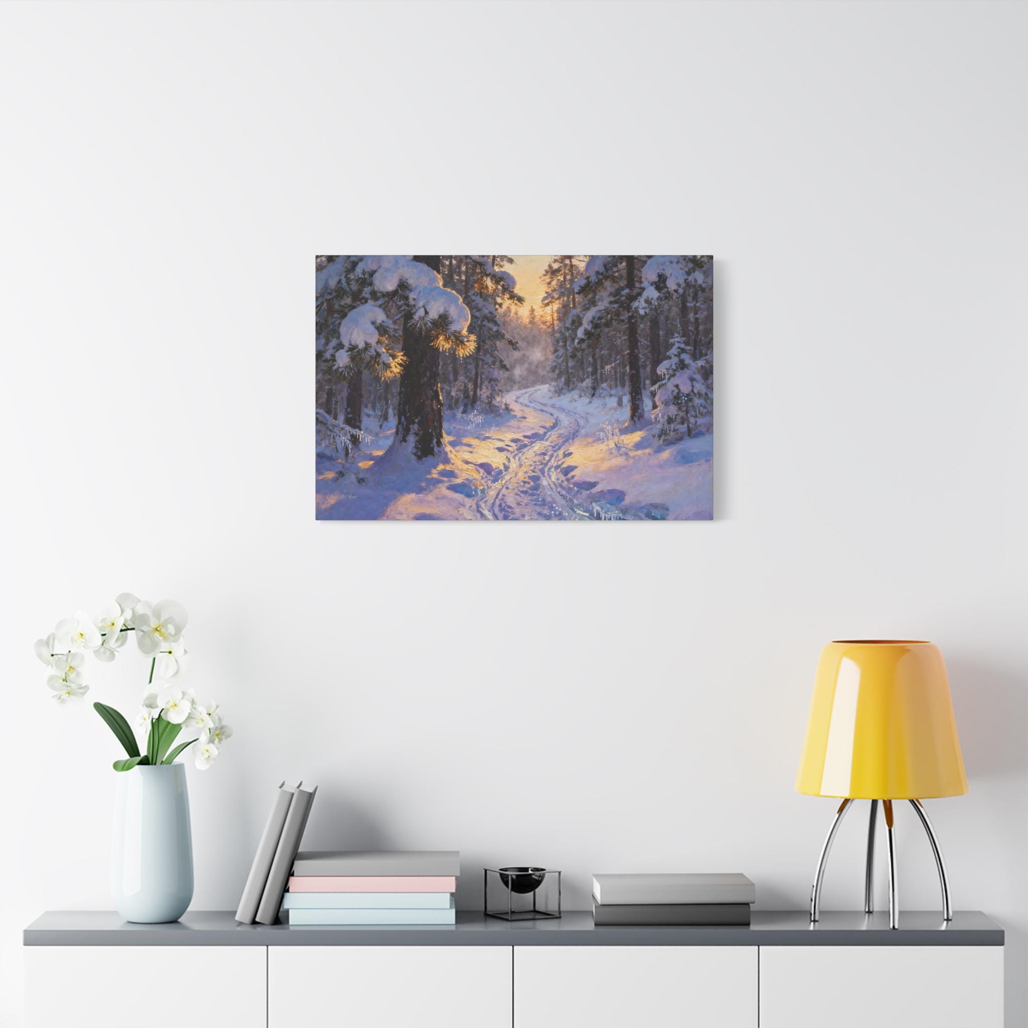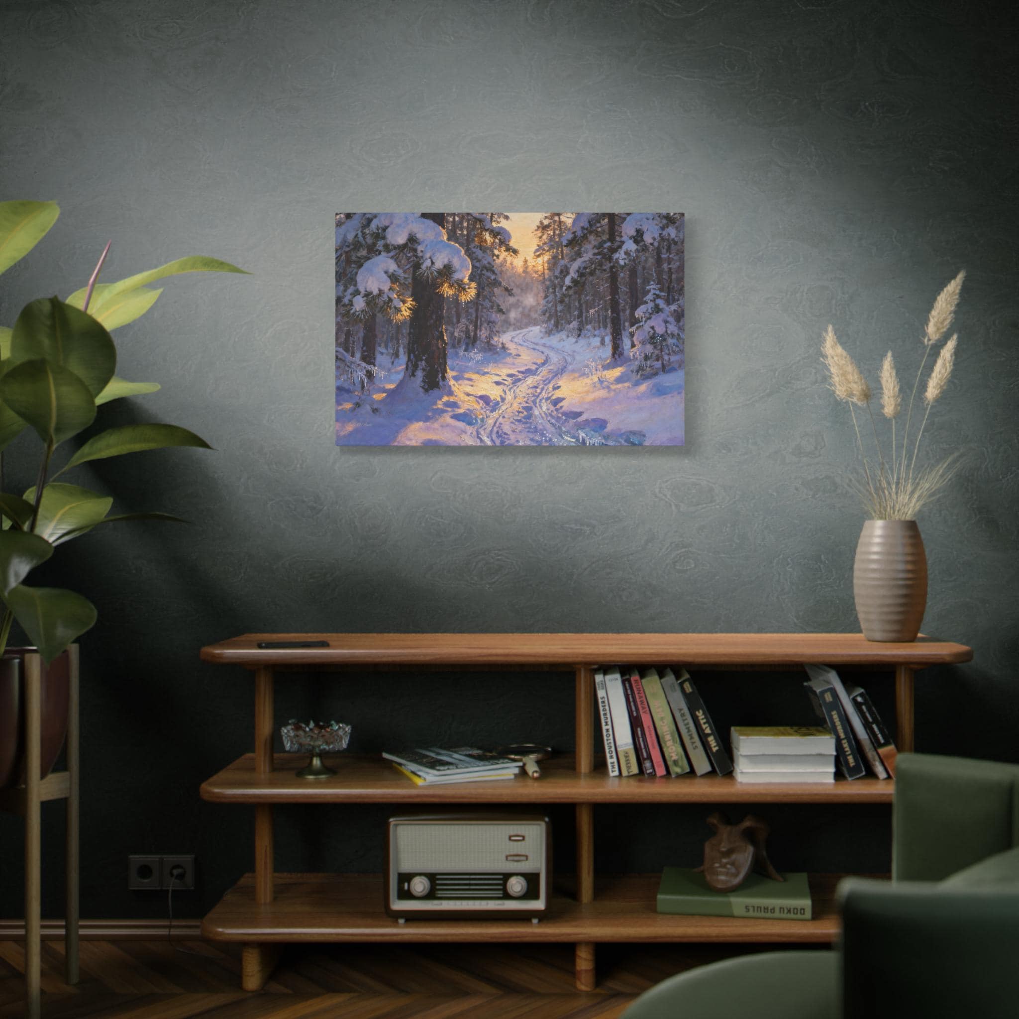 Frozen Forest Path, Forest Path Matte Canvas, Winter landscape Art, Rustic Home Decor, Country Living Art, Snowy Forest.
