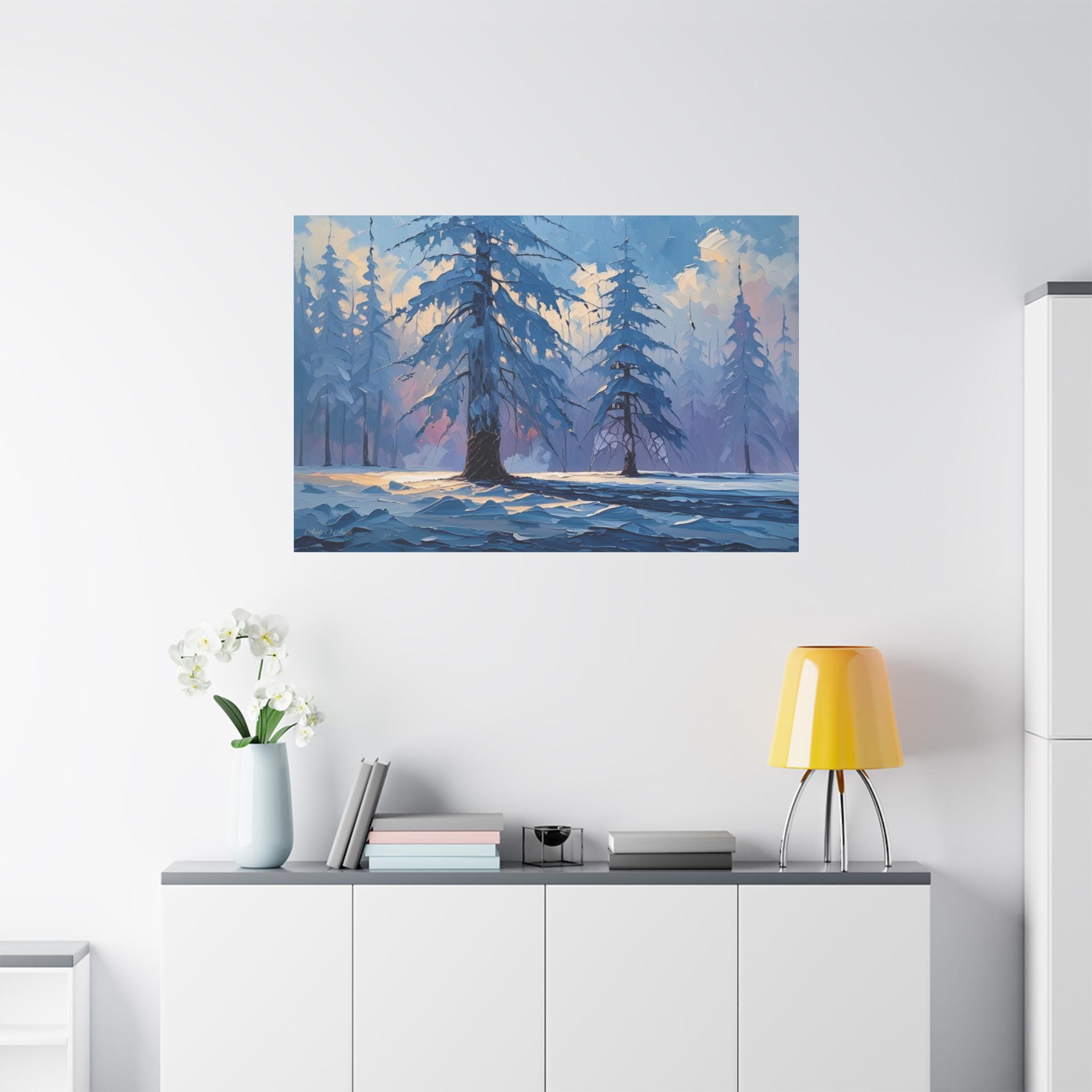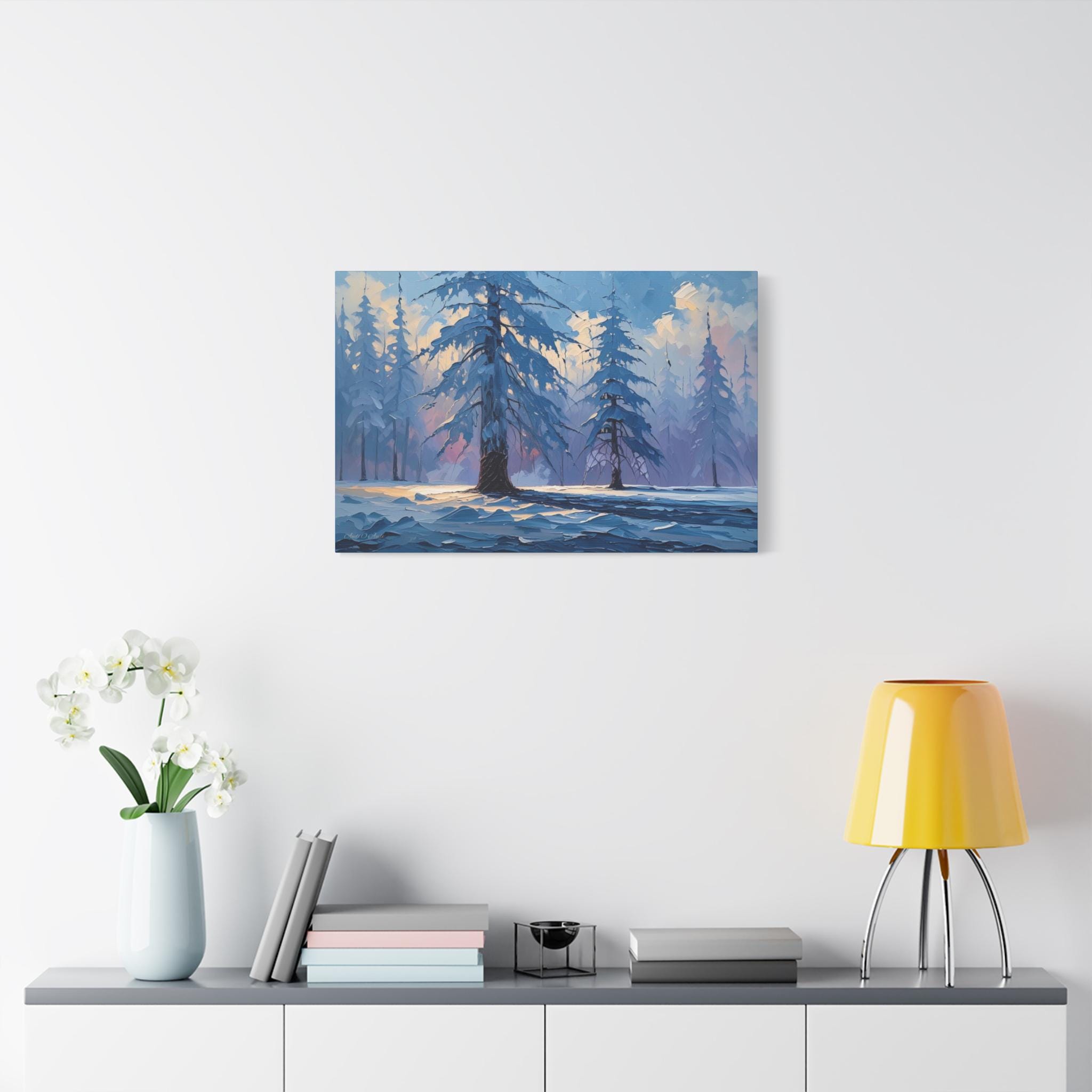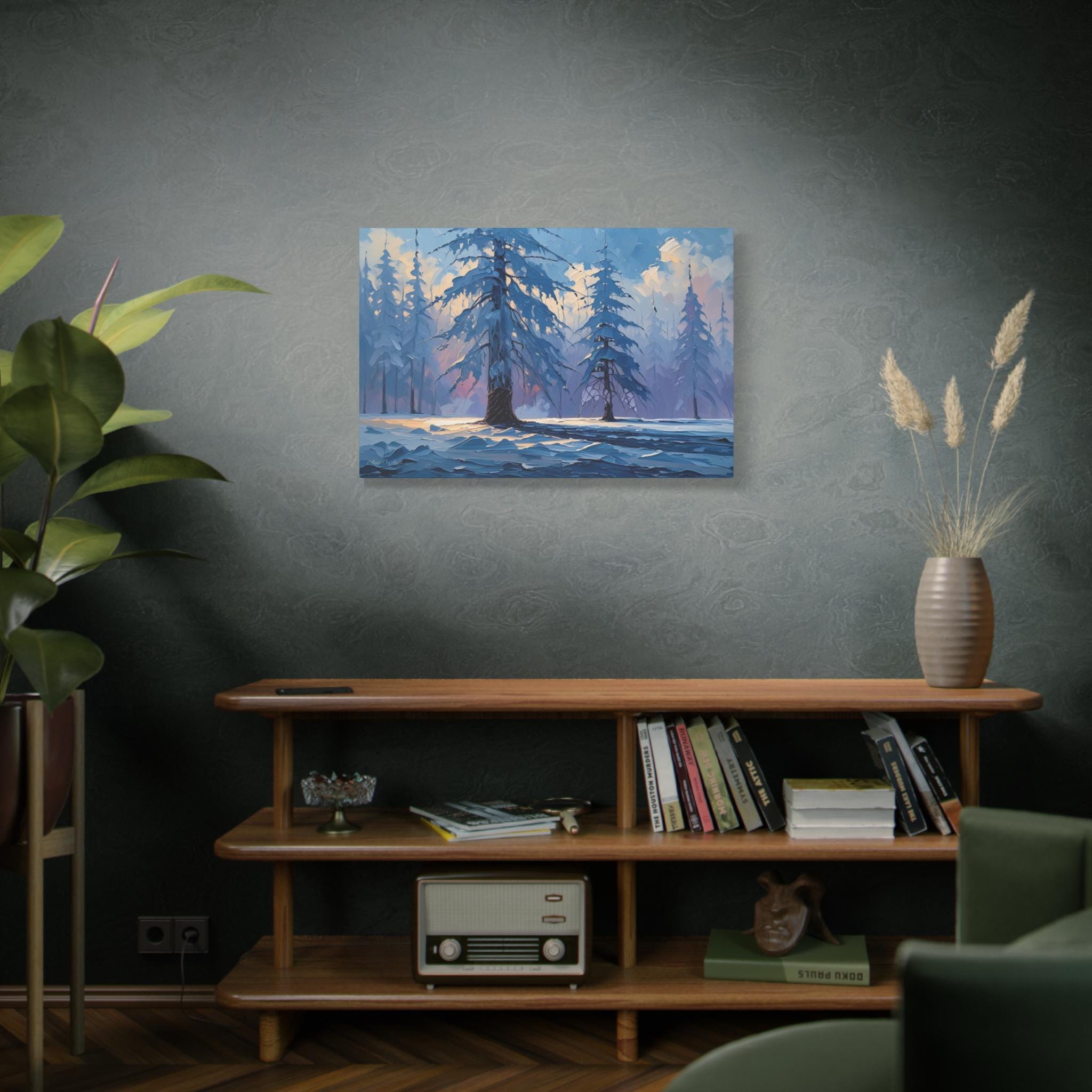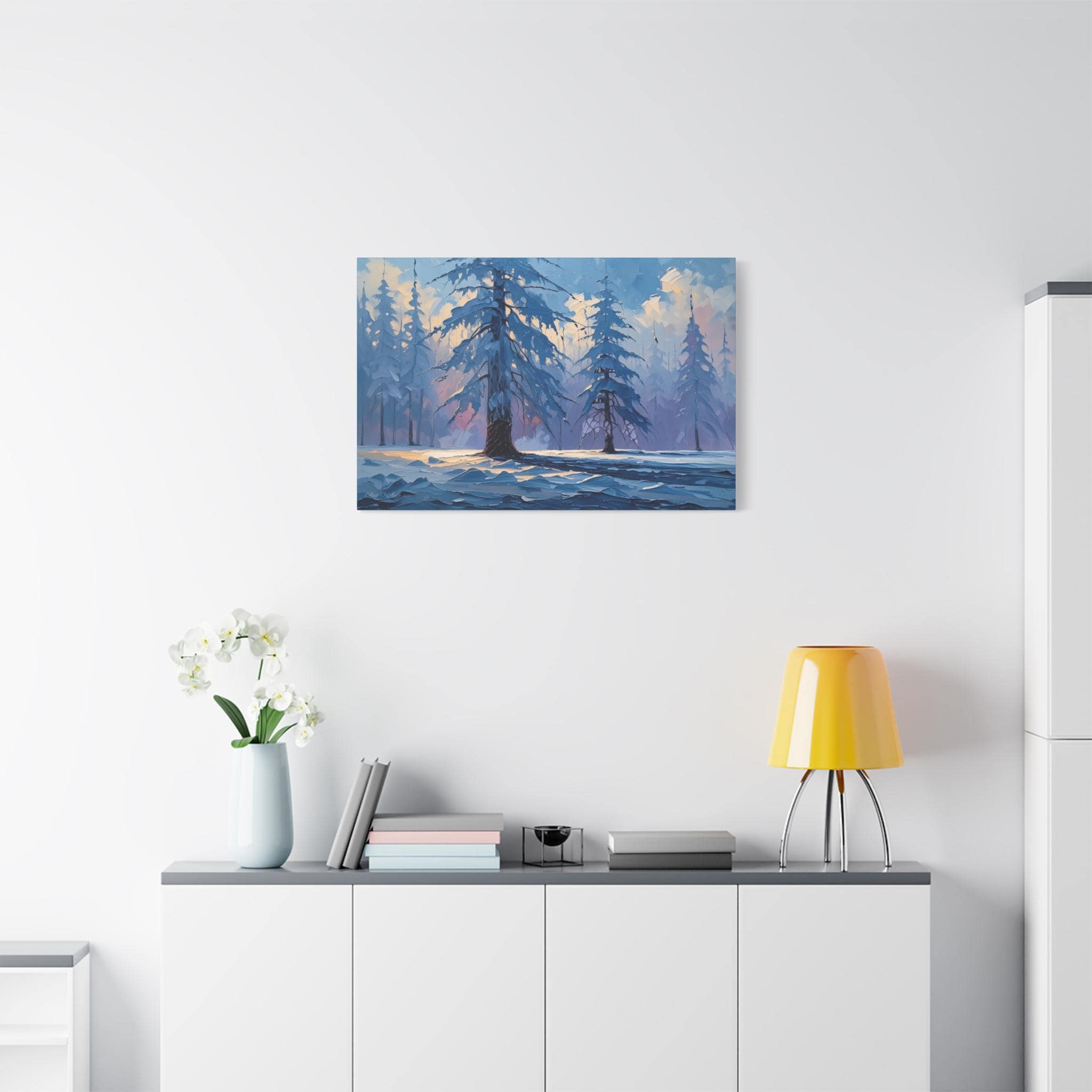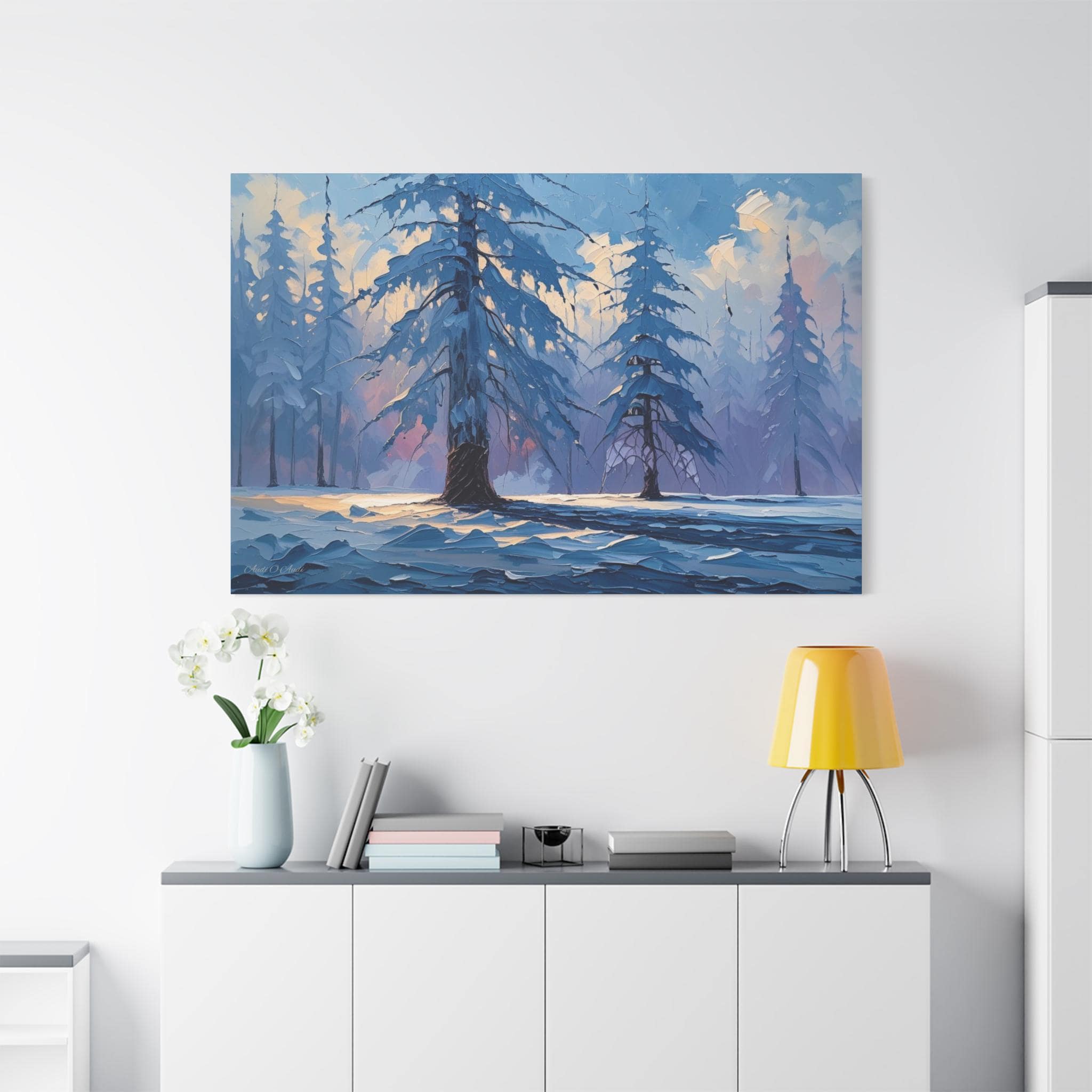 Solitude in Cobalt, Snowy Pine Forest Matte Canvas Print, Forest Art, Pine Trees, Nature Decor, Winter Decor, Calming Art, Holiday Gift.