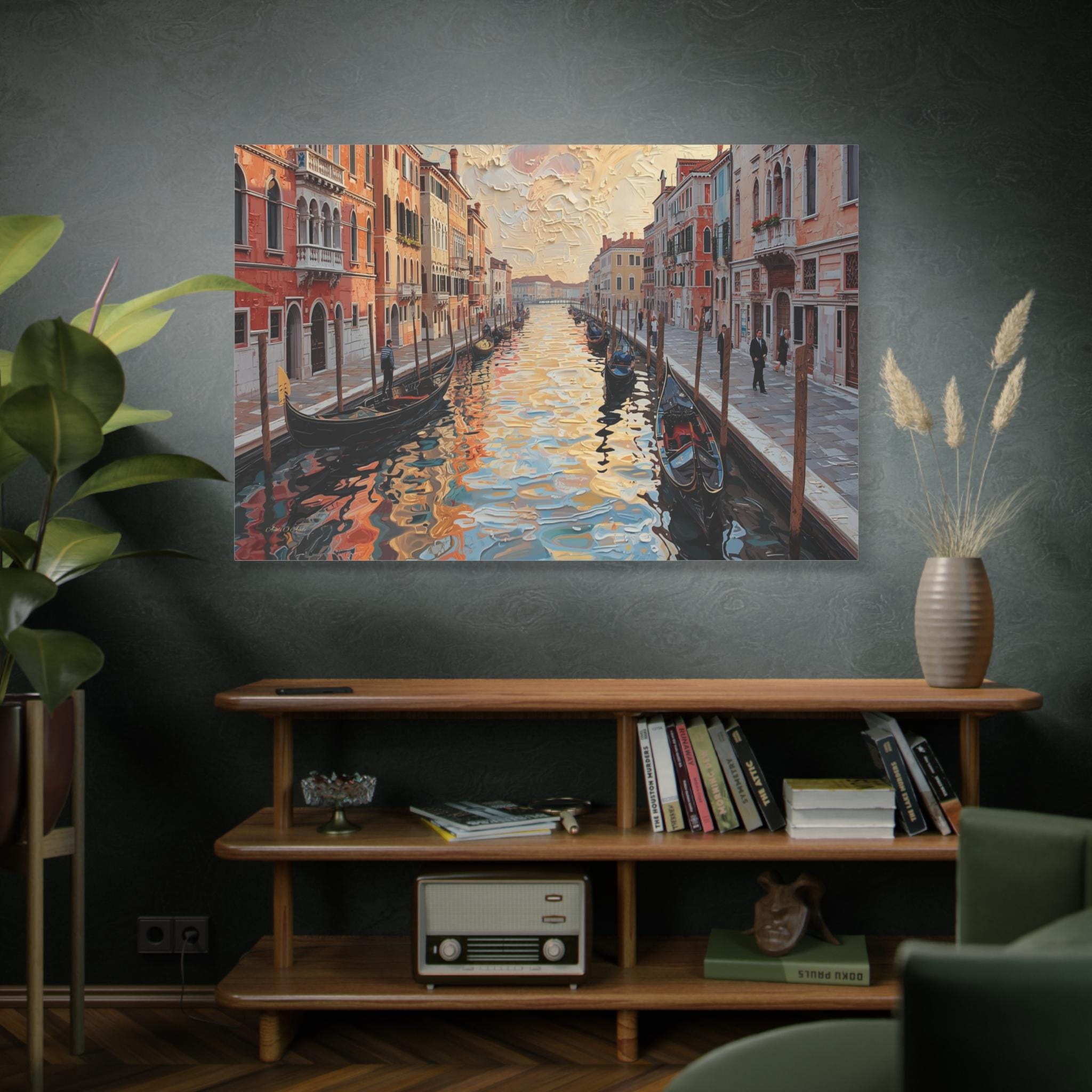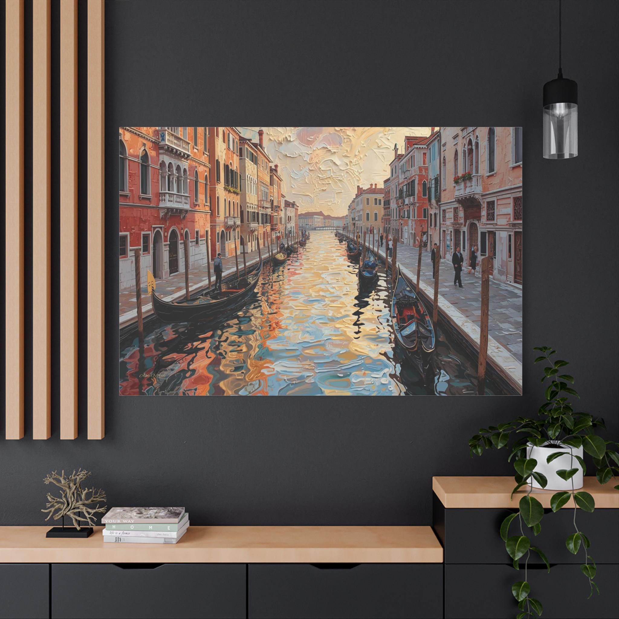 Venetian Impasto, Canal Painting Canvas Print, Venice Canvas, Living Room Art, European Decor, Romantic Wall Art, Cozy Wall Decor.