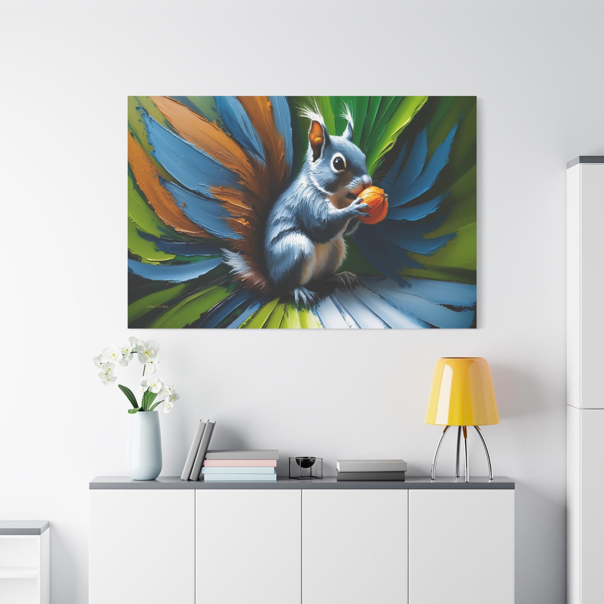 Nutty Impasto, Squirrel Eating Nut Matte Canvas, Kids Room, Nursery Decor, Playful Decor, Gift for Kids, Forest Nursery, Whimsical Art.