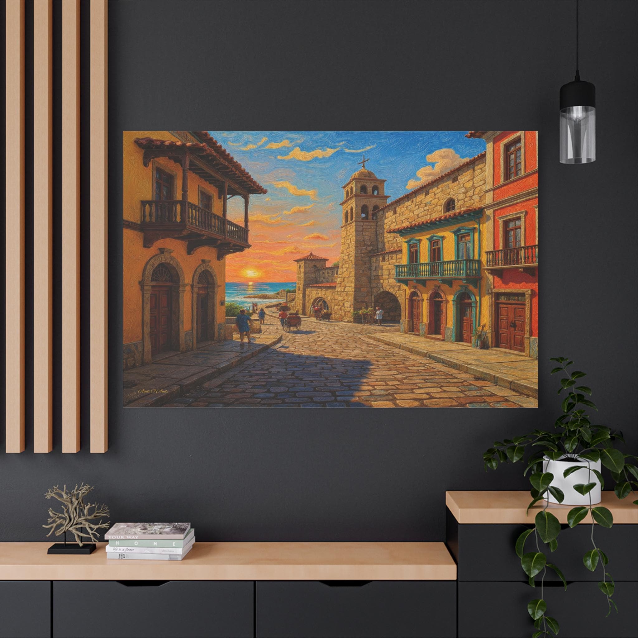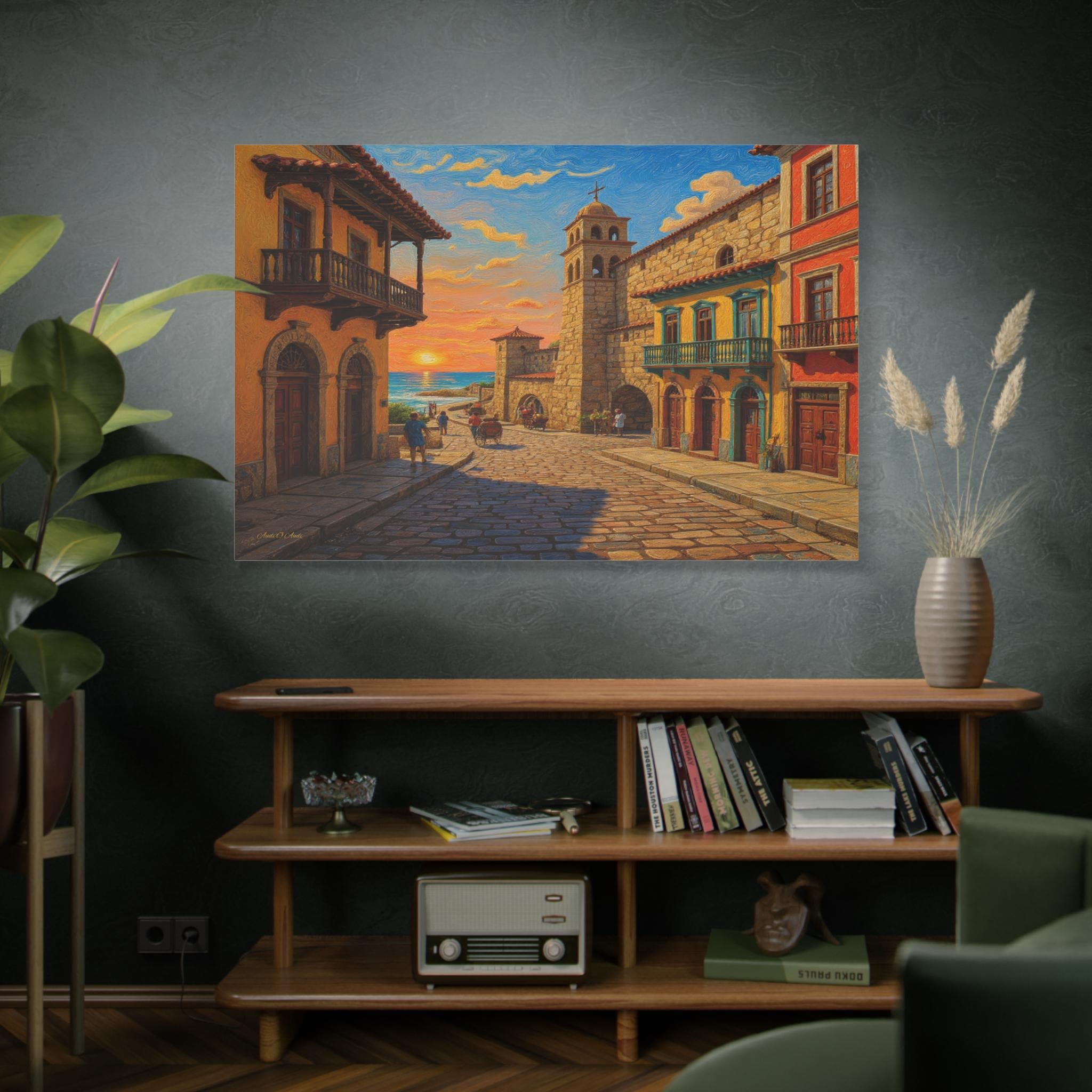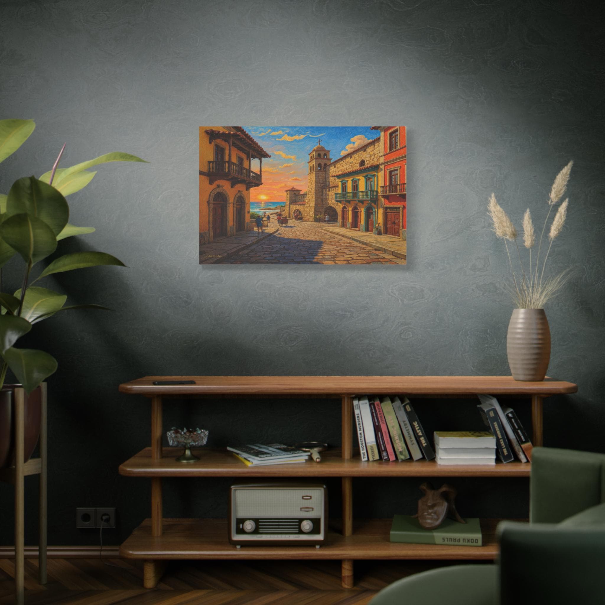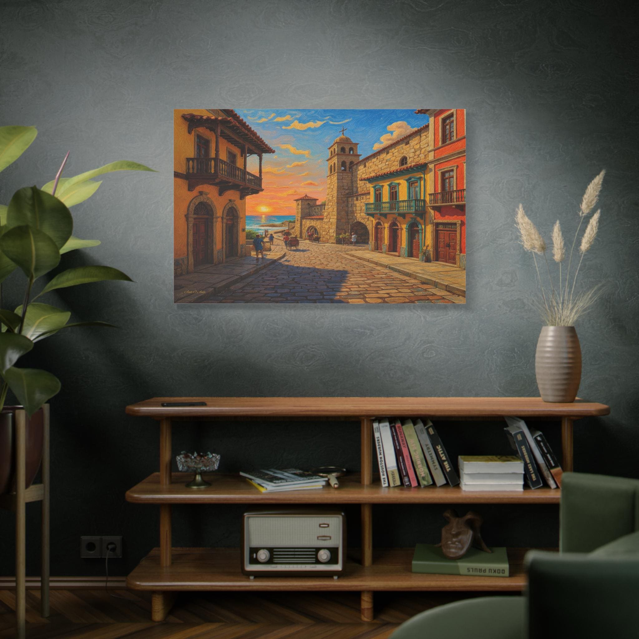 Old City Glow, Sunset Coastal Town Street Canvas Print, Sunset Art, Coastal Decor, Living Room Decor, Home/Office Decor.