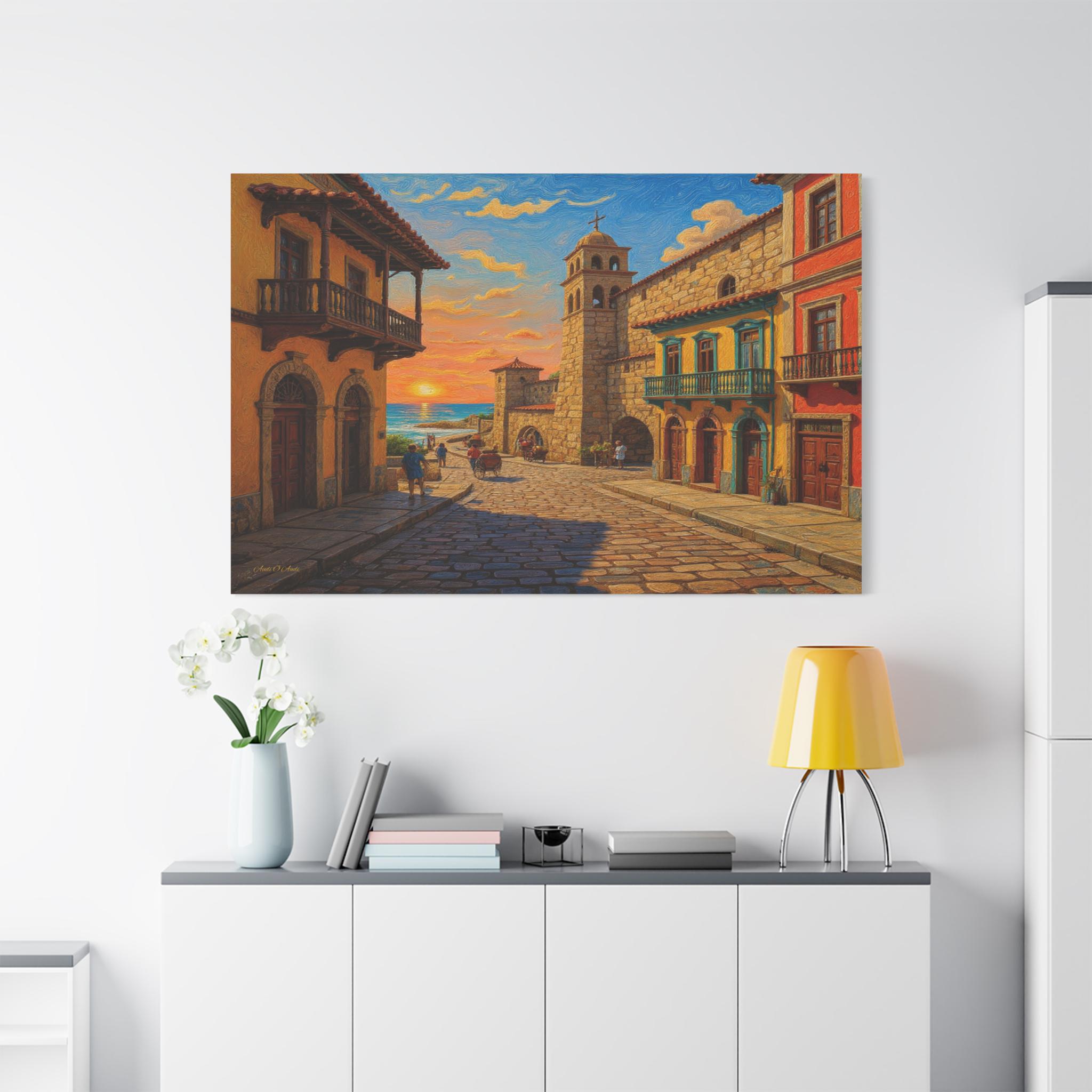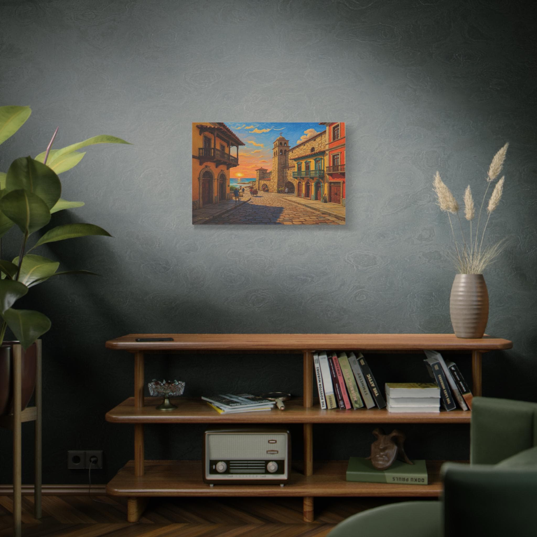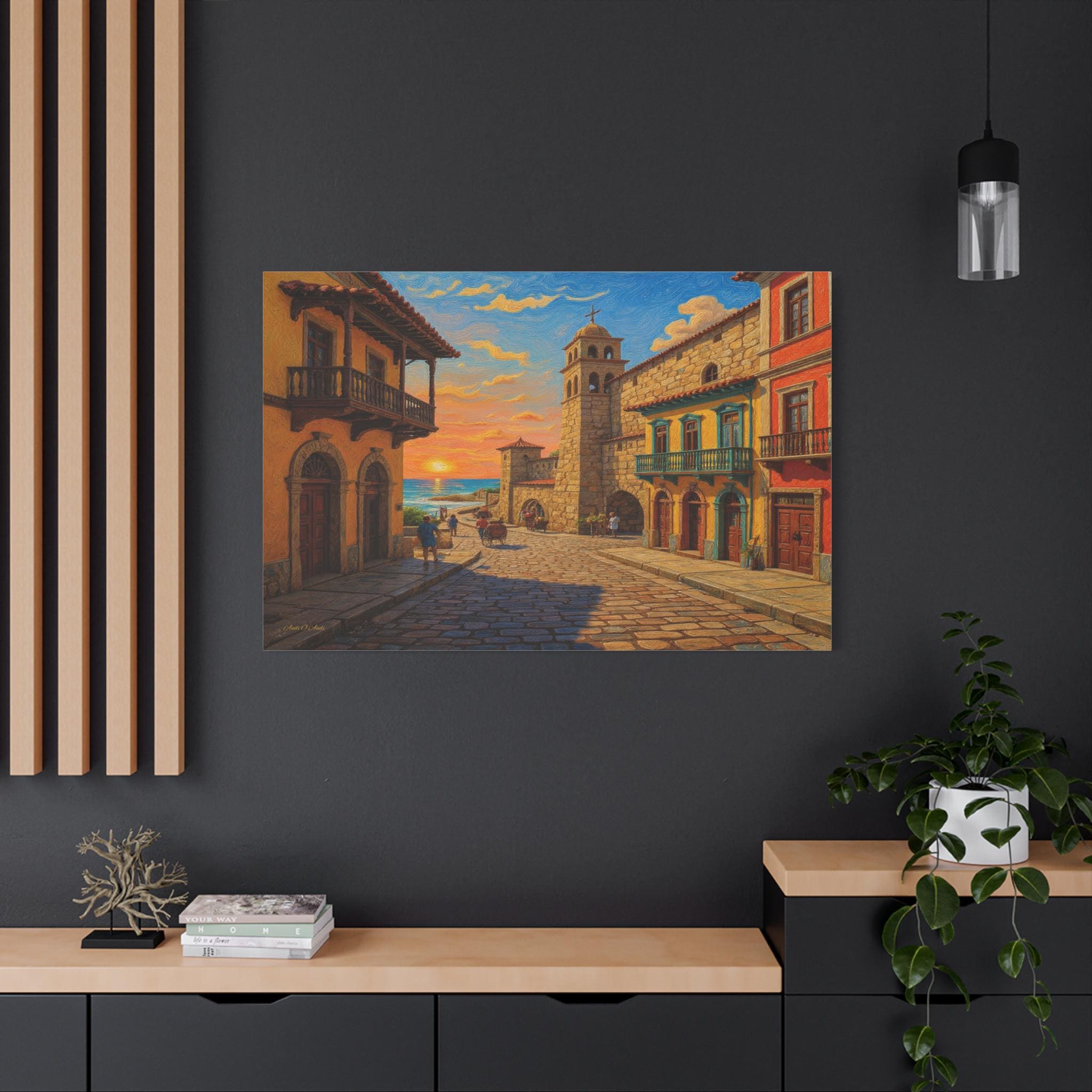 Old City Glow, Sunset Coastal Town Street Canvas Print, Sunset Art, Coastal Decor, Living Room Decor, Home/Office Decor.