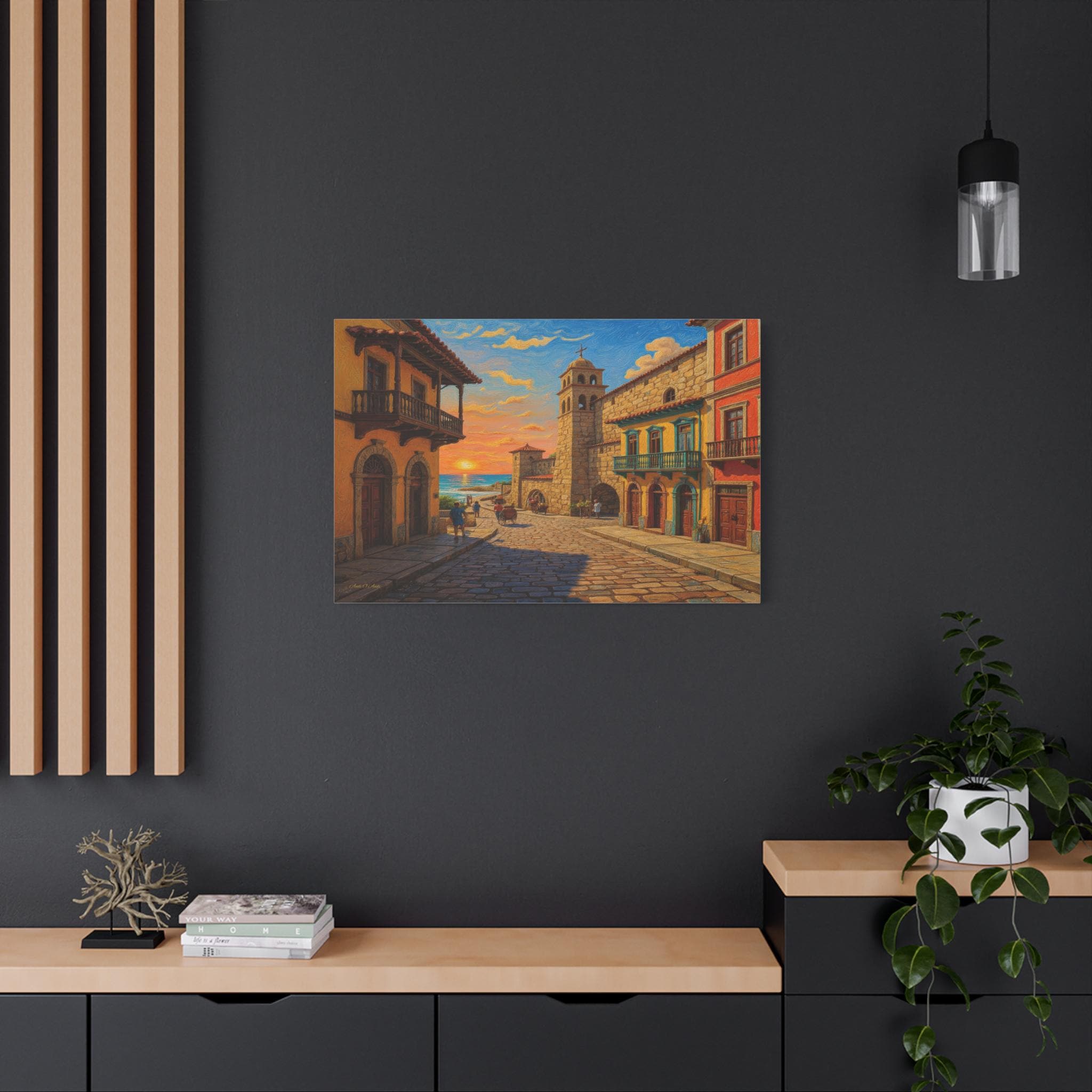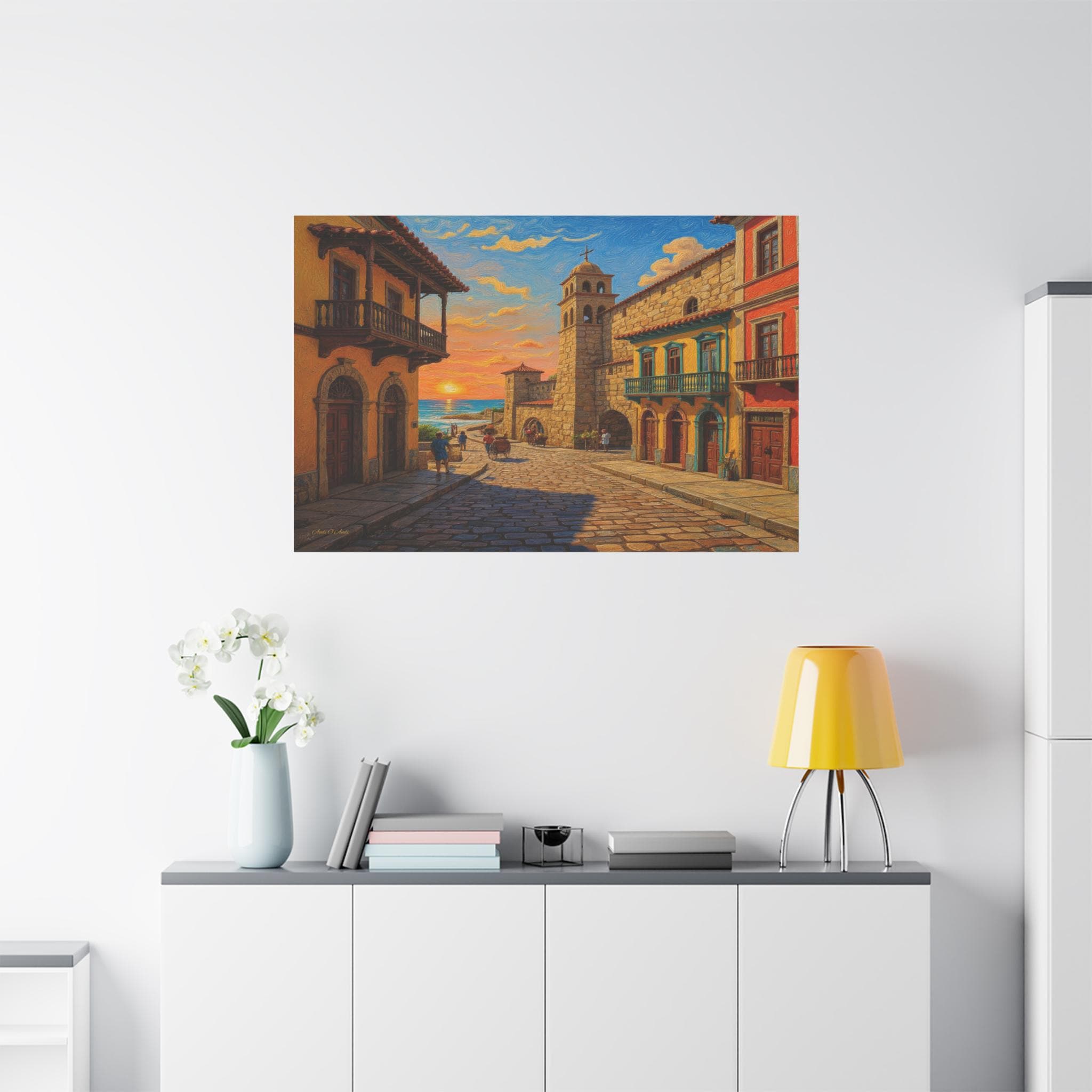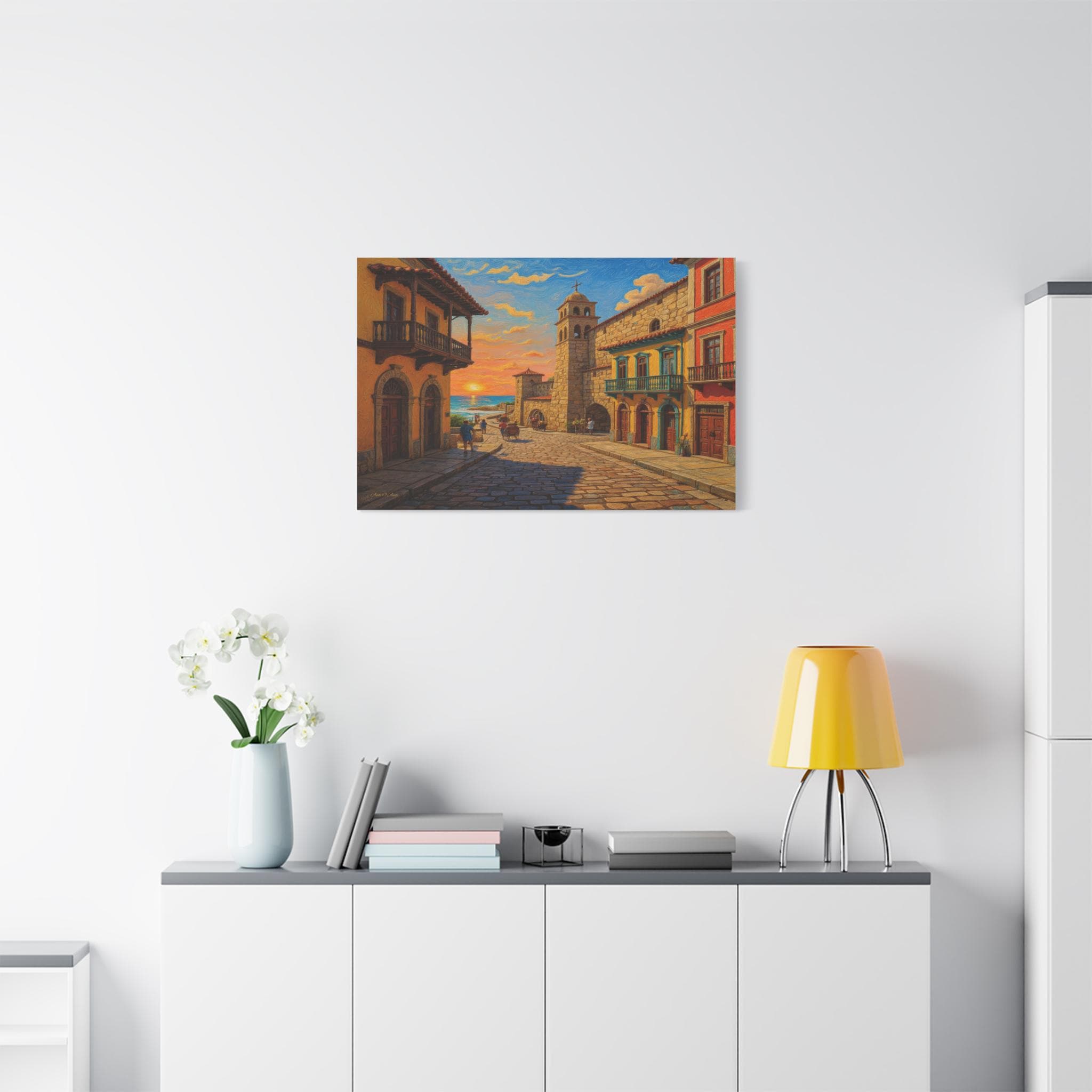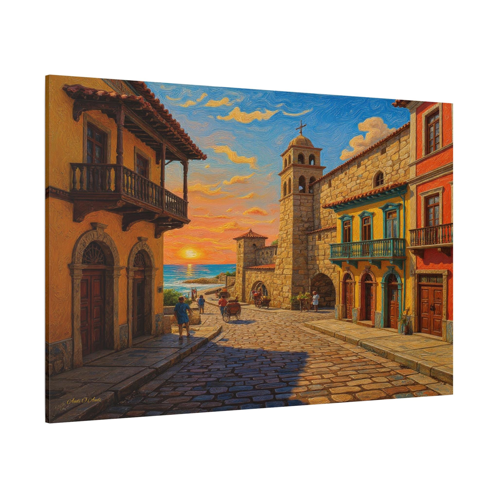 Old City Glow, Sunset Coastal Town Street Canvas Print, Sunset Art, Coastal Decor, Living Room Decor, Home/Office Decor.