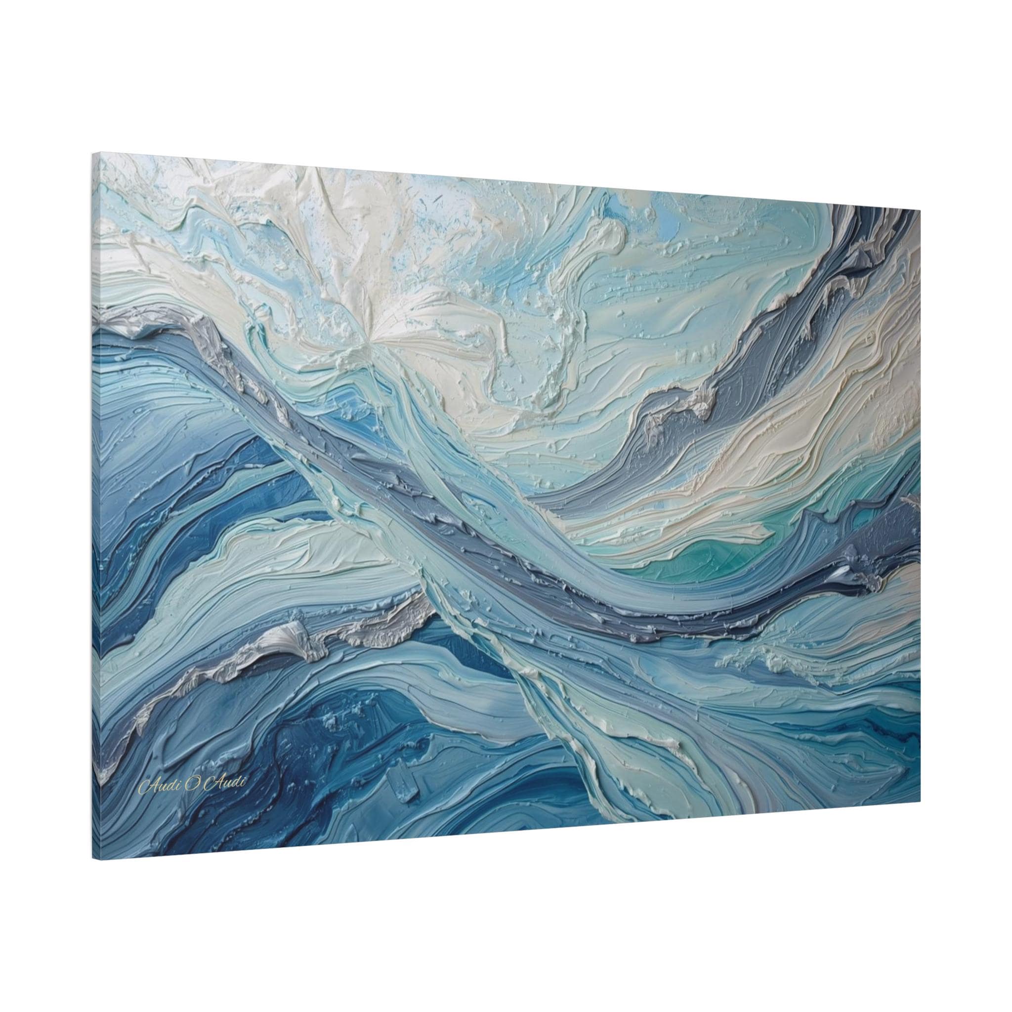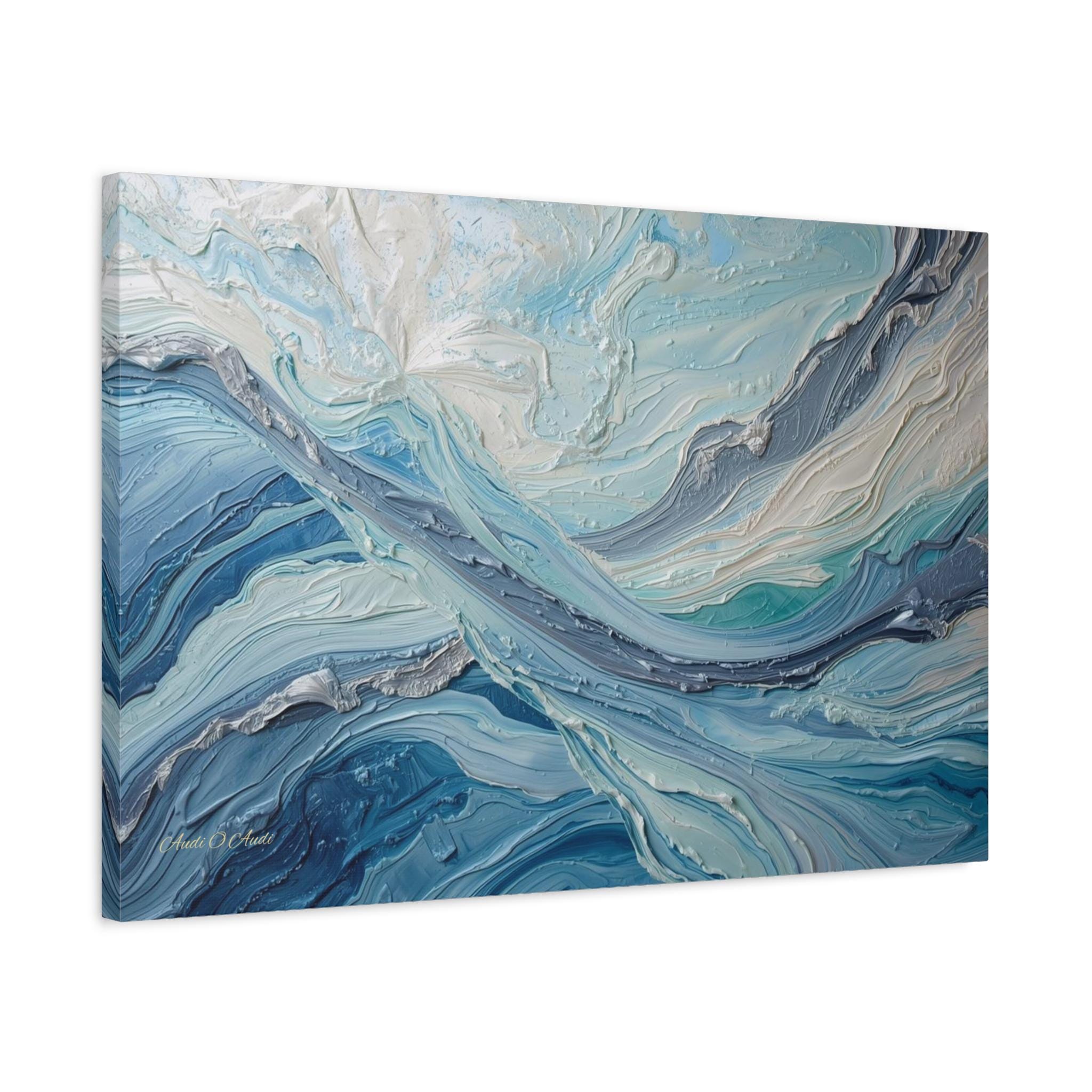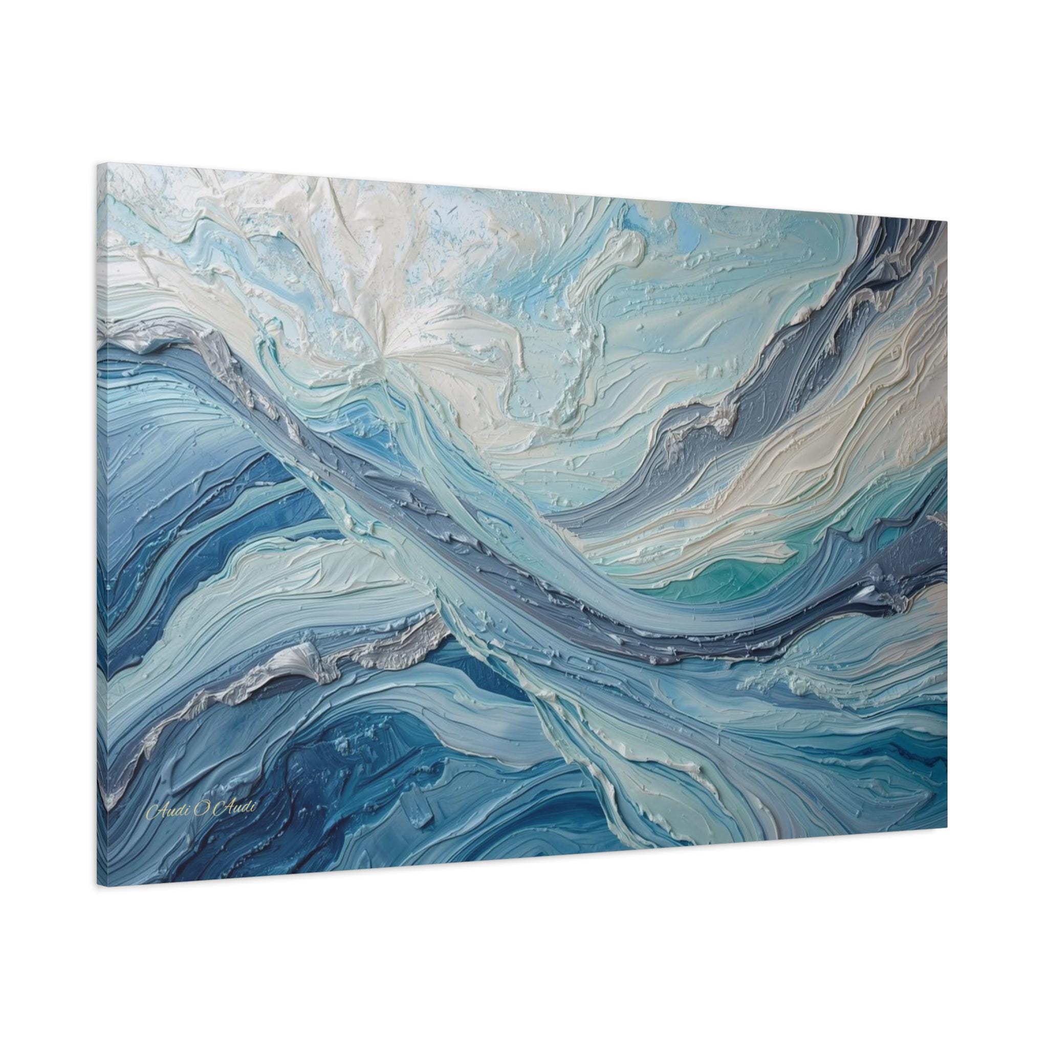 Immerse your space in the cool serenity and powerful flow of "Arctic Currents." This stunning abstract canvas print captures the dynamic movement of water, ice, or wind, rendered with breathtaking texture that compels the viewer to reach out and touch the surface.