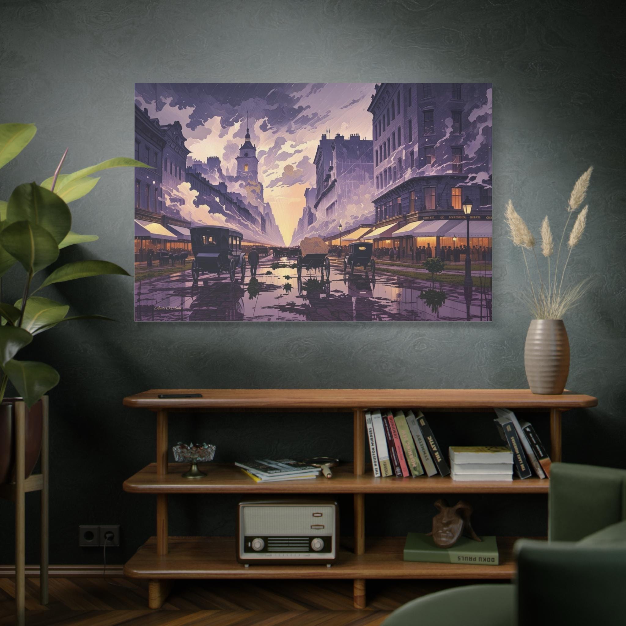 This piece is a powerful statement for fans of Victorian or Edwardian aesthetics, dramatic urban landscapes, dark academia, or unique color palettes. It is an incredible focal point for any room.