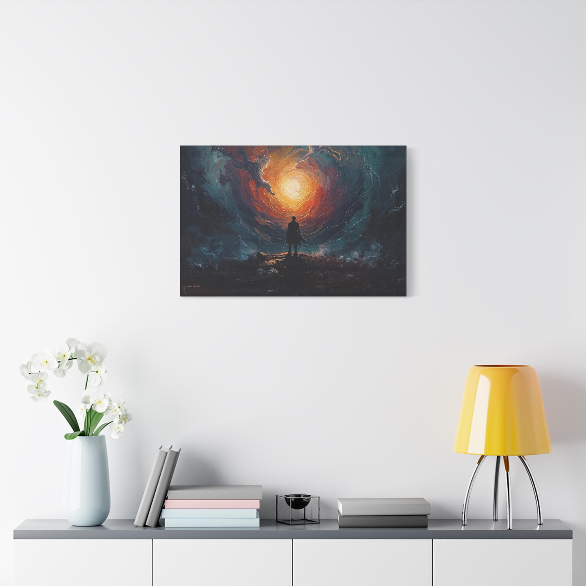 Premium Giclée Print: Crafted with high-quality archival inks on artist-grade canvas, ensuring the luminous glow of the vortex and the deep shadows of the foreground are captured with perfect fidelity.