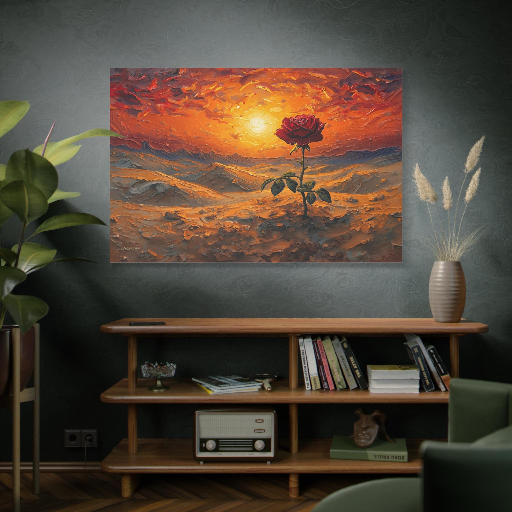 🌹 Desert Rose Sunset: Textured Red Flower Canvas Print