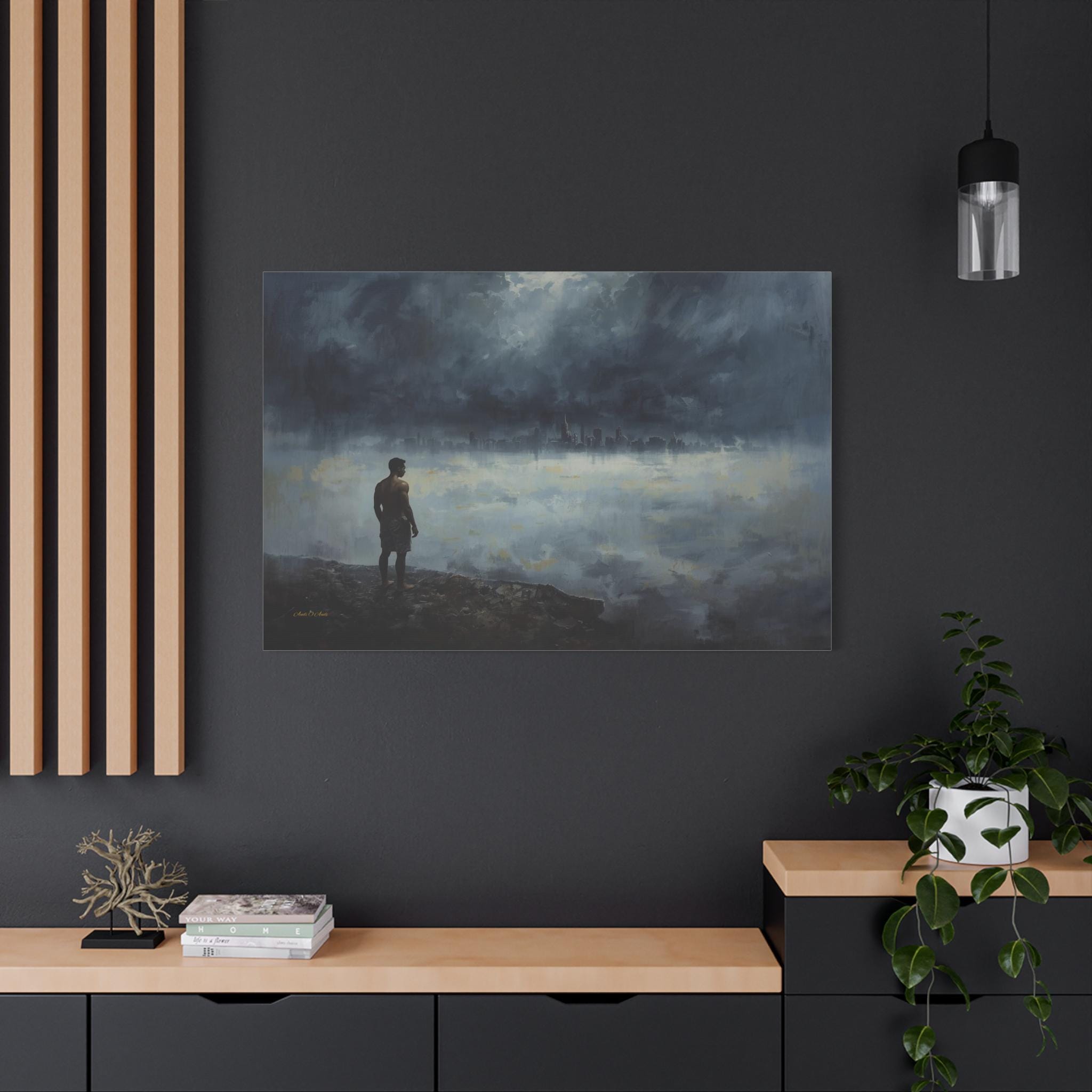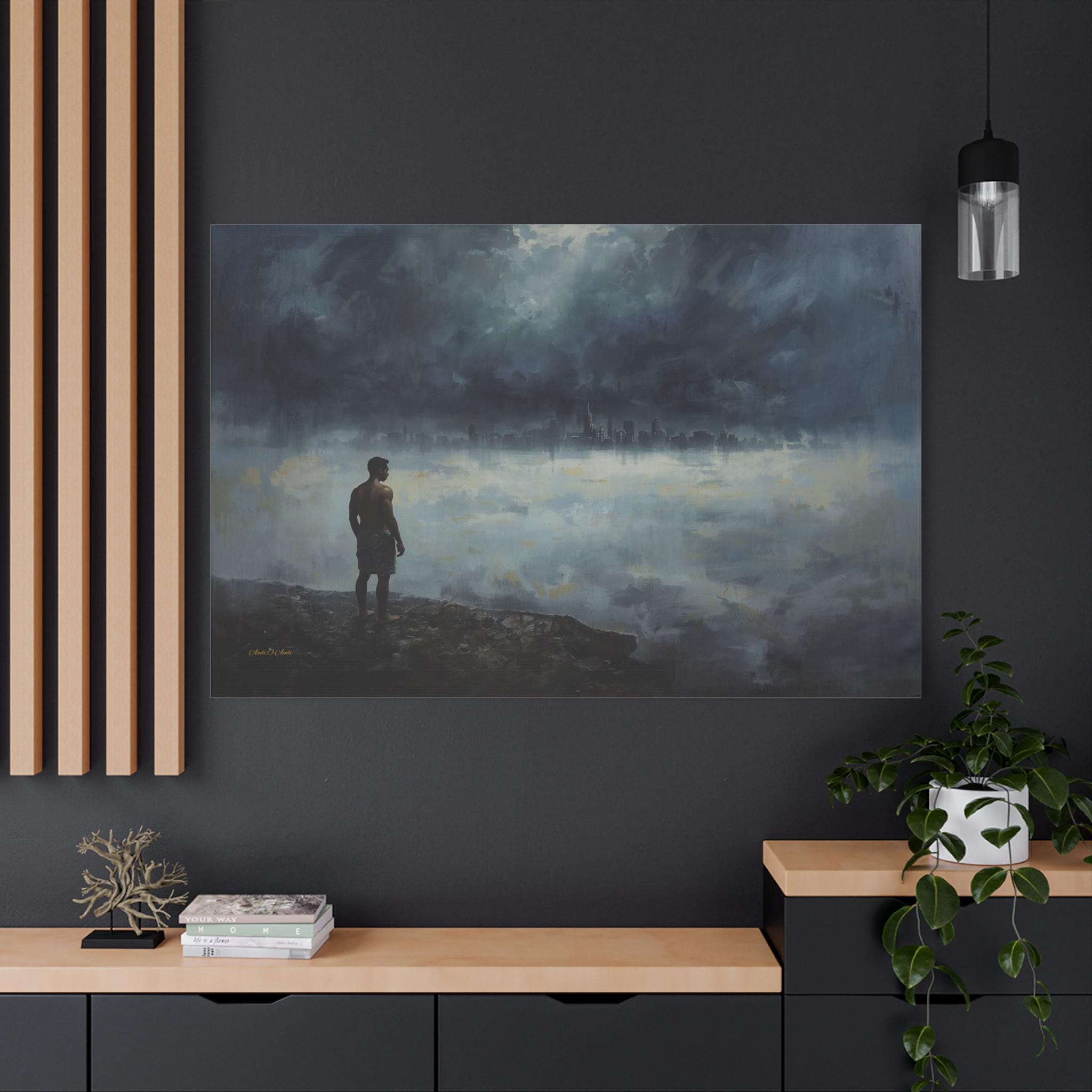 Add a touch of cinematic mystery to your space with this "Solitude in the Storm" Canvas Print.