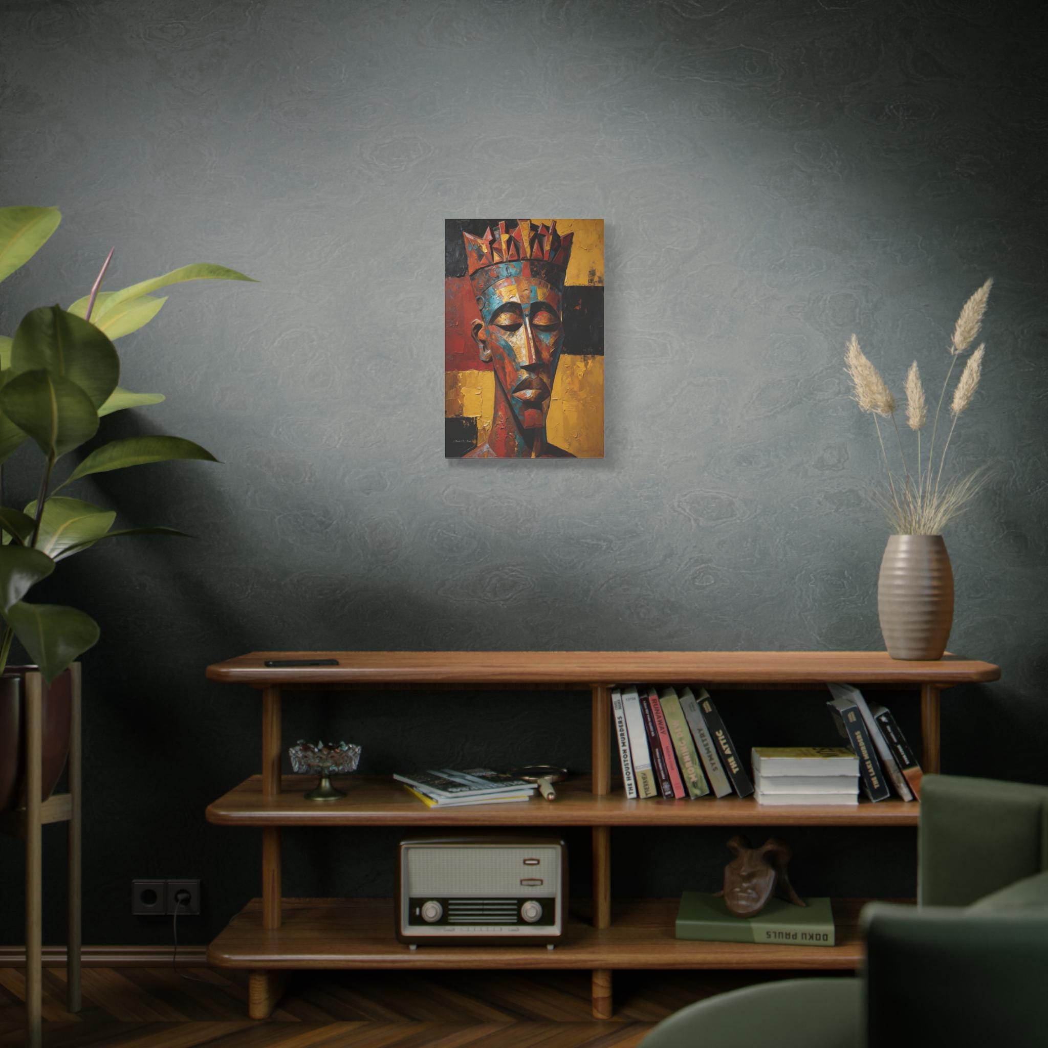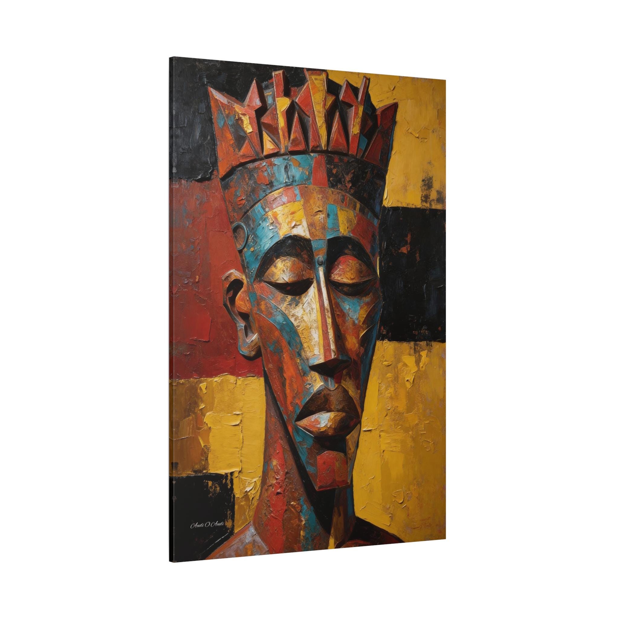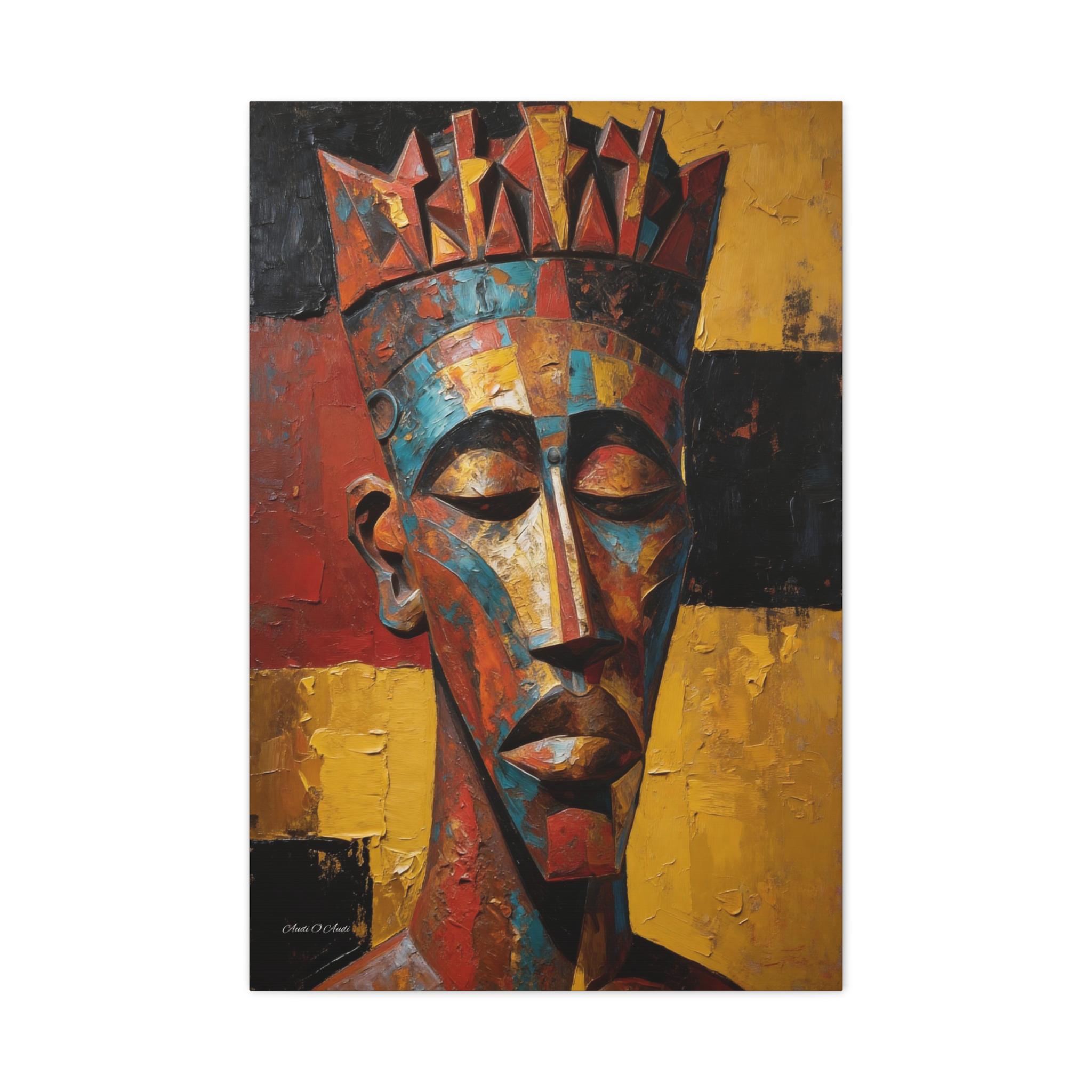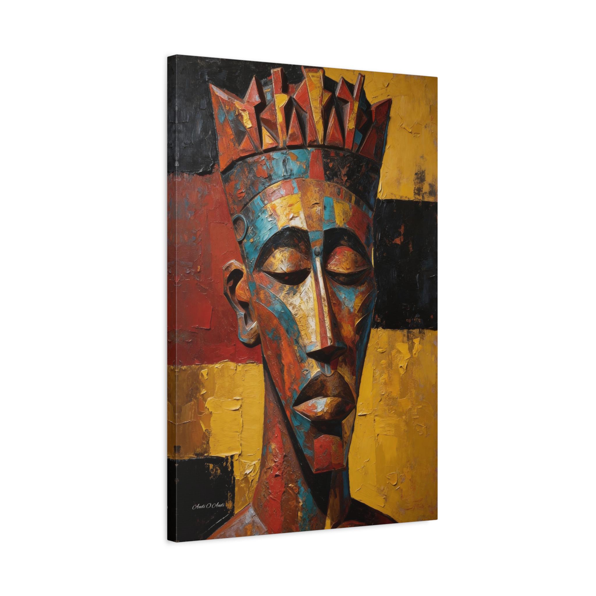 Bring regal elegance and bold culture to your walls with this striking abstract portrait. Featuring a stylized royal figure adorned with a geometric crown, this piece blends the look of traditional wood carving with vibrant modern impasto painting techniques.