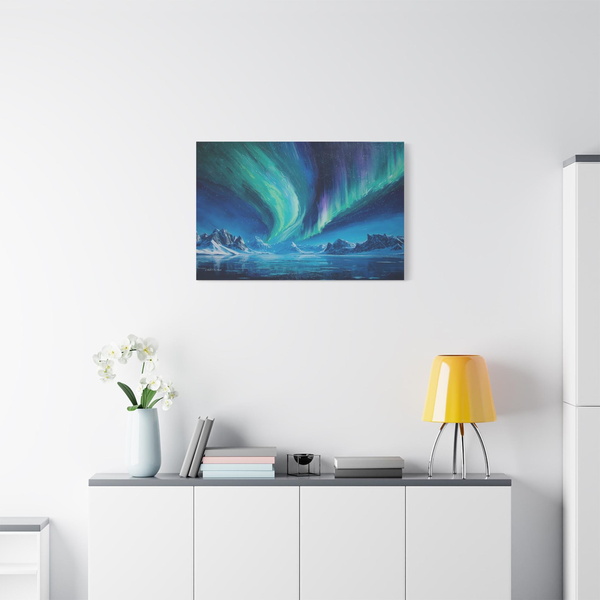 Textured Look: High-definition printing captures the "brushstrokes" of the dancing lights and the reflections on the ice, creating an immersive, painterly effect.