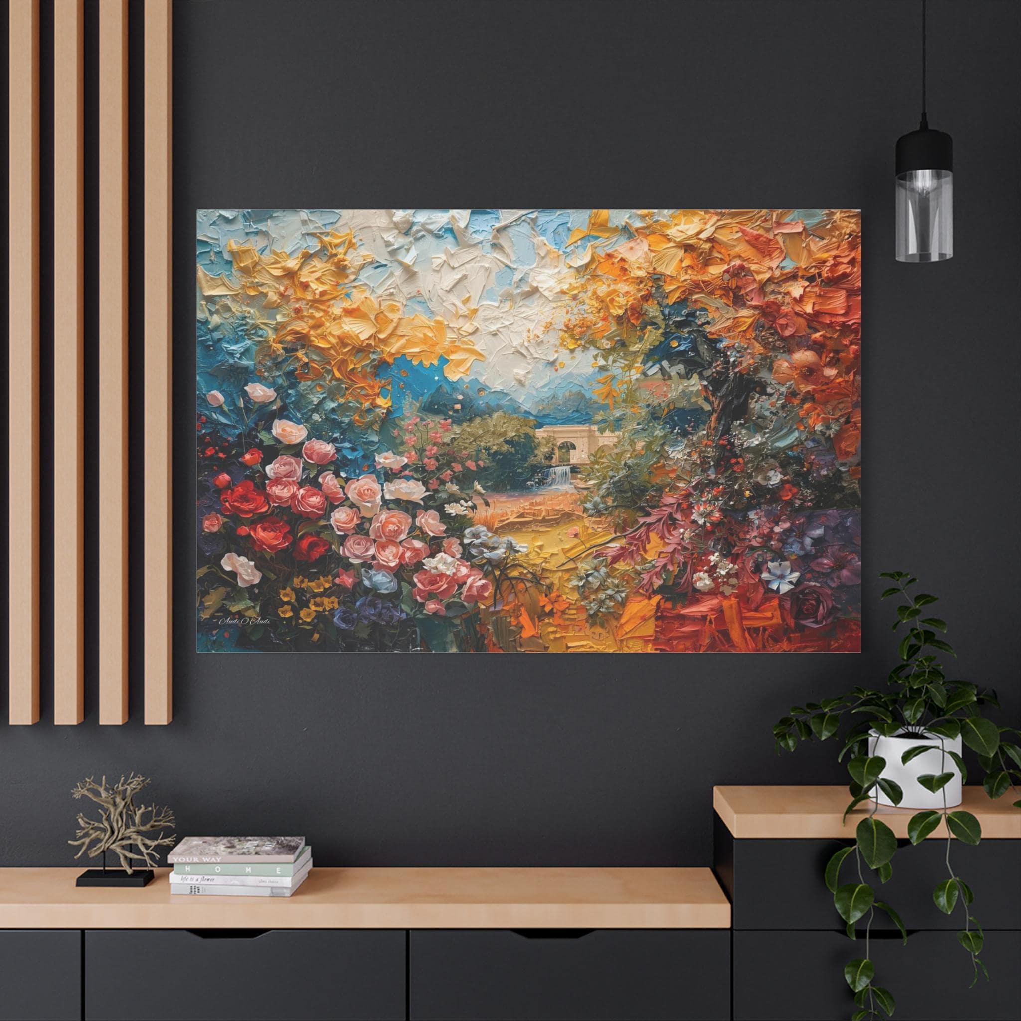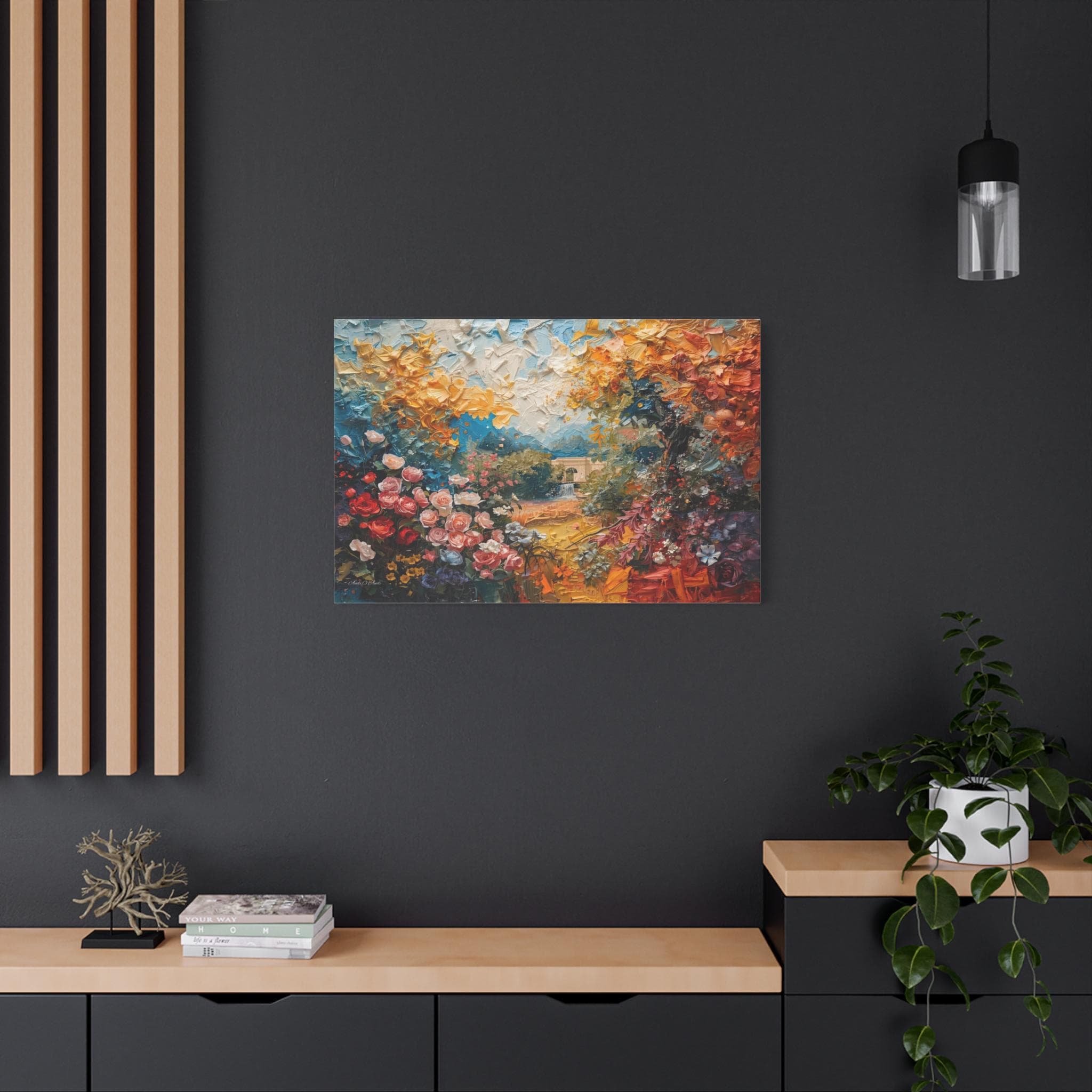 Please Note: This is a high-quality 2D canvas print. While the artwork is designed to look like thick, raised paint textures, the surface of the canvas is smooth and flat.