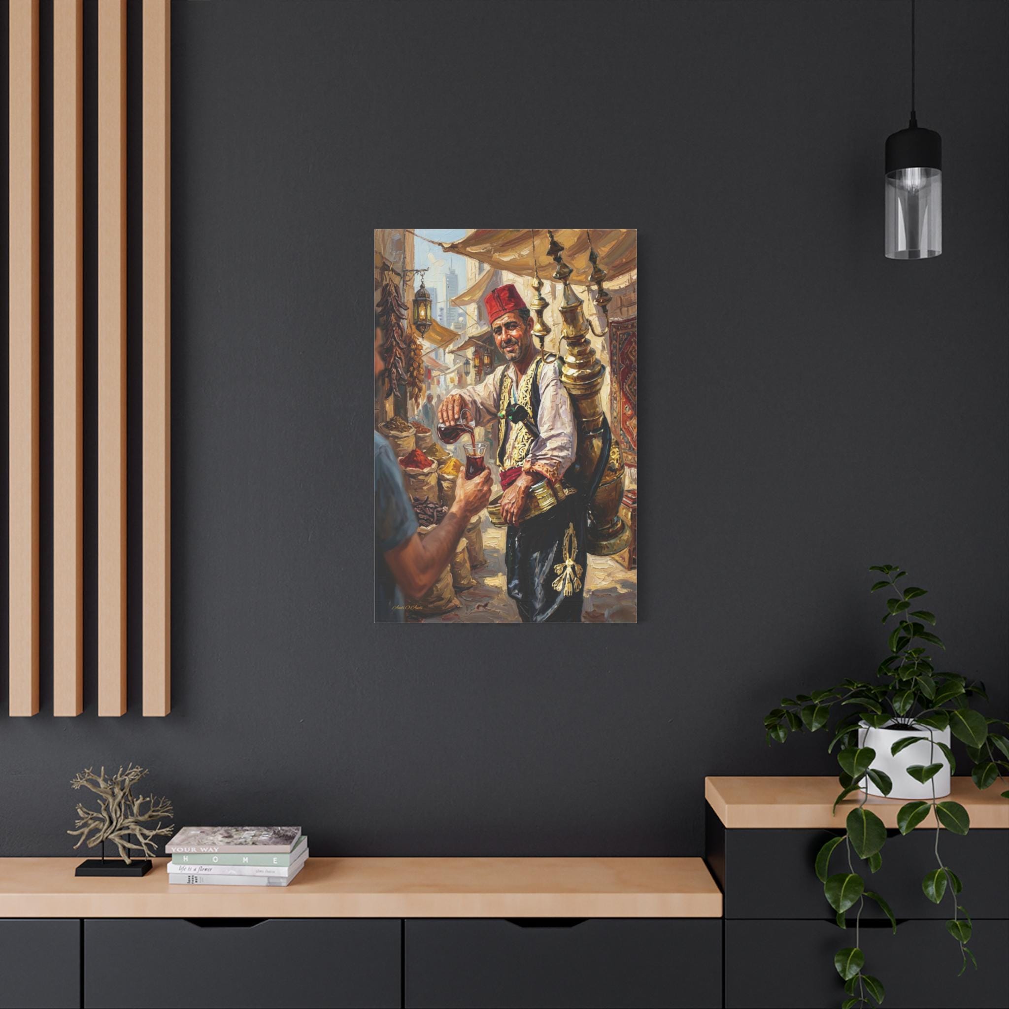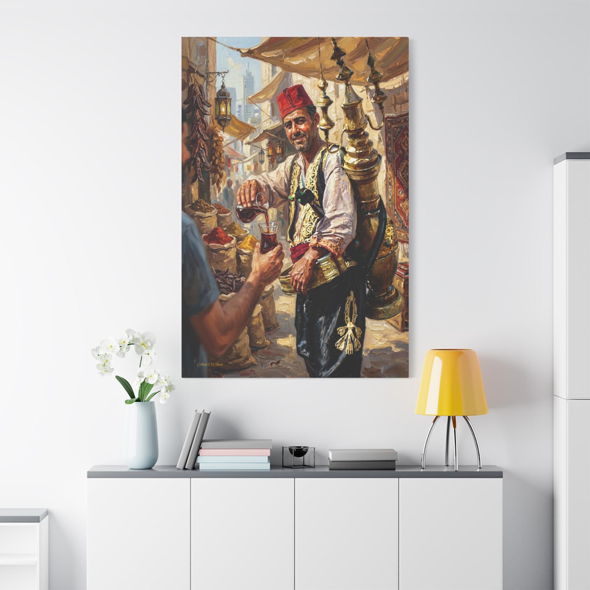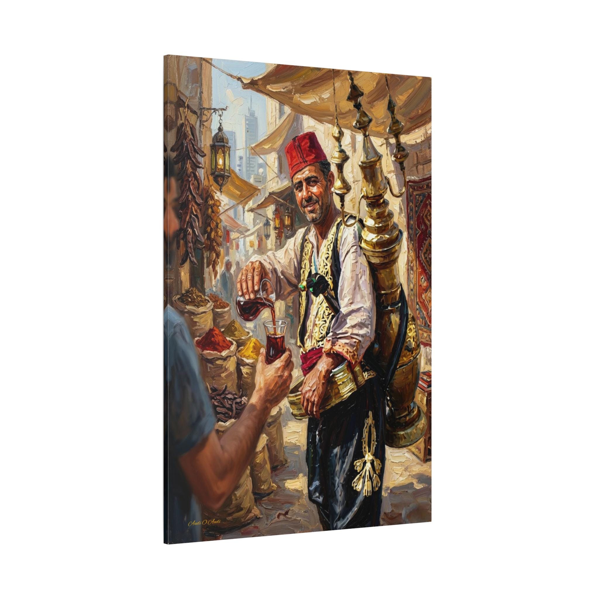 Premium Canvas: Printed on high-grade, archival canvas that preserves the warm earth tones, the golden brass reflections, and the deep red of the fez.