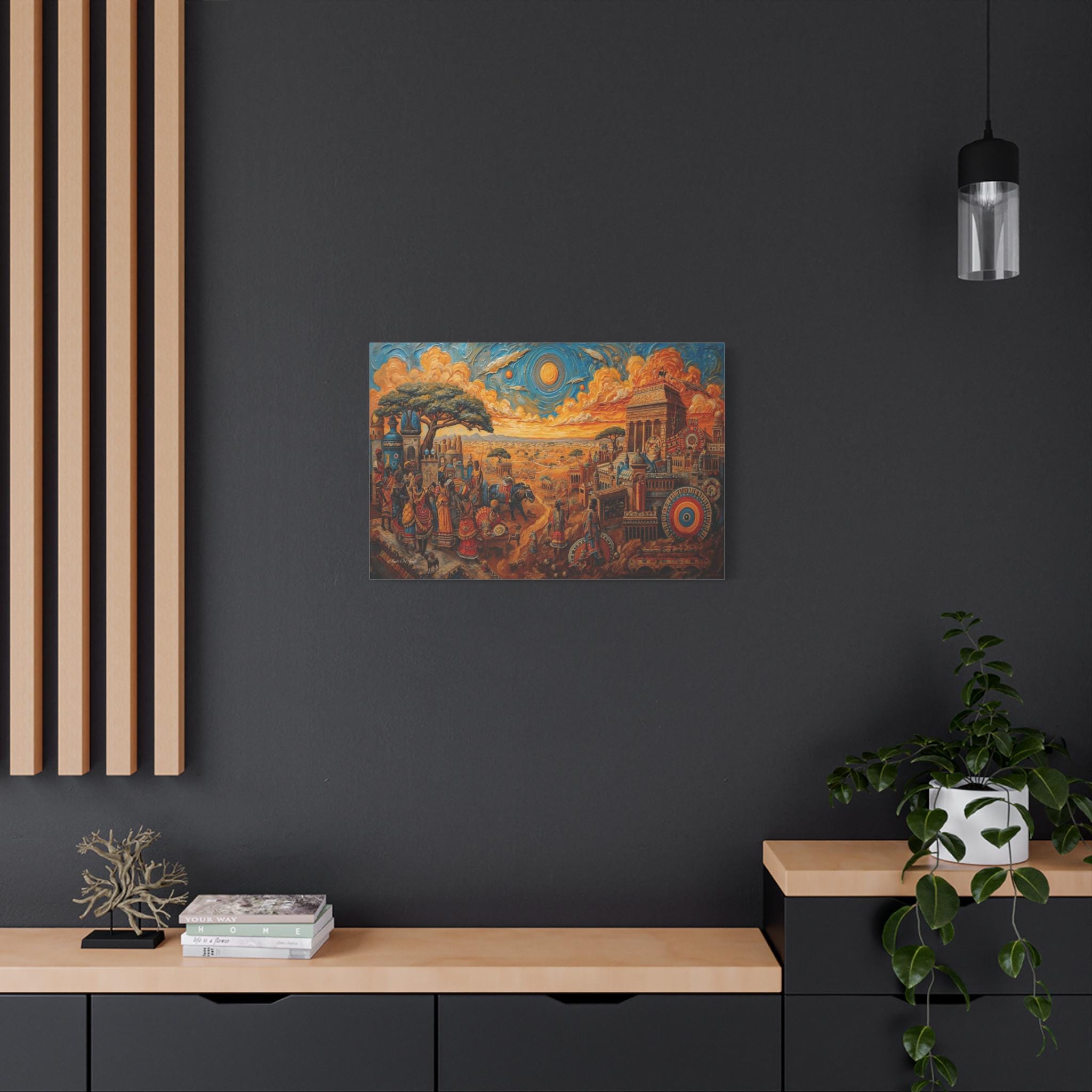 Gallery-Quality Canvas: Printed on 100% cotton fabric (400gsm) which provides a substantial, museum-grade feel and ensures the vibrant sunset oranges and royal blue accents look rich and distinct.