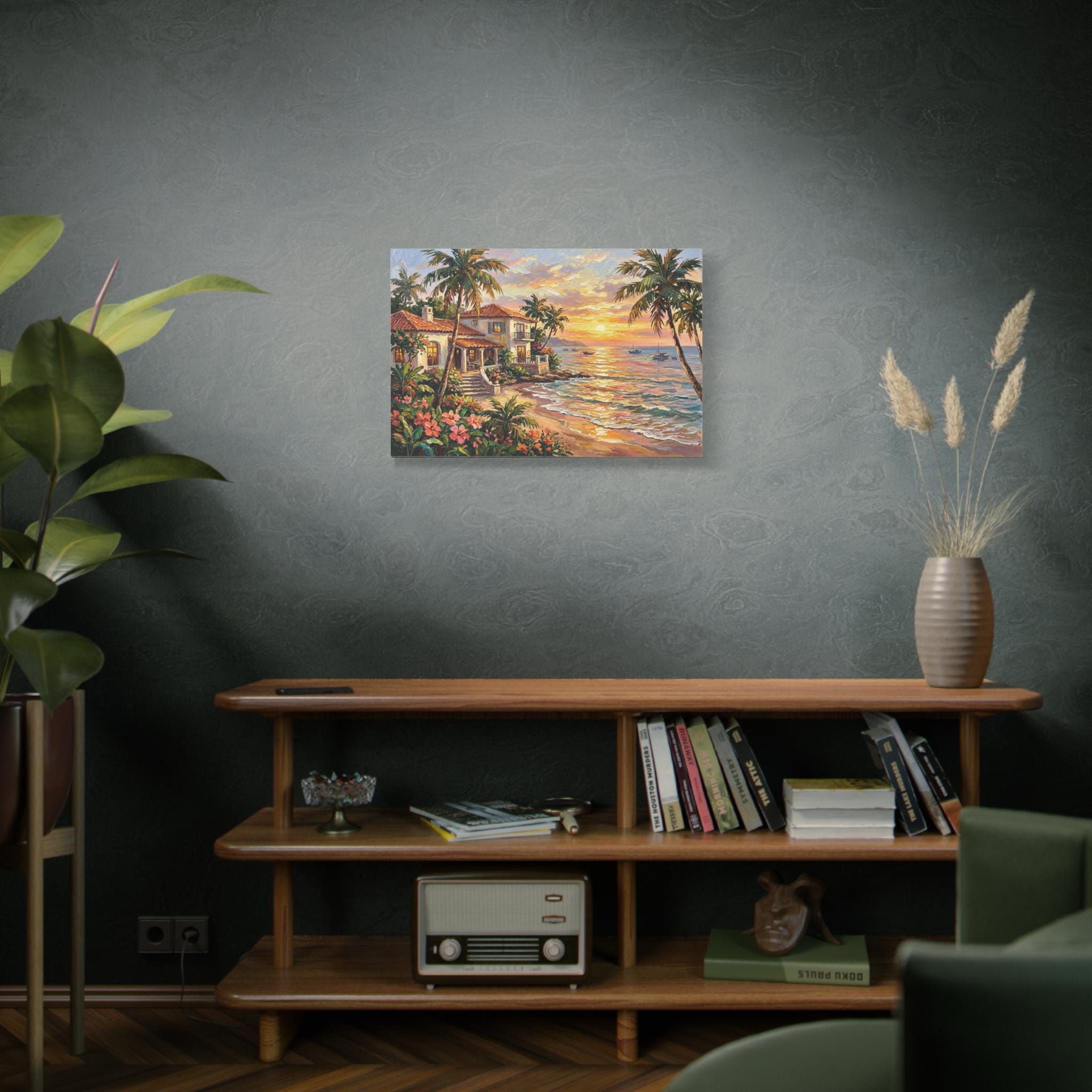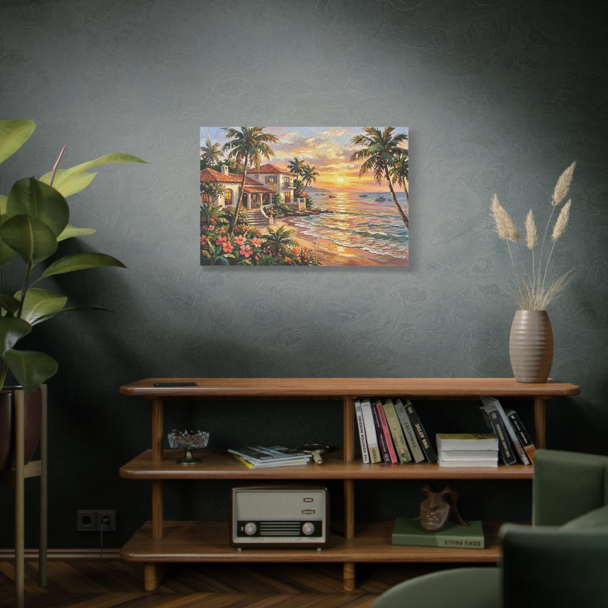 Gallery-Quality Canvas: Printed on 100% cotton fabric (400gsm) which provides a substantial, museum-grade feel and ensures the vibrant sunset golds, lush tropical greens, and ocean blues look brilliantly saturated.